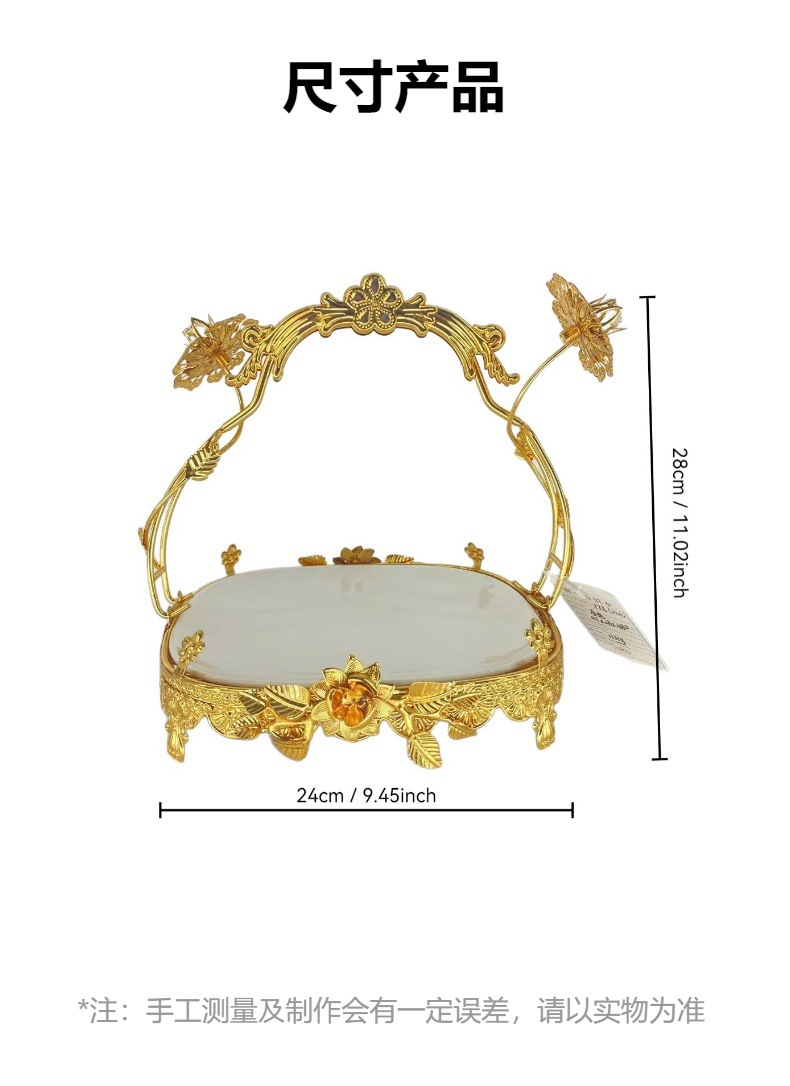宫廷风金色雕花手提托盘餐厅宴会精致之选下午茶水果甜品摆盘装饰 投诉