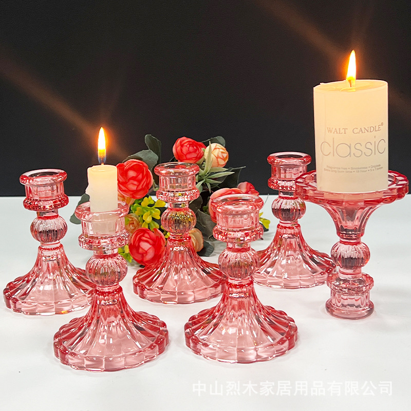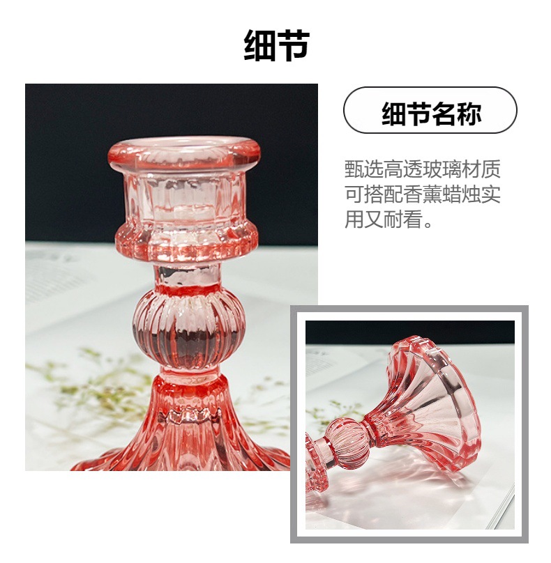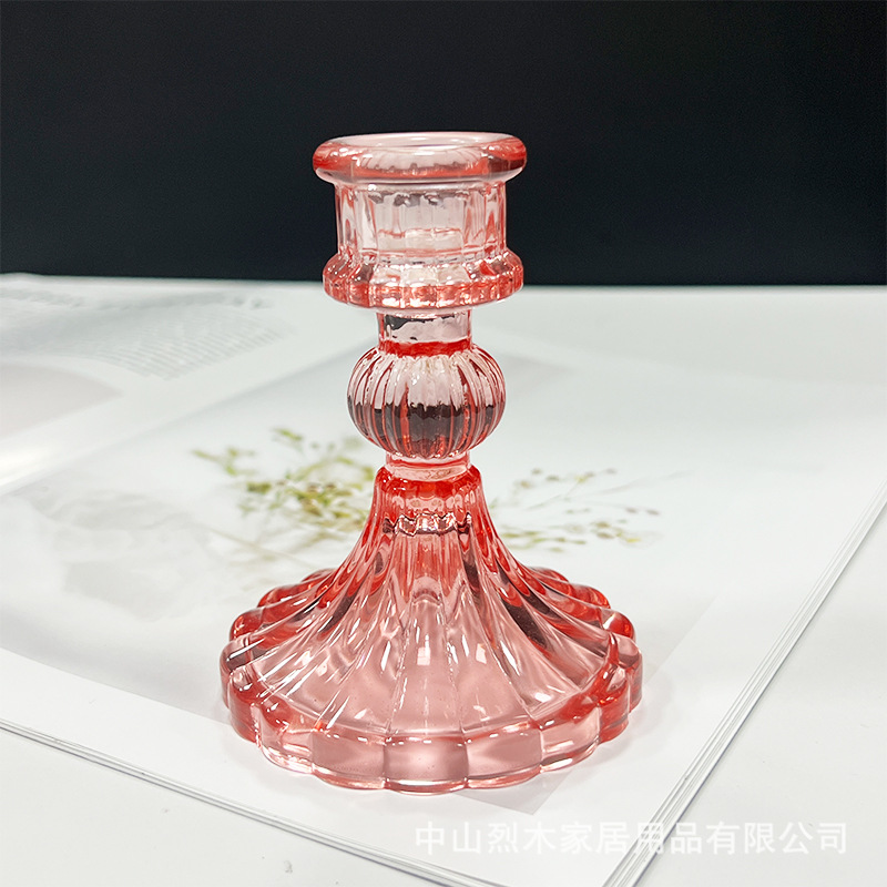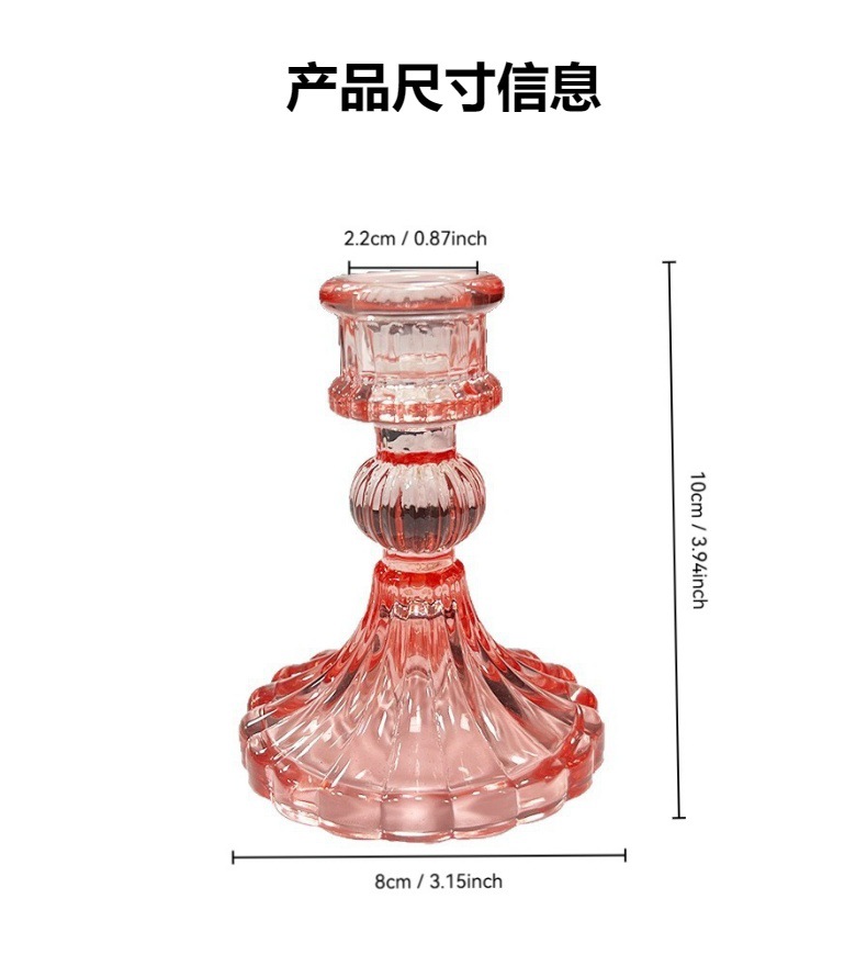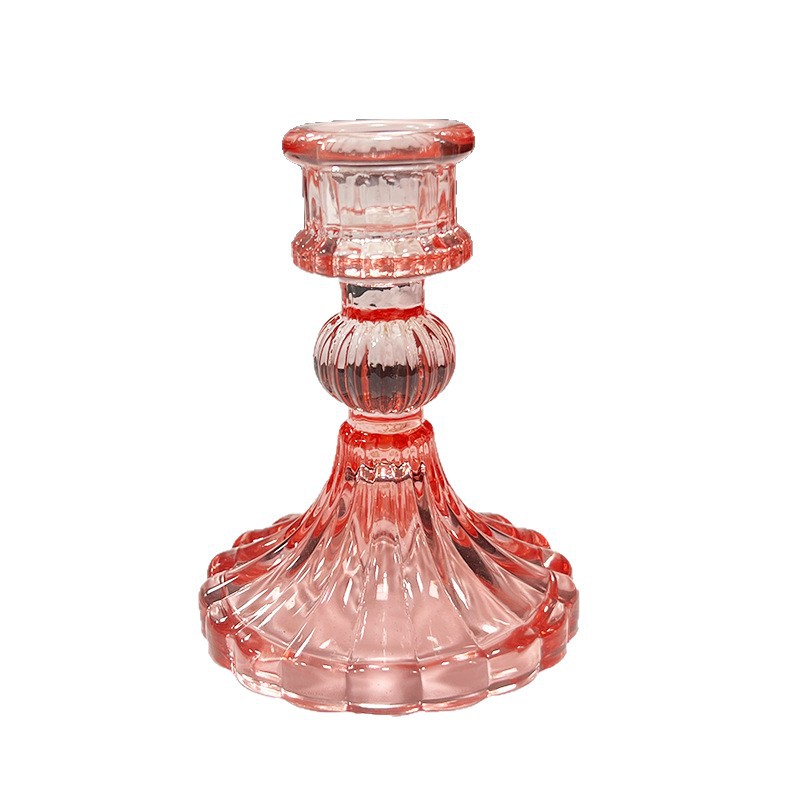粉色条纹玻璃烛台摆件