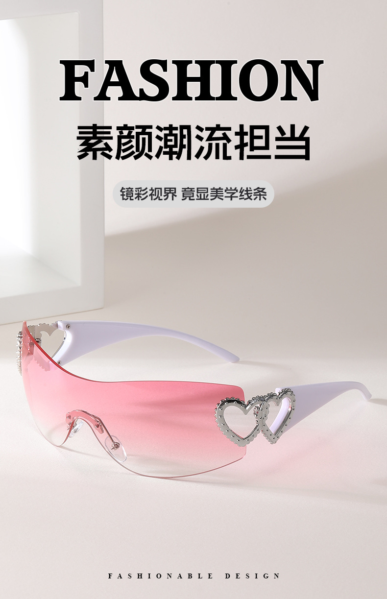爆款欧美爱心无框Y2K网红太阳镜男女 凹造型街拍个性太阳眼镜墨镜