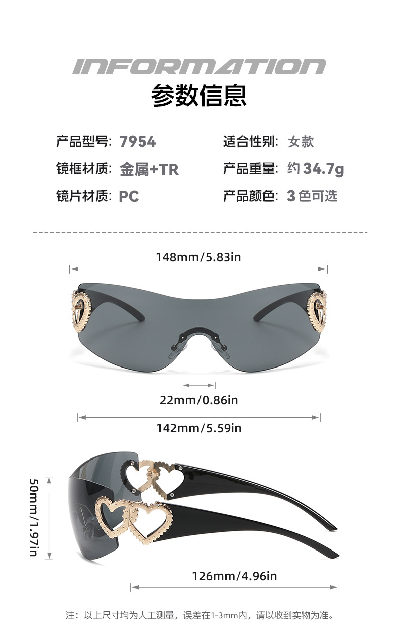 爆款欧美爱心无框Y2K网红太阳镜男女 凹造型街拍个性太阳眼镜墨镜 投诉