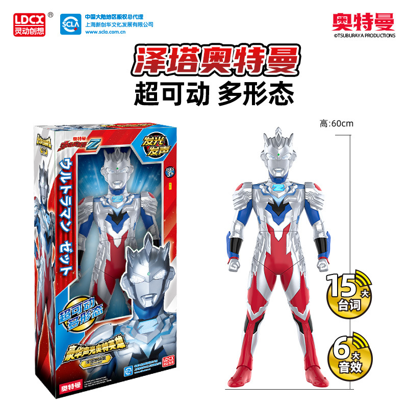 正版灵动豪华奥特曼英雄大号发声发光奥特曼男孩玩偶玩具生日礼物