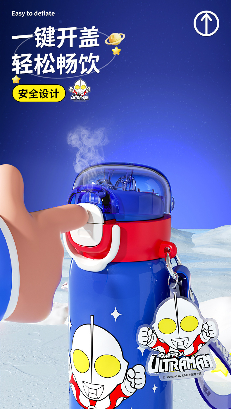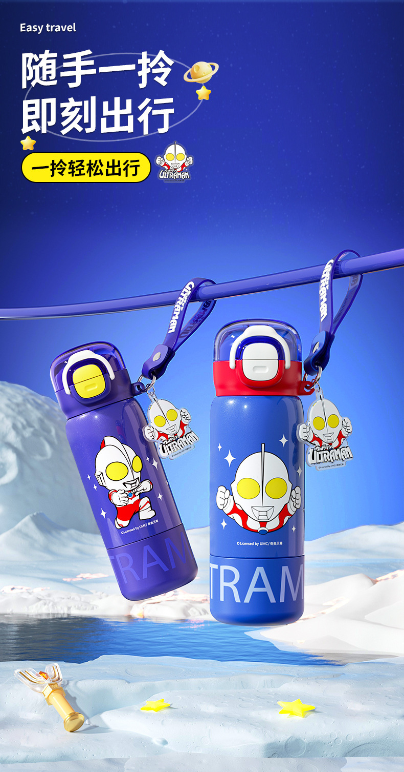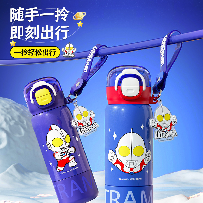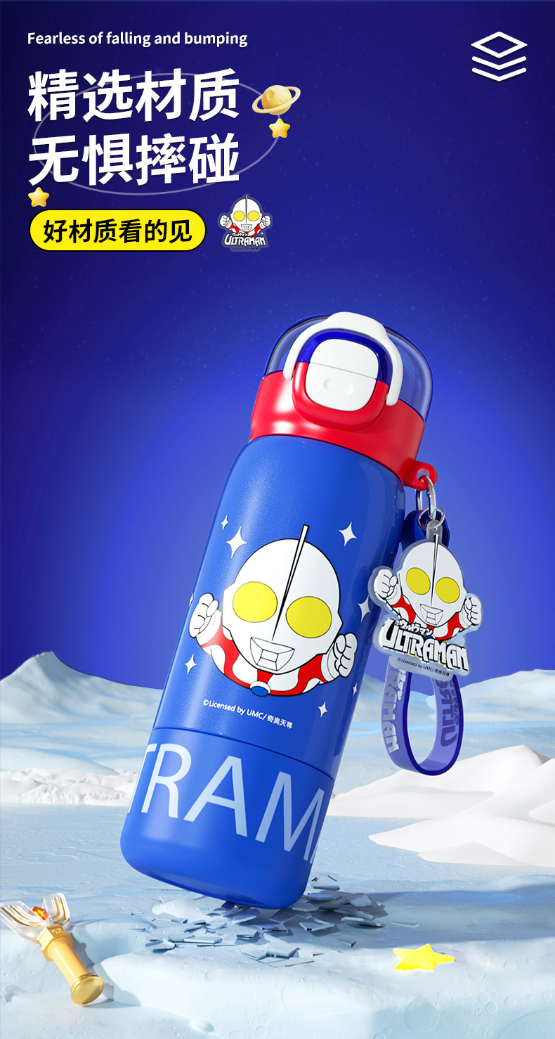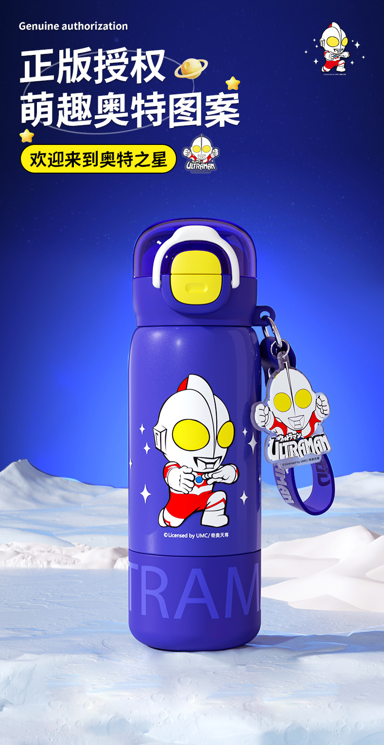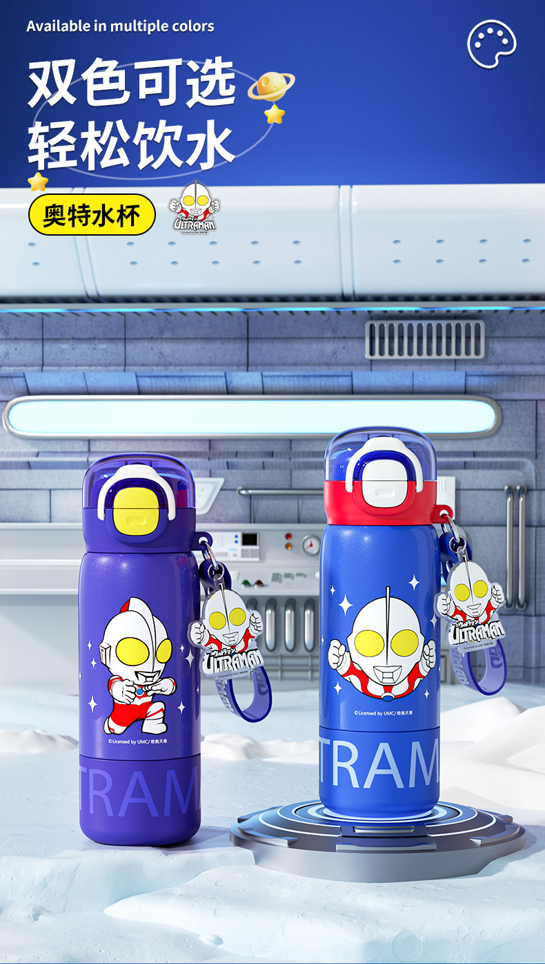 奥特曼新款水杯男孩乐趣保温杯公仔直身双饮水杯学生吸管杯大容量 投诉