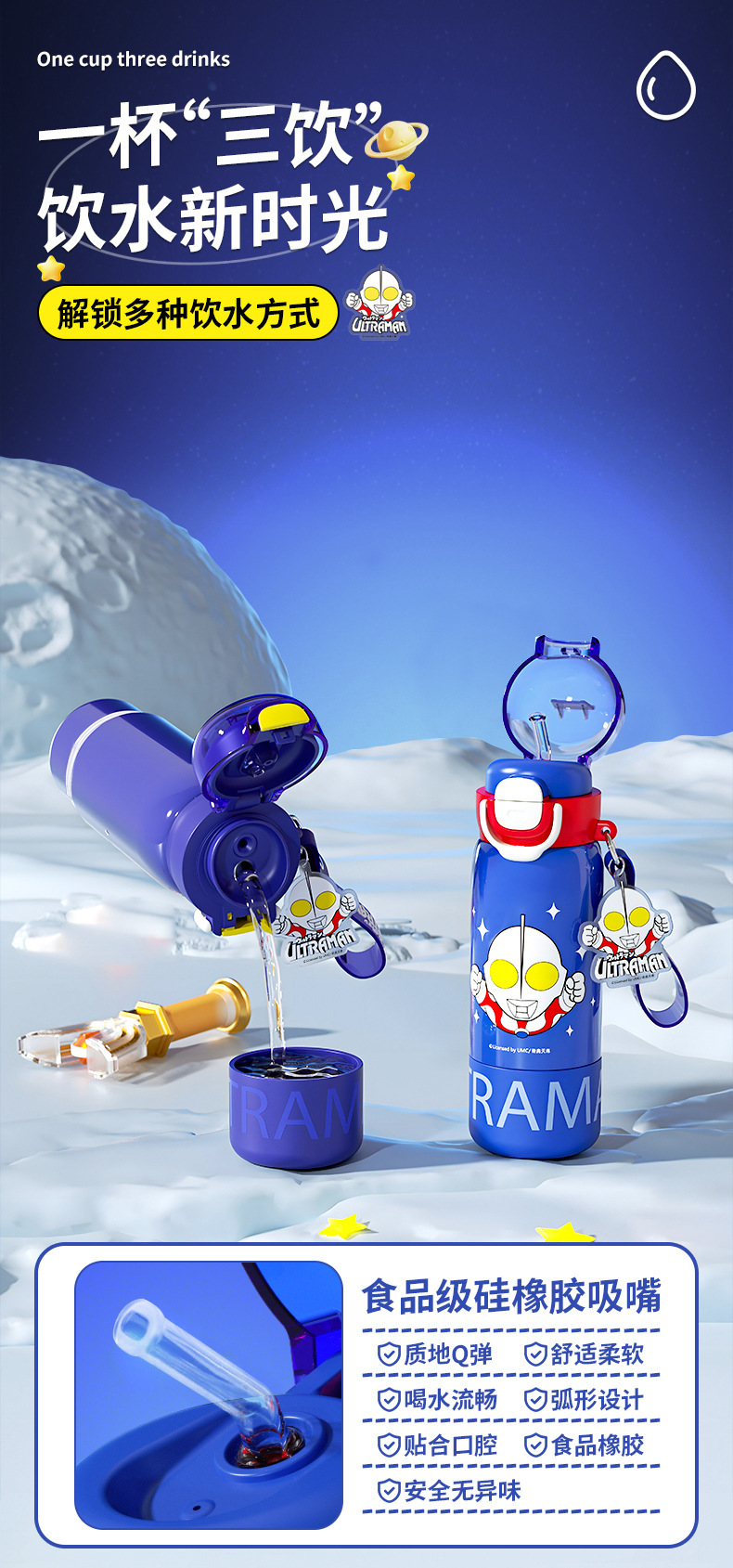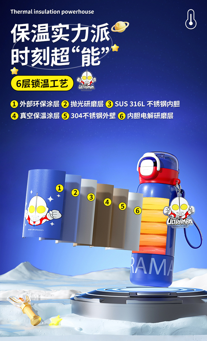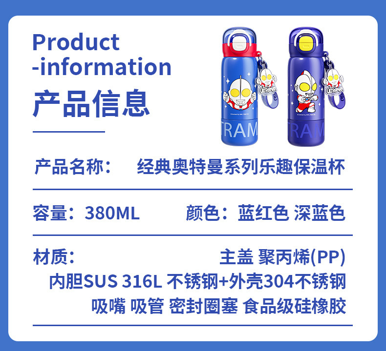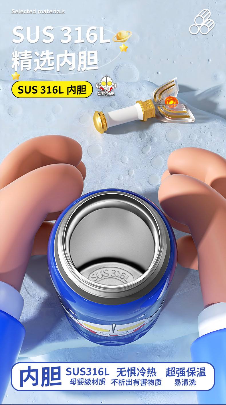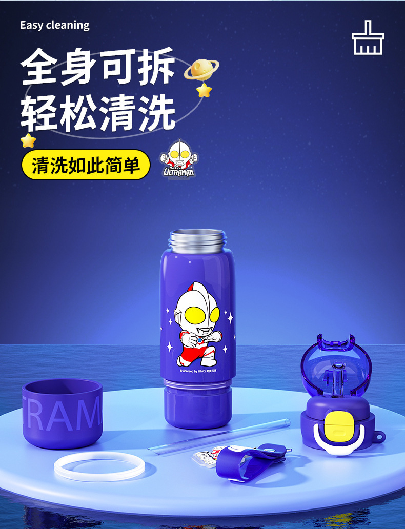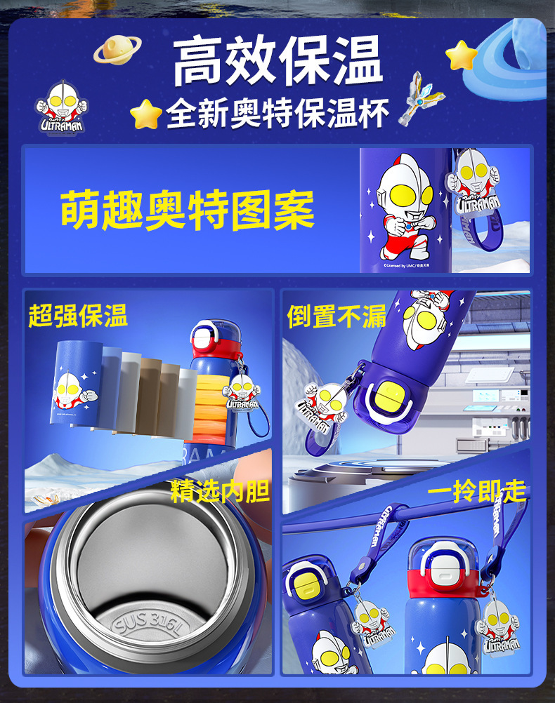 奥特曼新款水杯男孩乐趣保温杯公仔直身双饮水杯学生吸管杯大容量 投诉