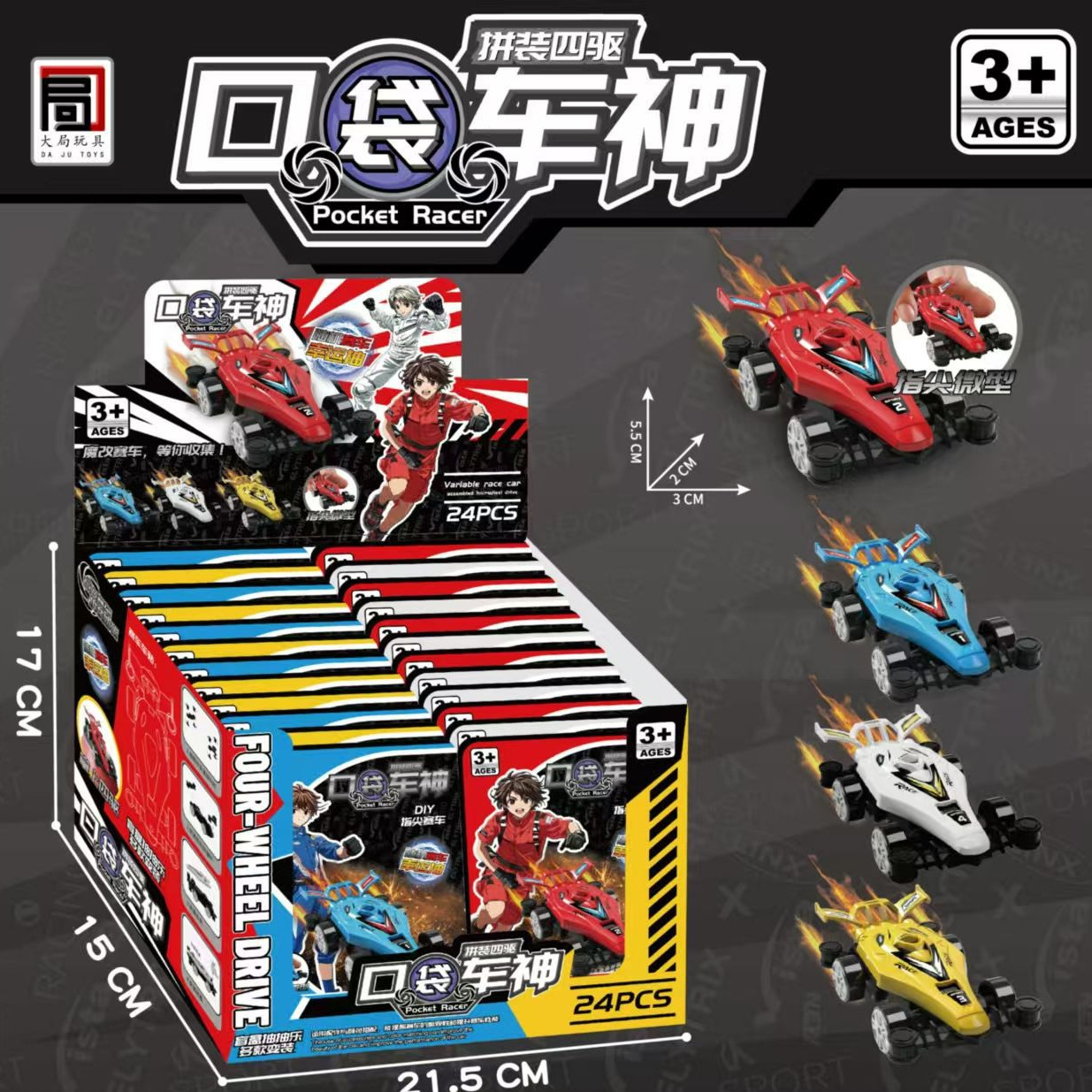 口袋车神拼装四驱车积木微型DIY益智玩具赛车男孩小礼物拼接模型