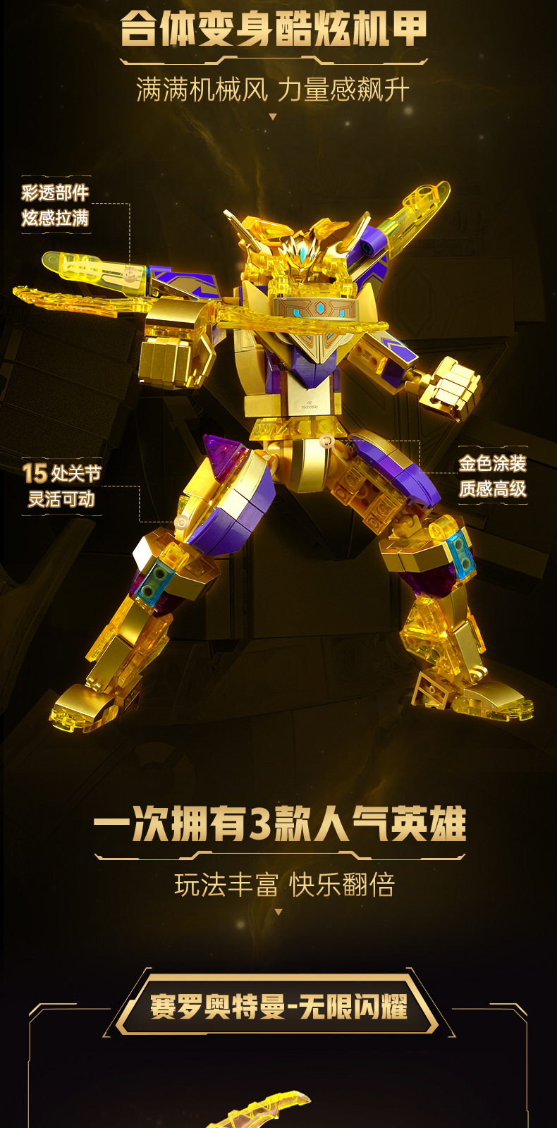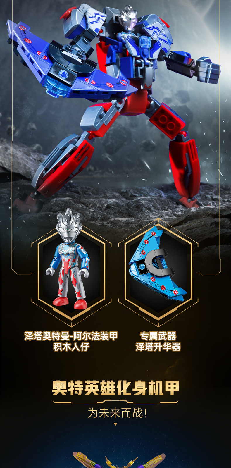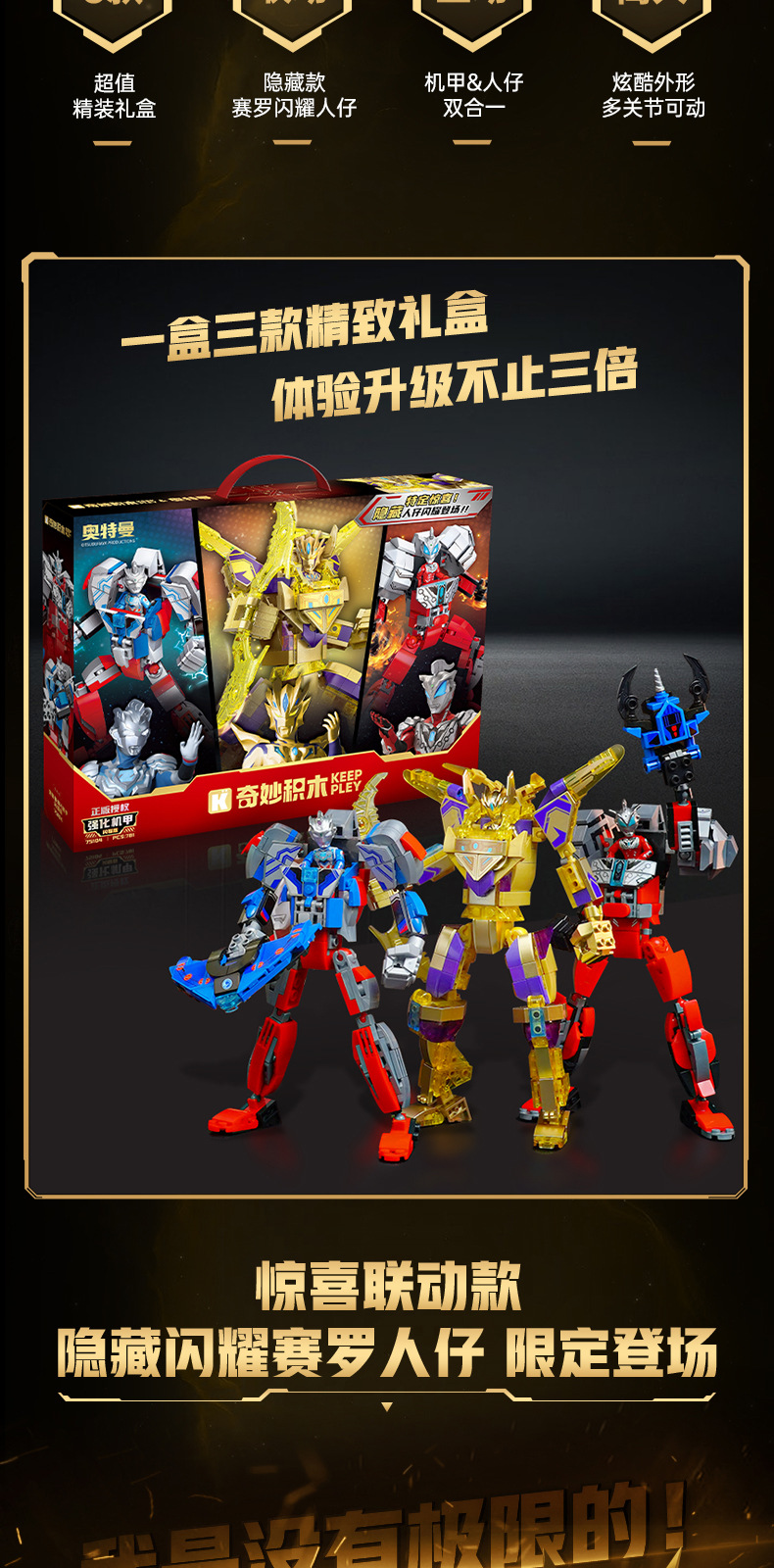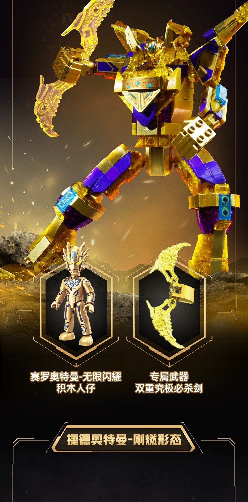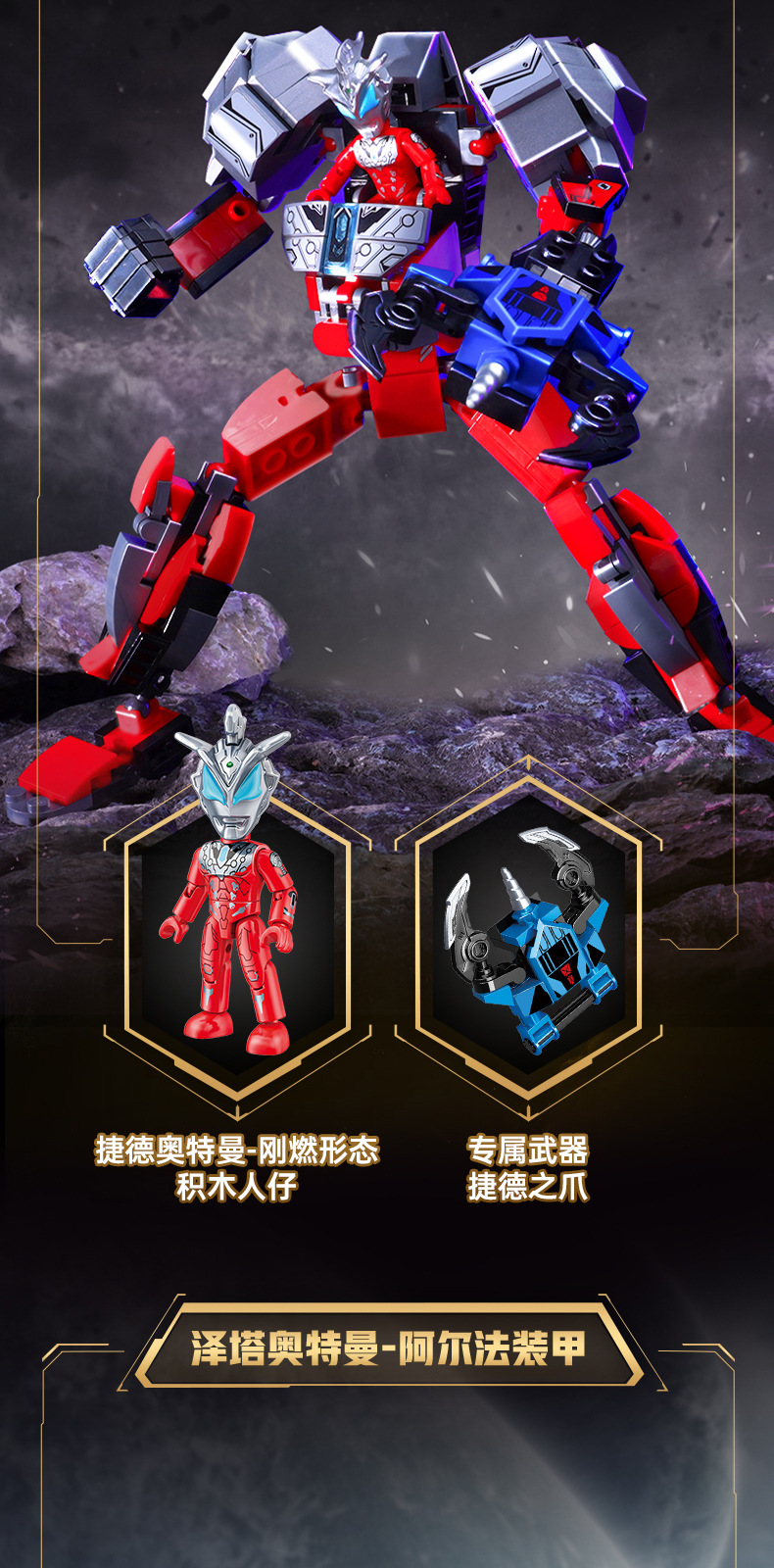 奇妙积木赛罗奥特曼强化机甲闪耀捷德泽塔拼装玩具男孩礼物75104