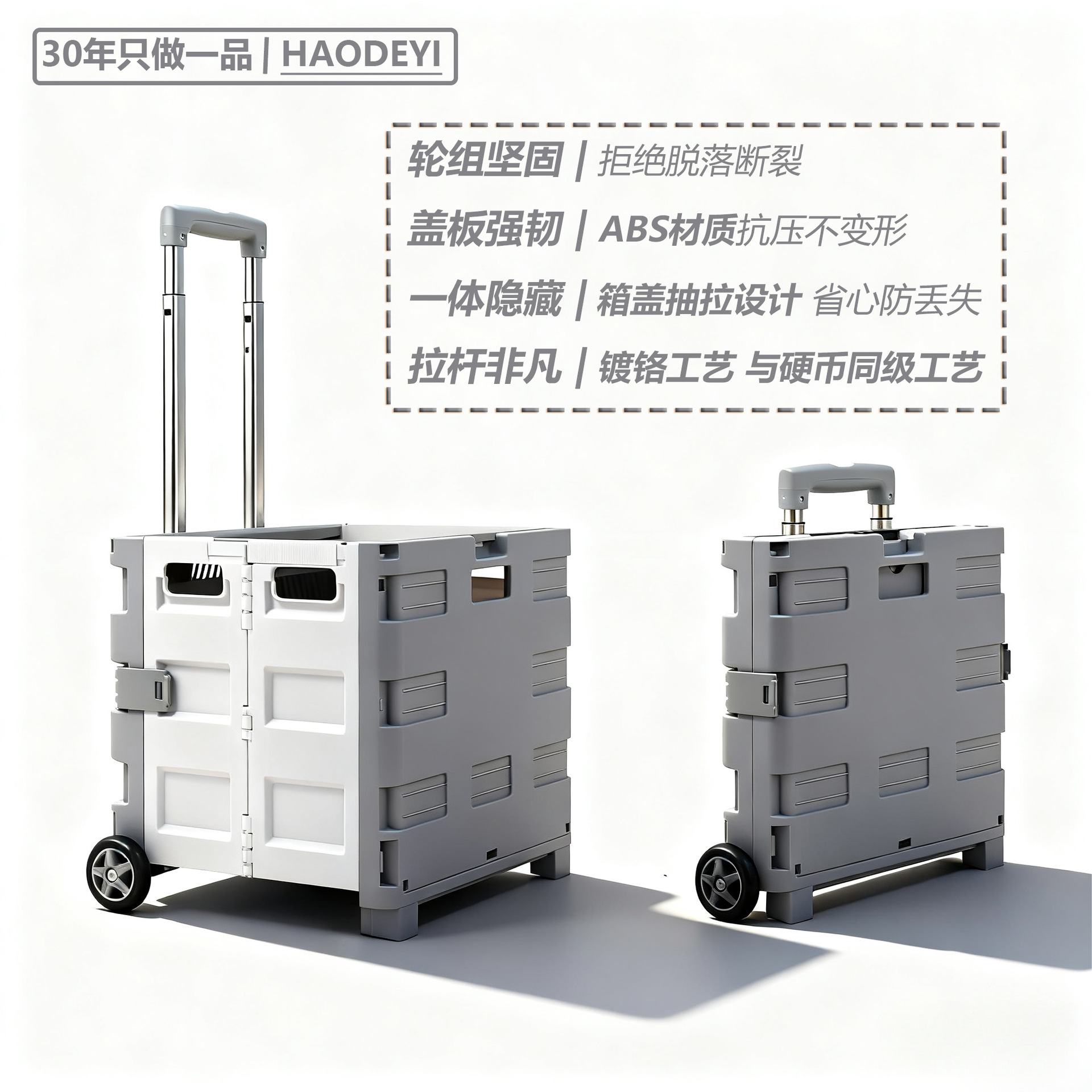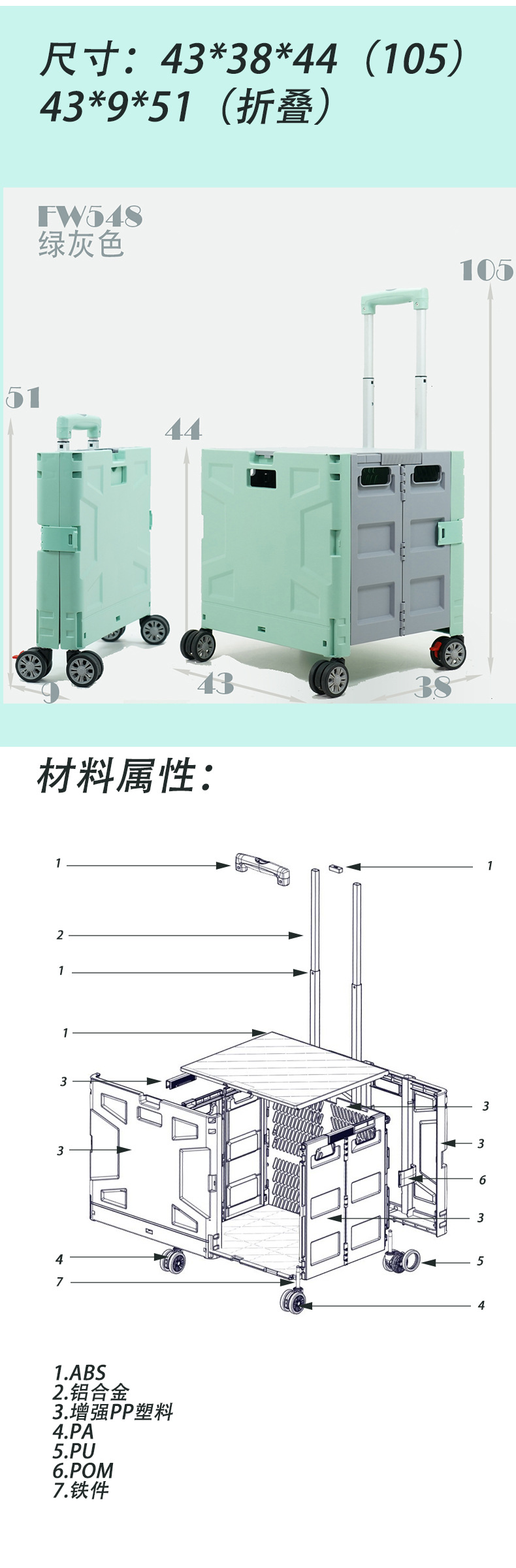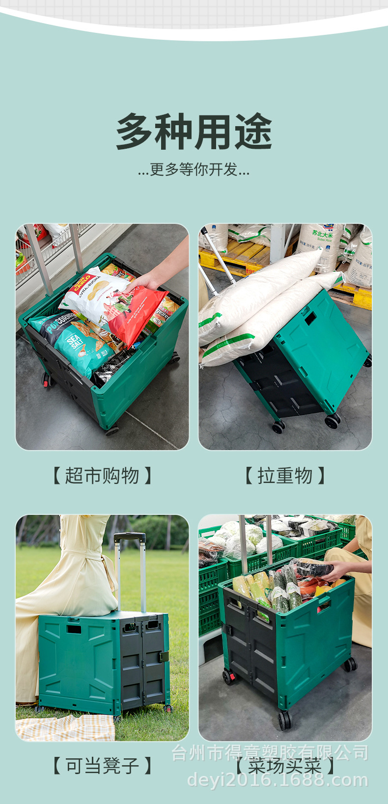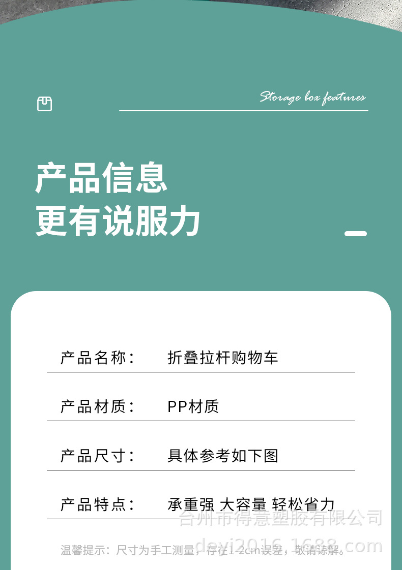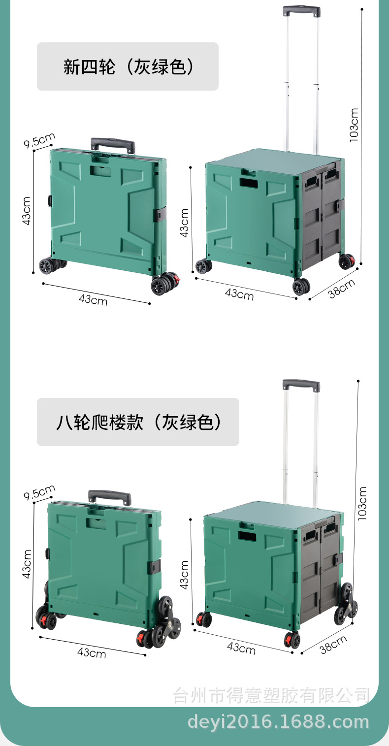 材质: PP 可否折叠: 可以 产品类别: 拉杆,四轮推车 功能: 可折叠 最大承重: 50 品牌: HAODEYI 货号: FW530 产地: 台州 包装数量: 1 是否跨境出口专供货源: 否 风格: 中国 是否有专利: 否 加印LOGO: 可以 加工定制: 加工商,自主生产厂商,可以 容量: 中号30L 毛重: 3 重量: 0.171 kg/只