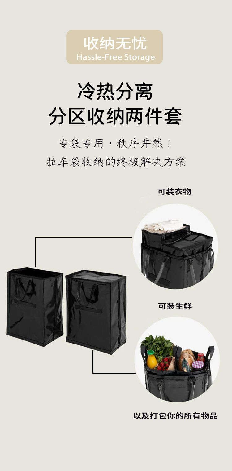 新款浩肯包内里分隔套装购物分区收纳保温带轮手提多功能拉车袋 投诉