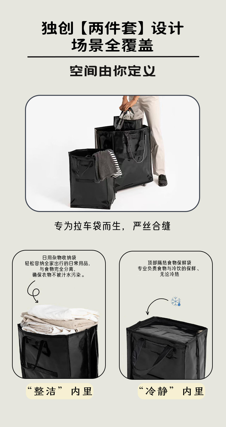 新款浩肯包内里分隔套装购物分区收纳保温带轮手提多功能拉车袋