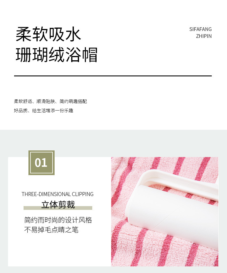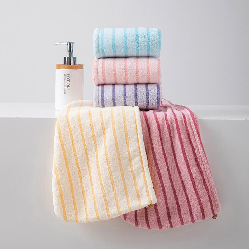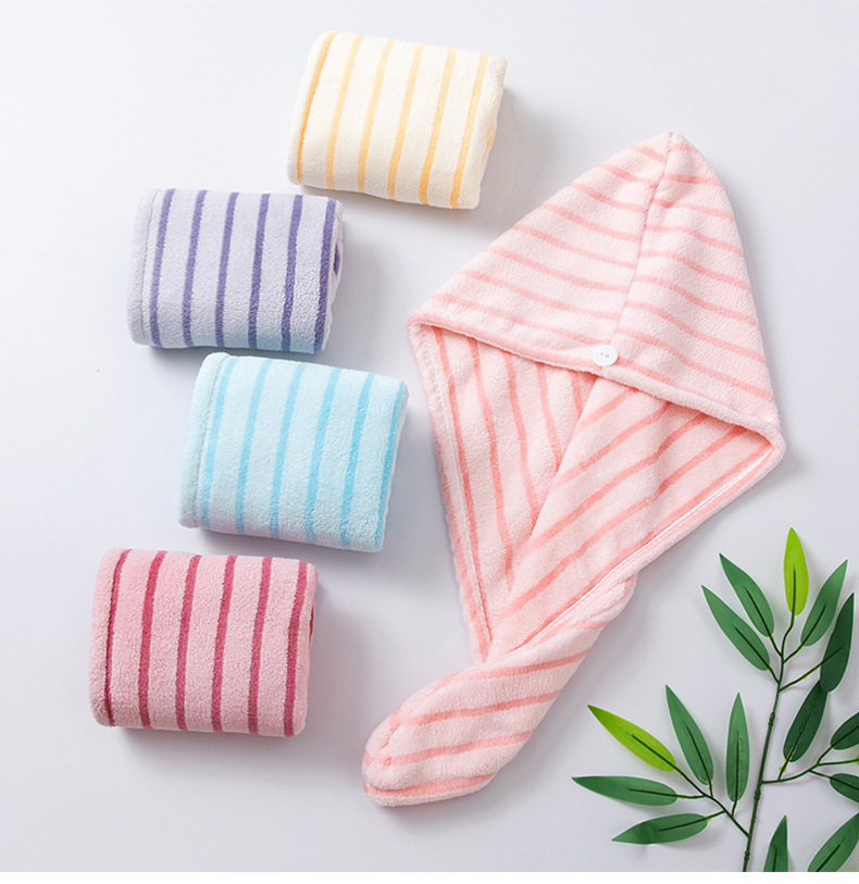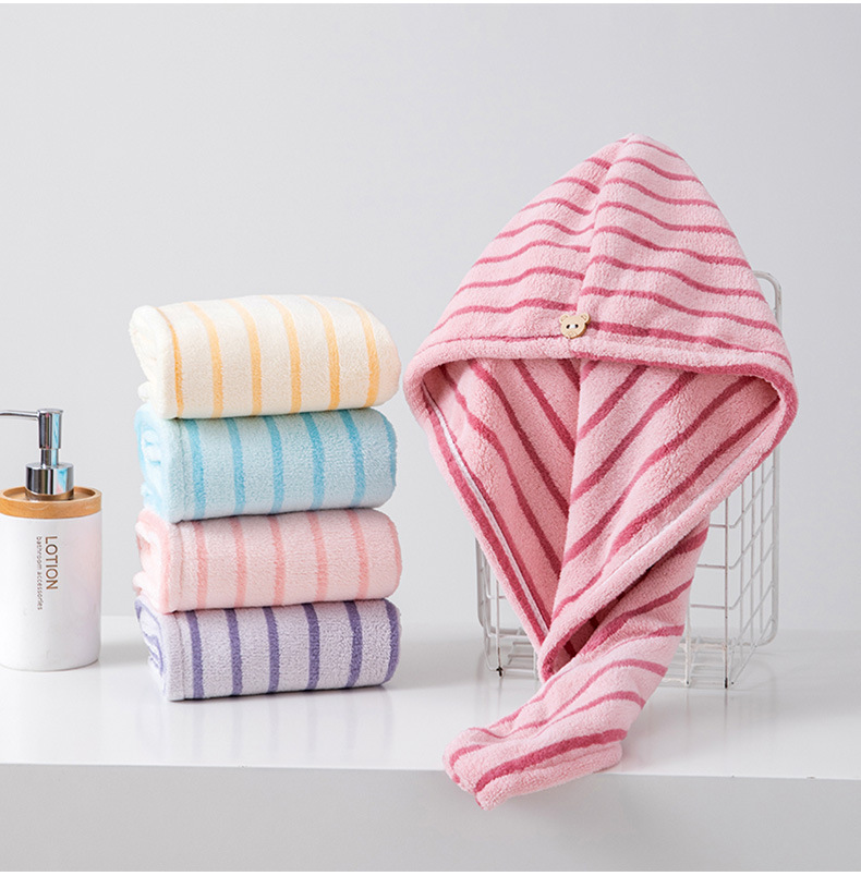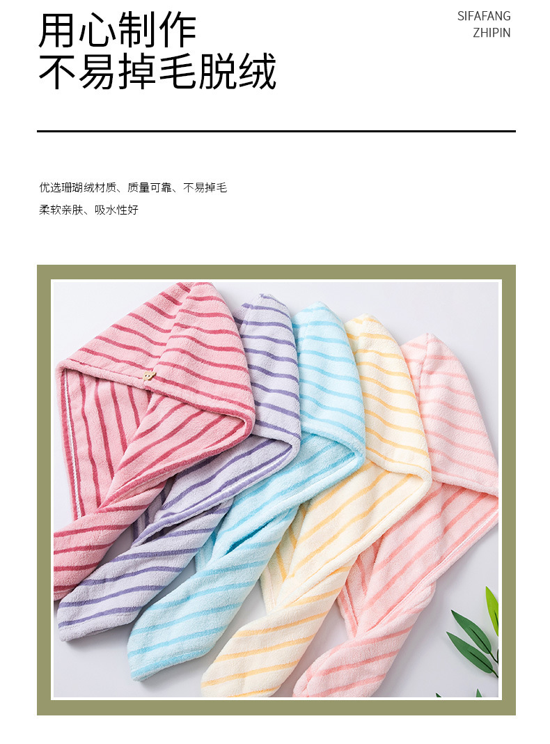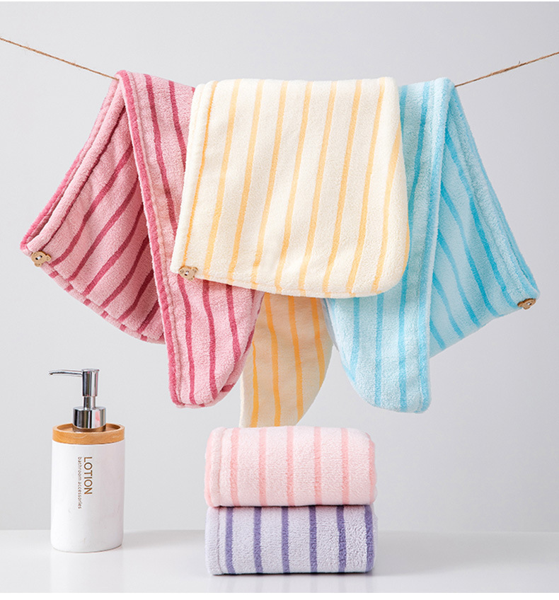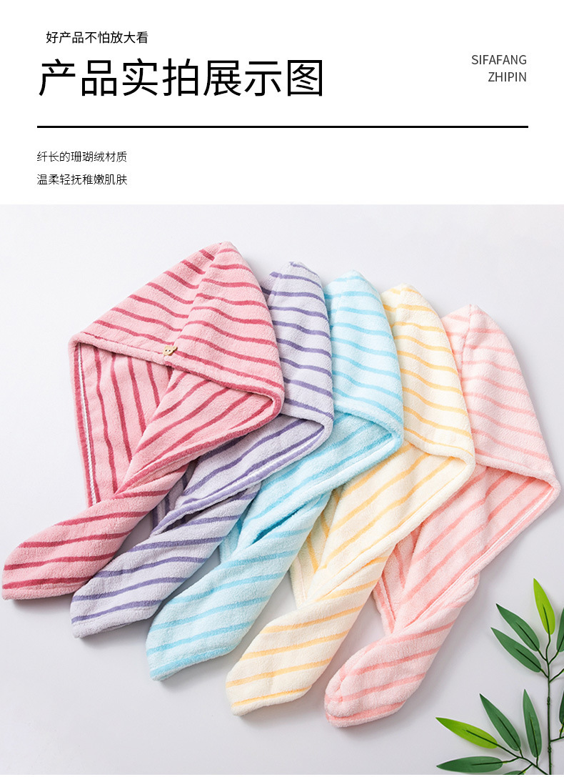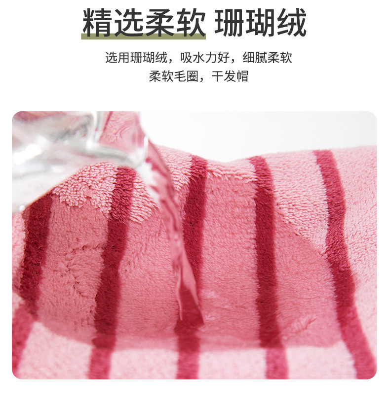 材质: 珊瑚绒 克重: 50-79g 品牌: 其他 制作工艺: 绣花 纱线规格: 150D 货号: 条纹干发帽2026 加工定制: 是 颜色: 蓝色,黄色 规格(长*宽cm): 25*65CM