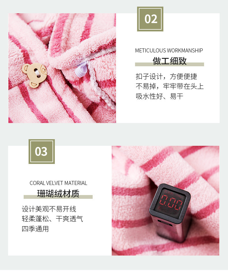跨境专供卡通扣子干发帽女不掉毛吸水速干擦头发浴帽加厚包头发巾 English | 投诉