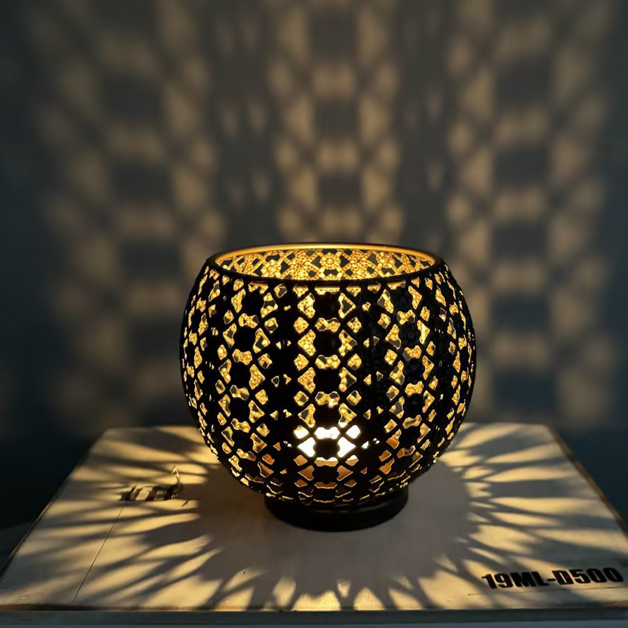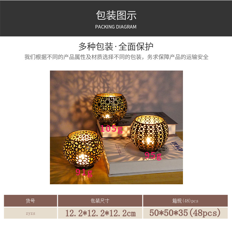 跨境欧式球型烛台镂空摩洛哥灯光节日复古装饰做旧家居工艺品摆件