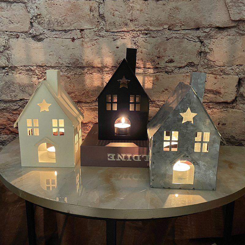 北欧镂空小房子烛台摆件工艺品创意铁艺小烛台桌面蜡烛台工厂批发