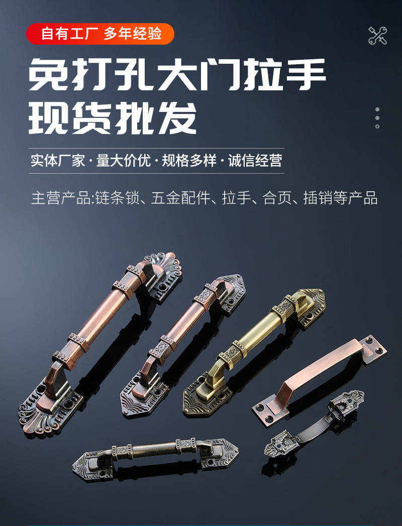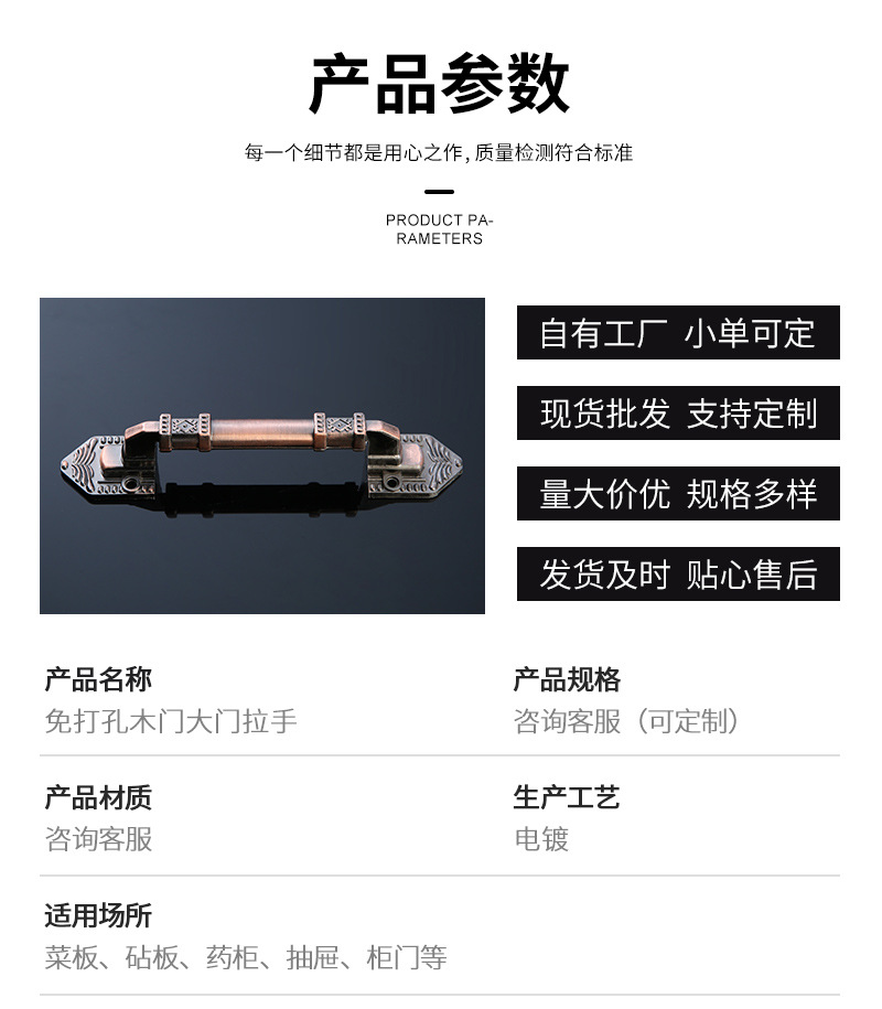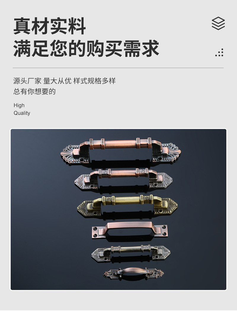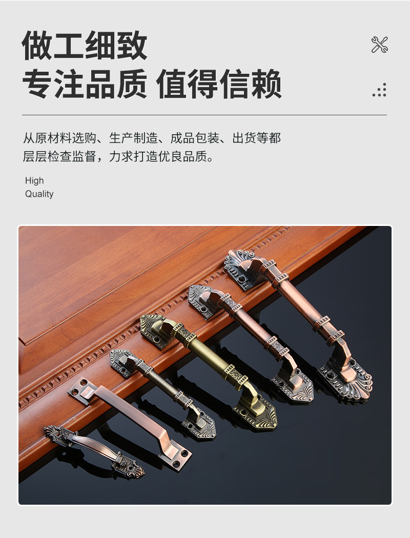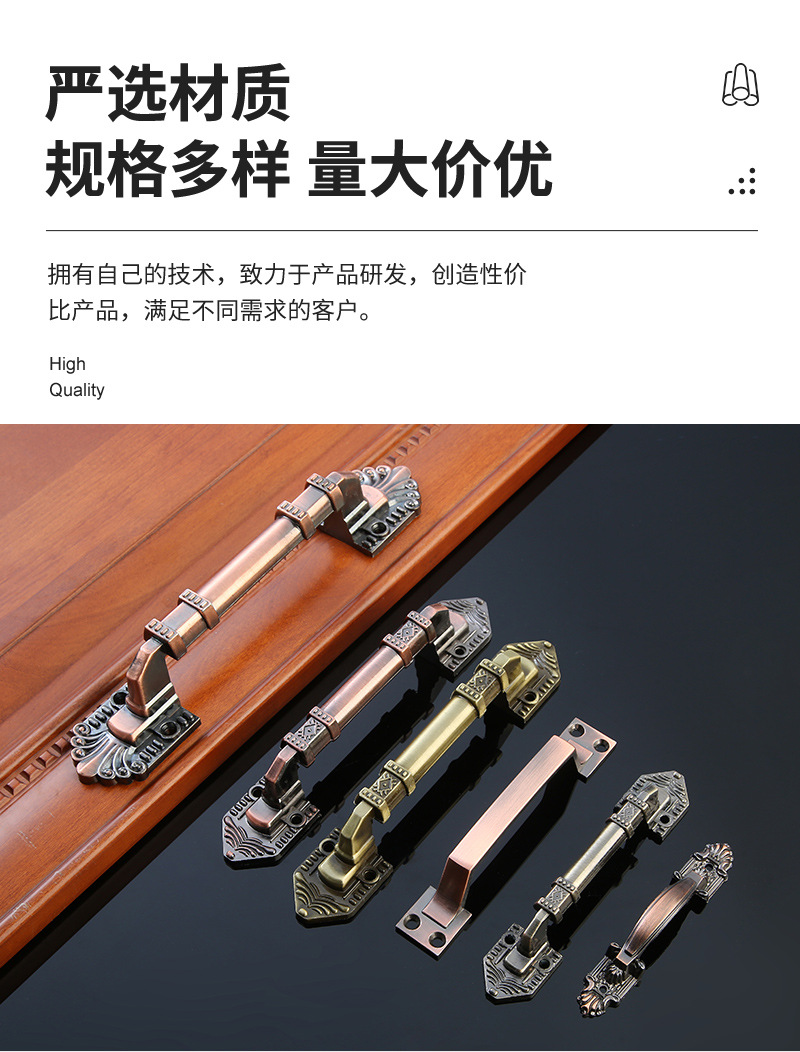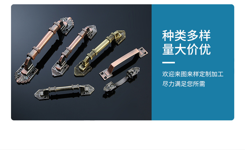 仿古铜欧式免打孔木门拉手橱柜衣柜五金门把手多款式花纹明装拉手 投诉