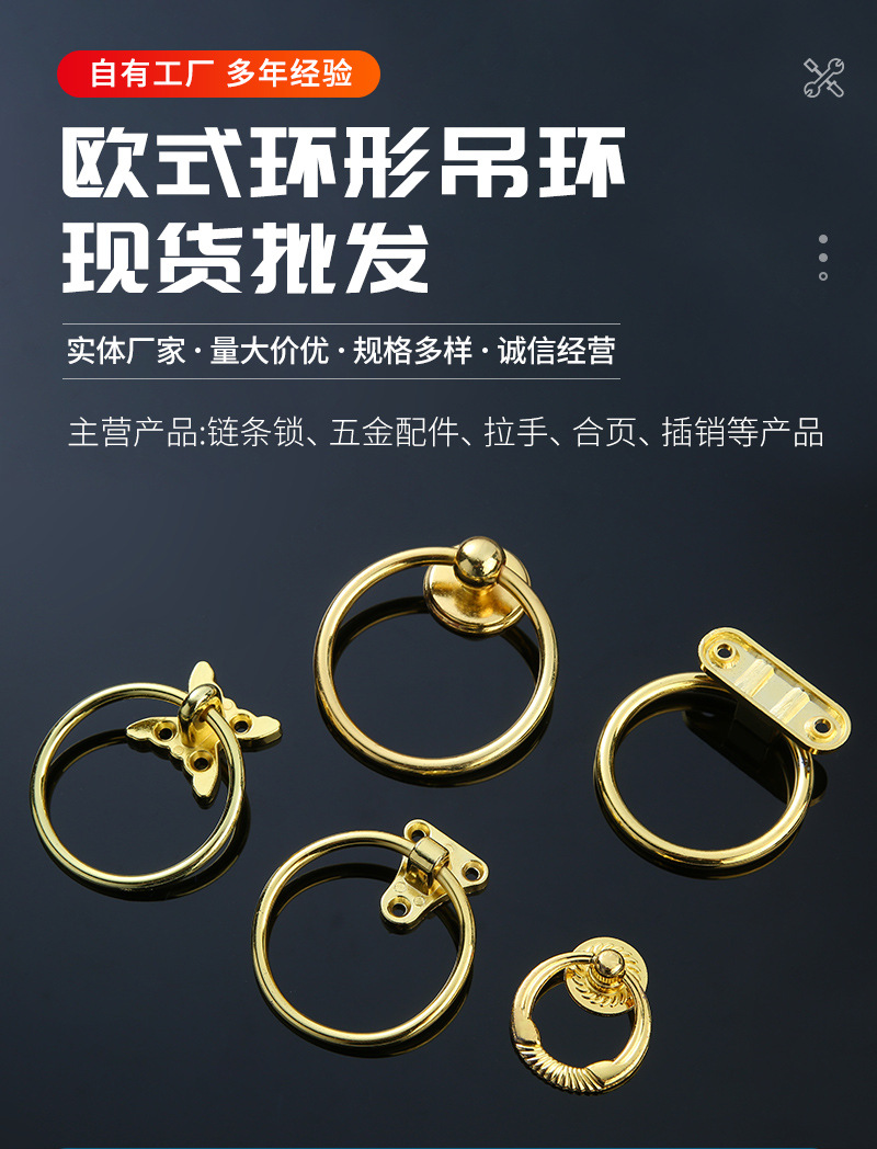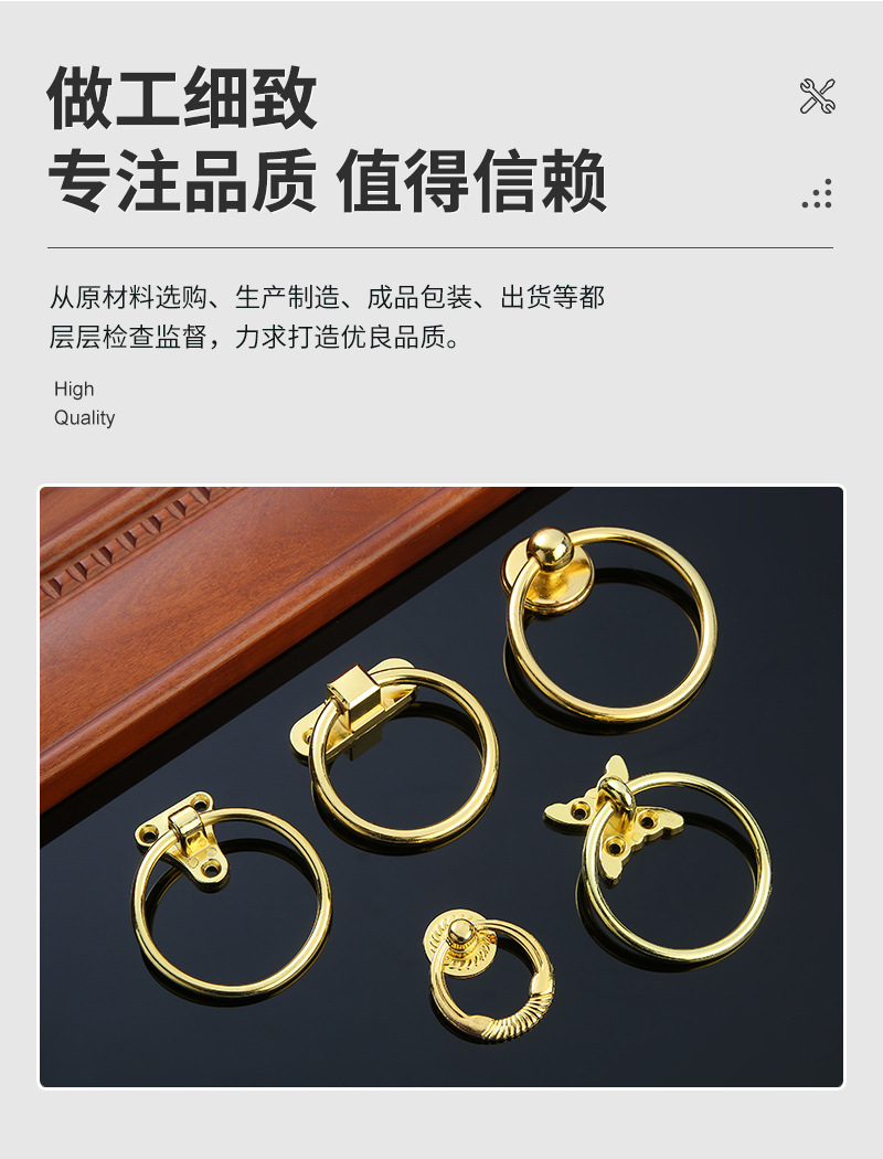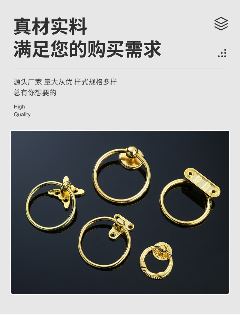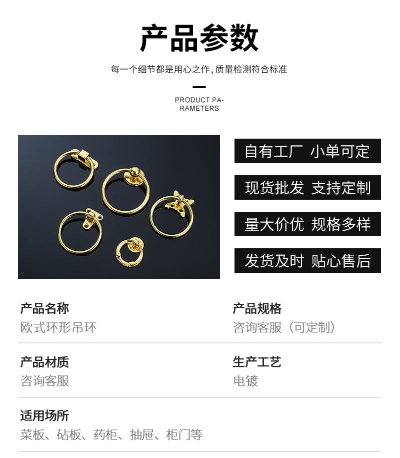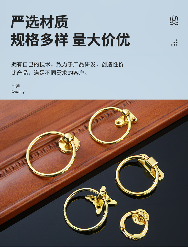 简约高奢欧式环形吊环抽屉药柜圆环拉手实心金色首饰盒盖子拉环 投诉