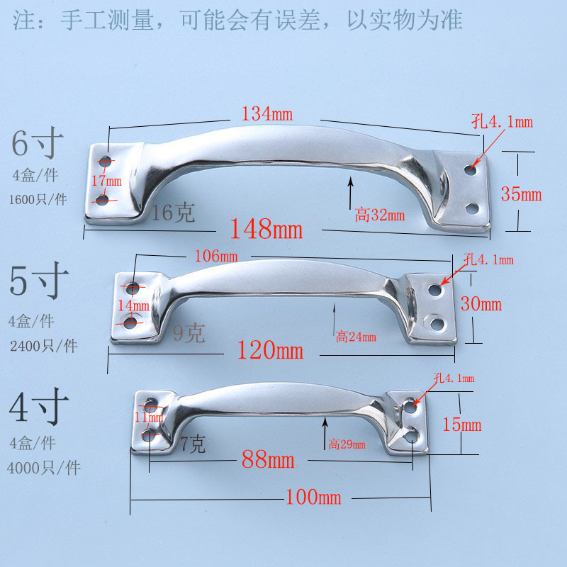 材质: 不锈钢 工艺: 电镀 品牌: 牛掌柜 风格: 现代简约 适用范围: 木门、柜门、抽屉、办公收纳柜等 型号: 不锈钢把手 名称: 不锈钢把手 货号: 不锈钢把手 规格: 4寸,5寸,6寸 是否跨境出口专供货源: 否 主要销售地区: 非洲,欧洲,南美,东南亚,北美,东北亚, 主要下游平台: ebay,亚马逊,wish,速卖通,独立 有可授权的自有品牌: 是 重量: 0.02 kg/个