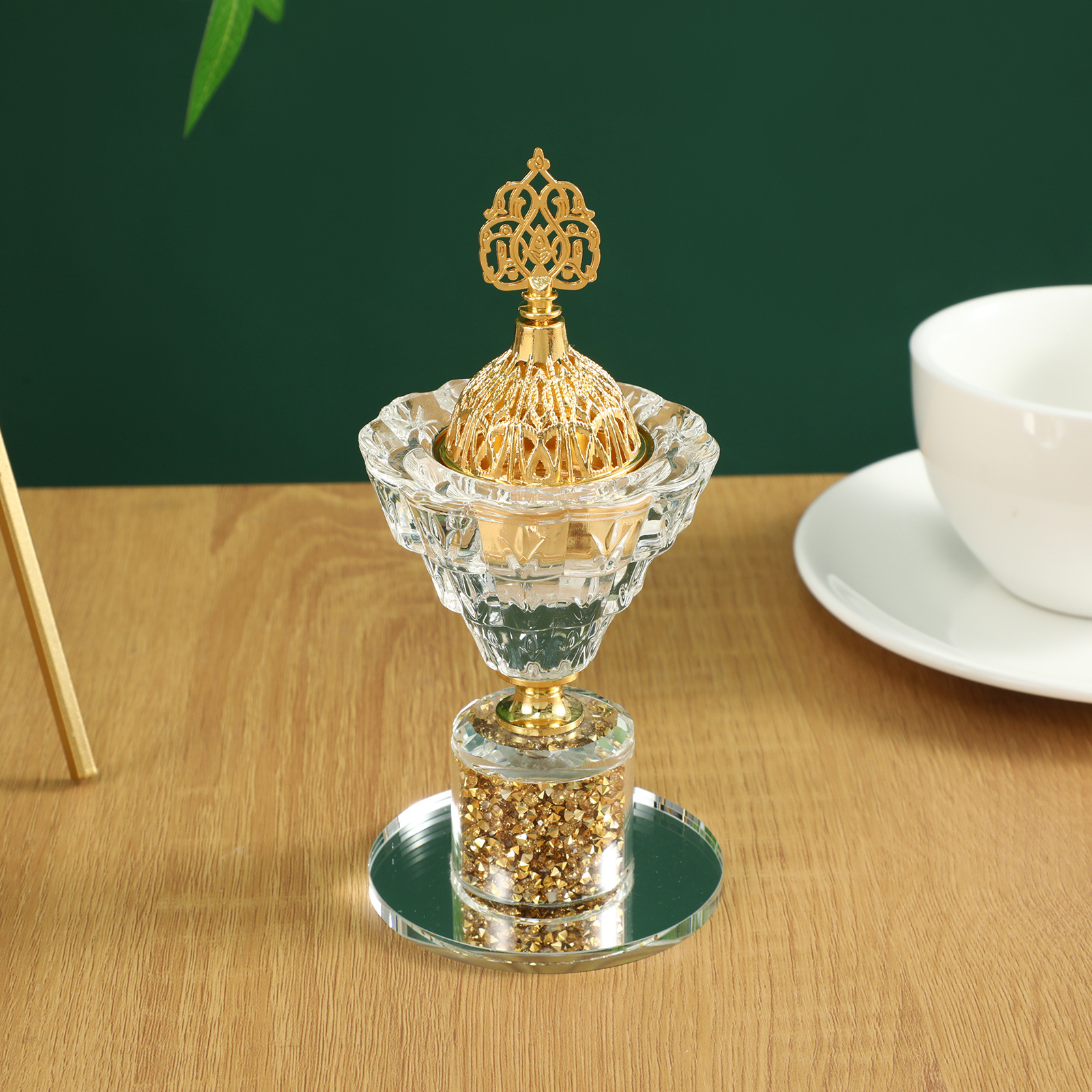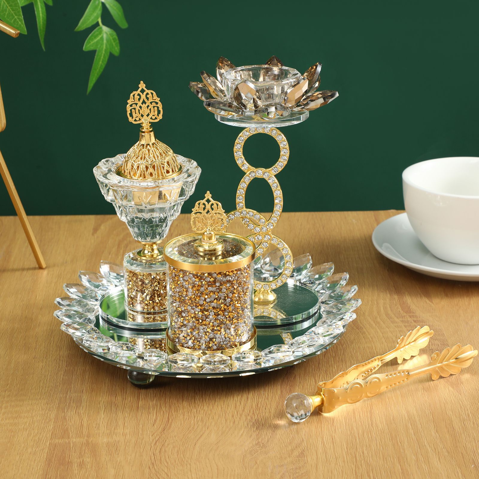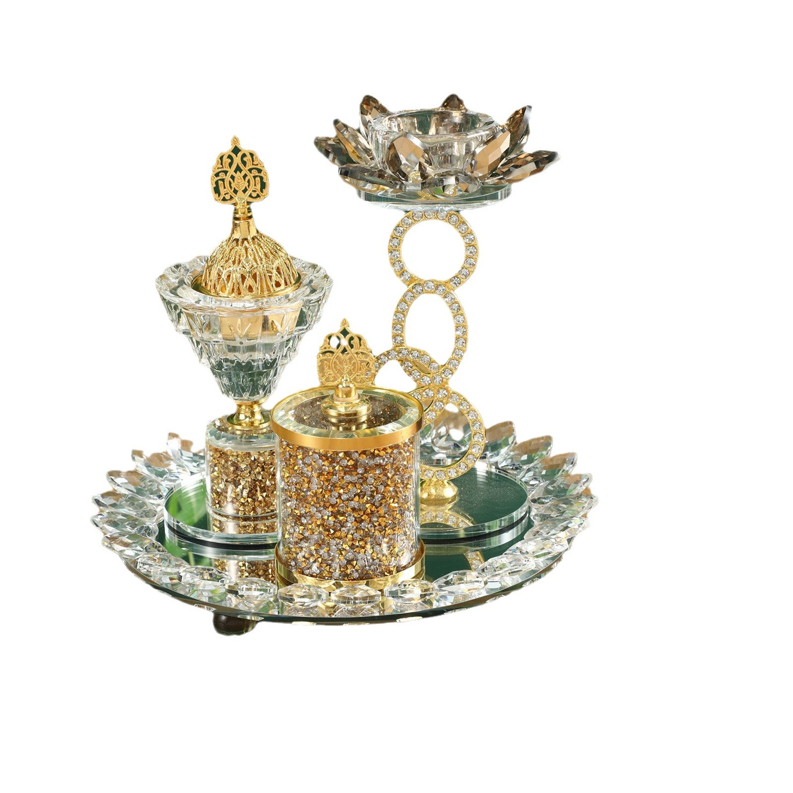 阿拉伯水晶香炉套装家居玻璃装饰品中东金色镜面香薰炉四件套摆件