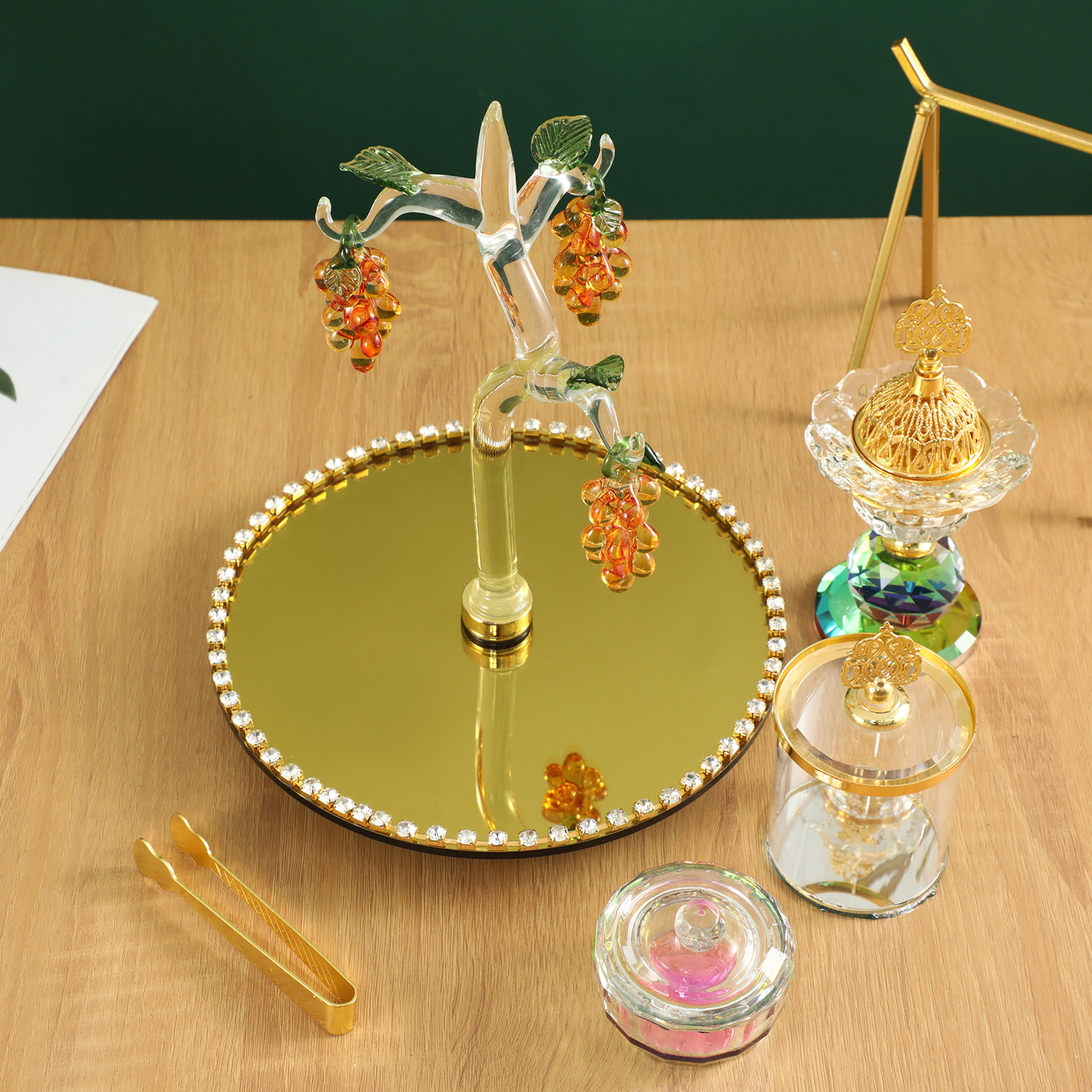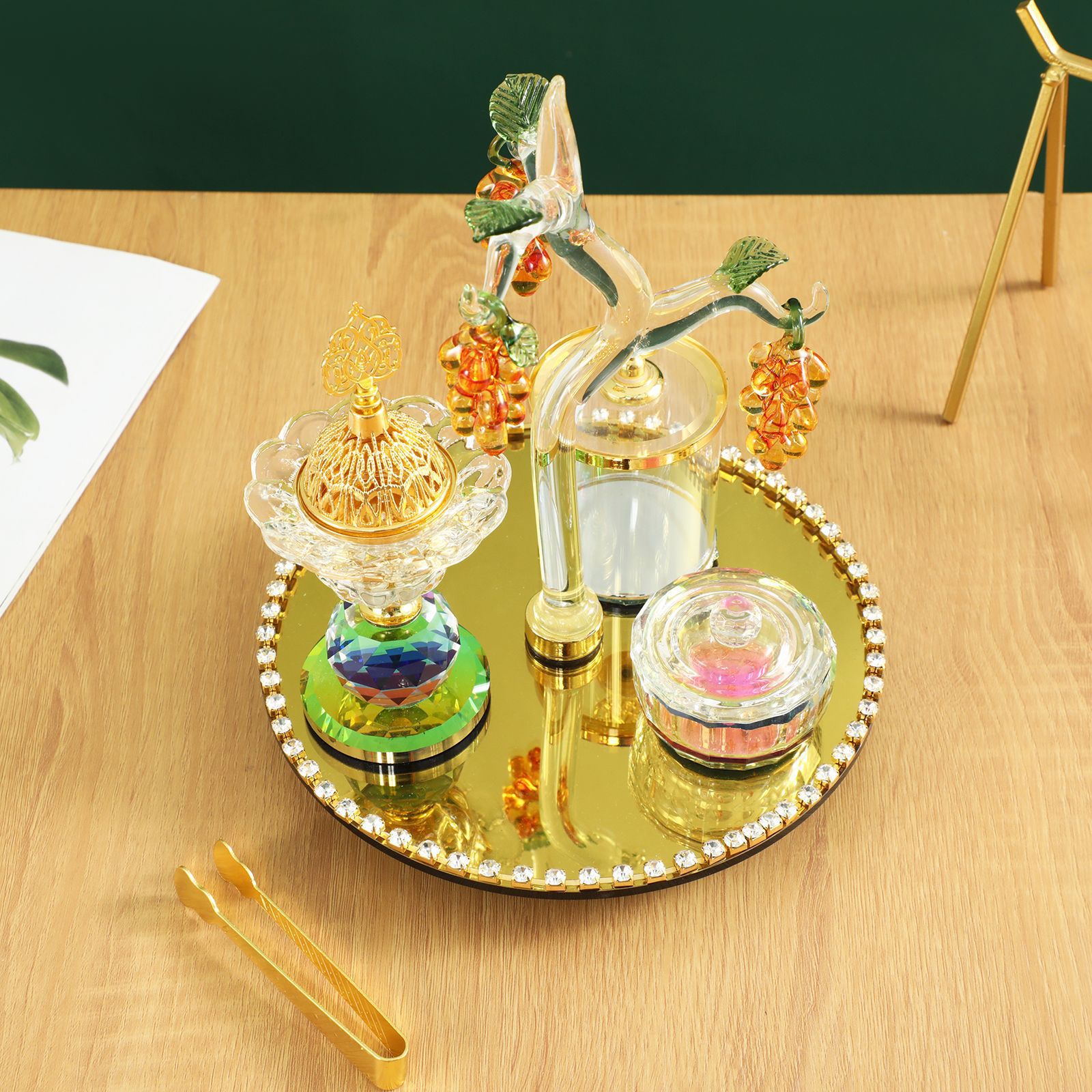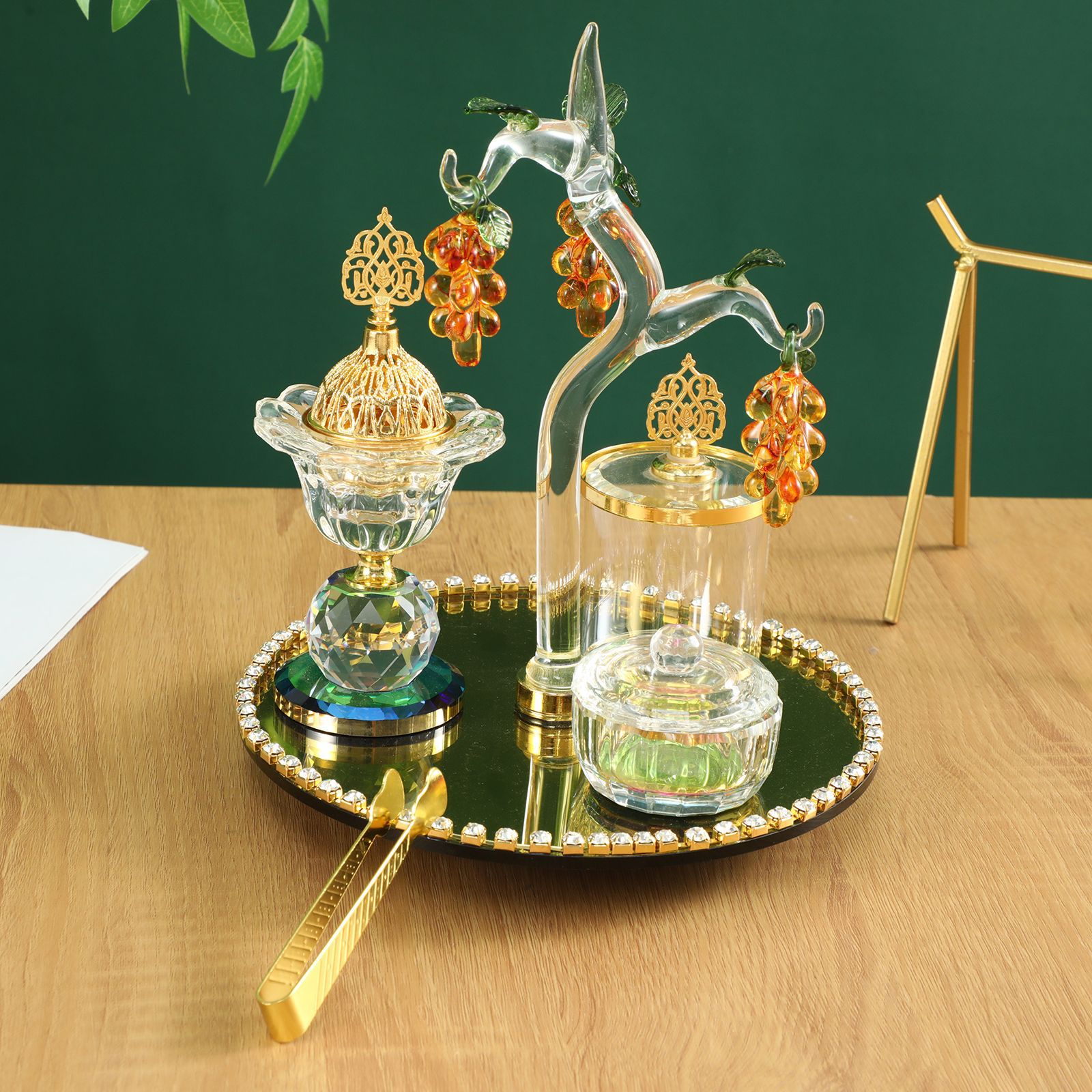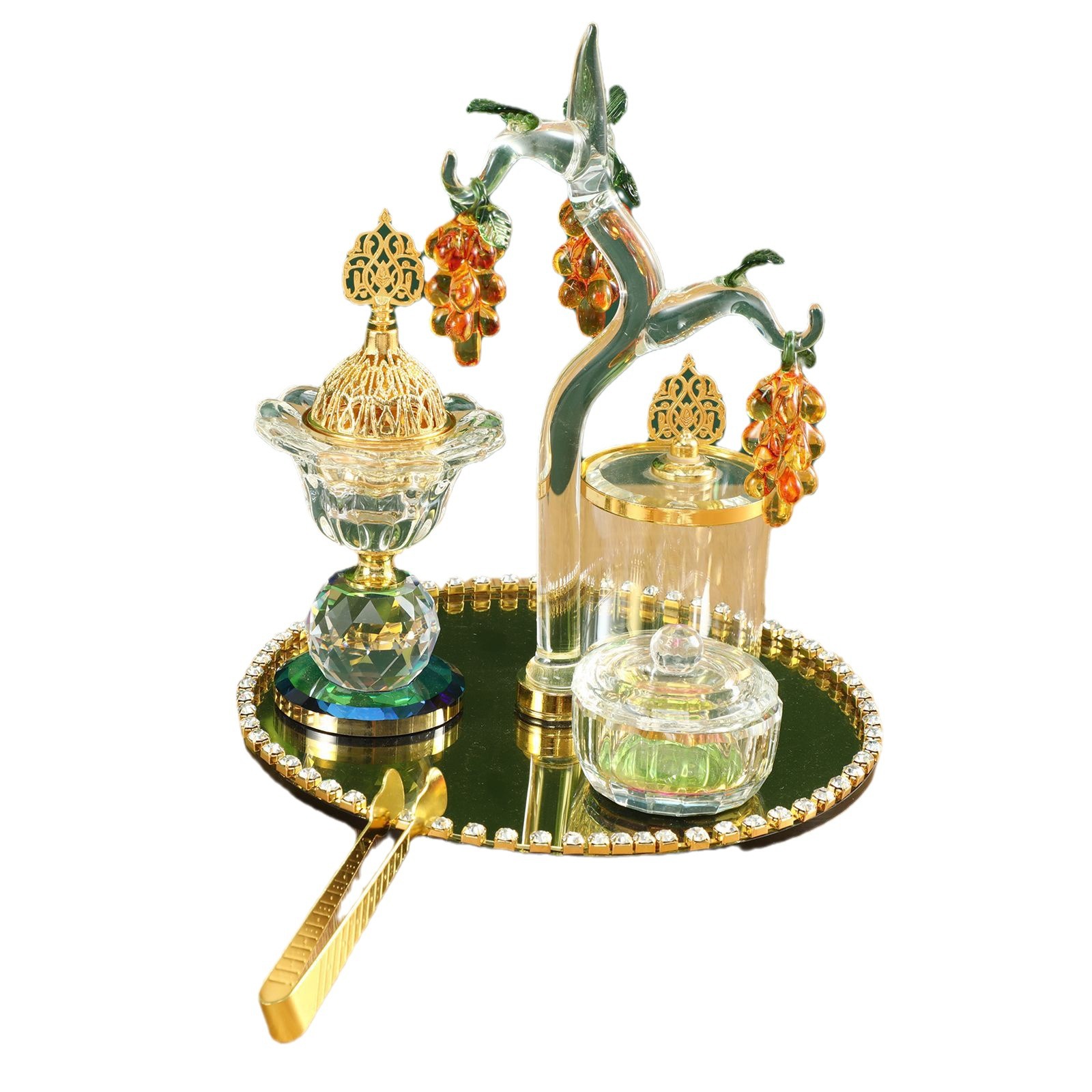 金色葡萄树香薰炉阿拉伯水晶香炉套装家居装饰摆件客厅香插批发