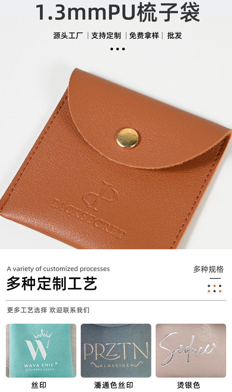 工厂小单定制高级感PU皮革梳子包装袋简约皮套首饰饰品收纳包装 投诉