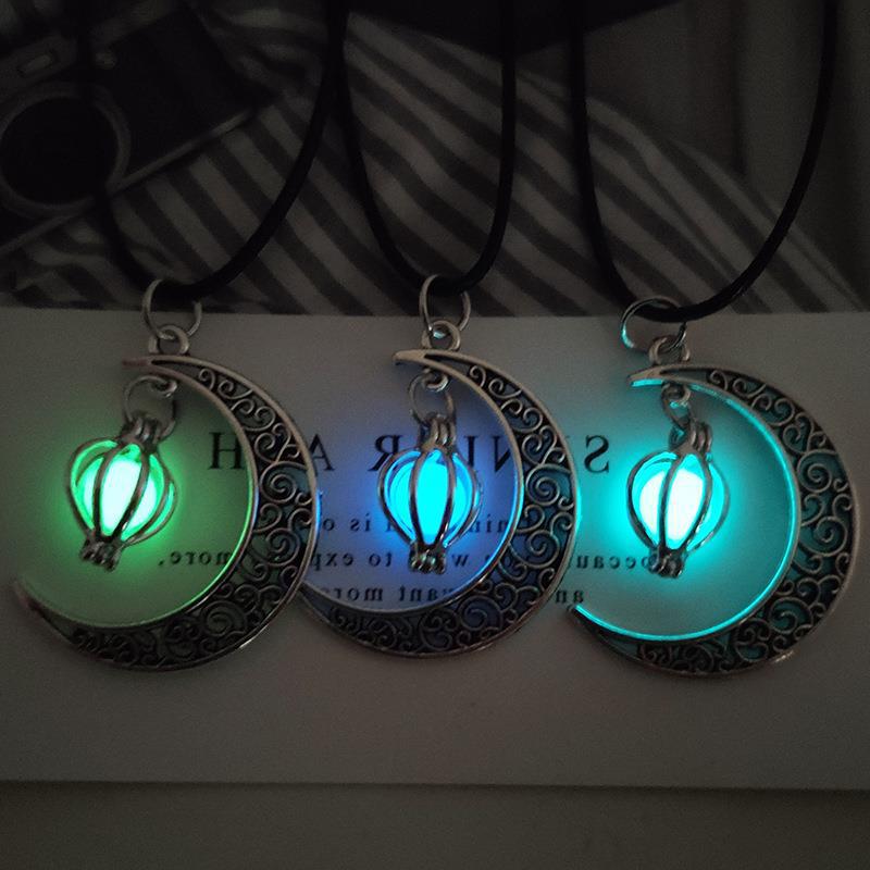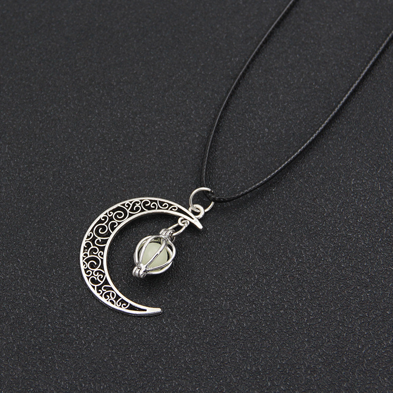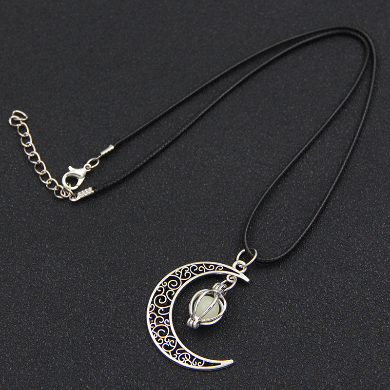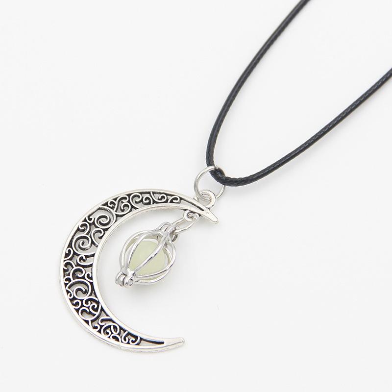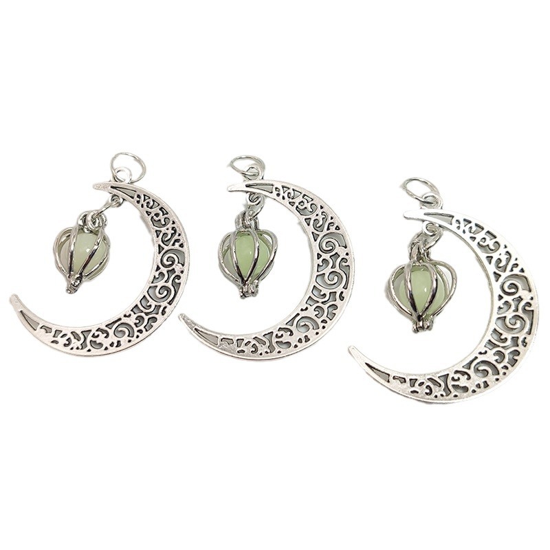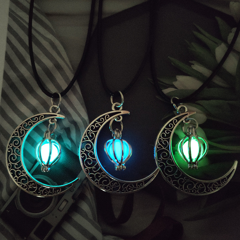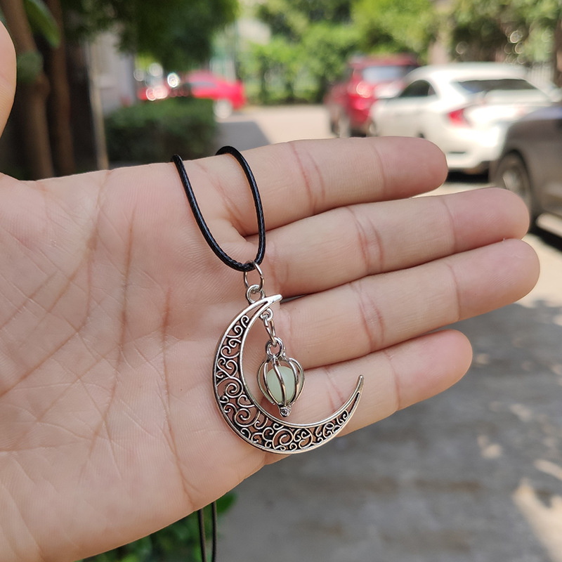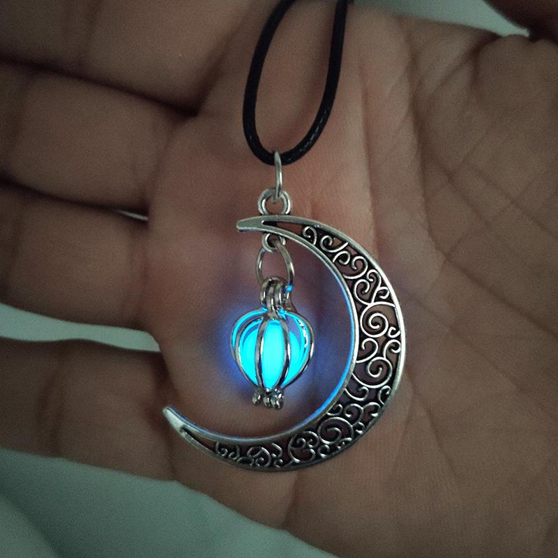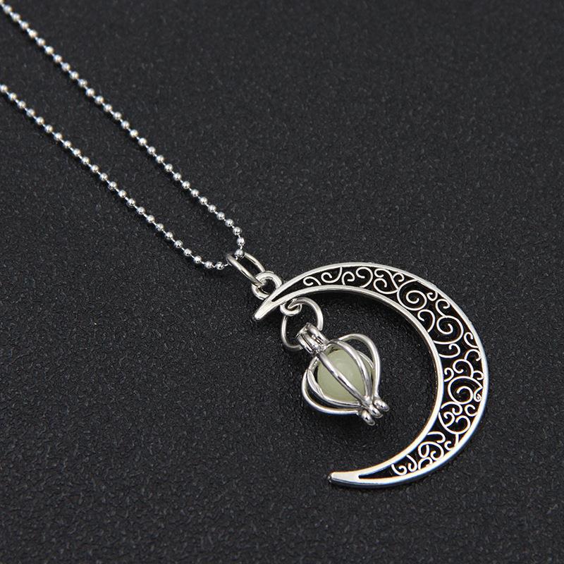 跨境热销夜光石发光月亮可打开镂空吊坠香薰魔盒项链合金饰品批发