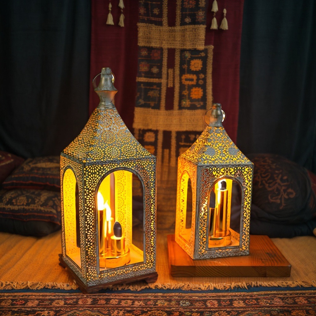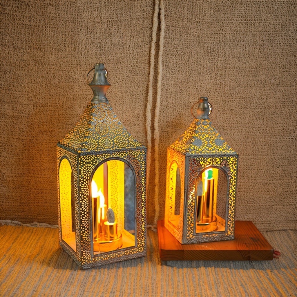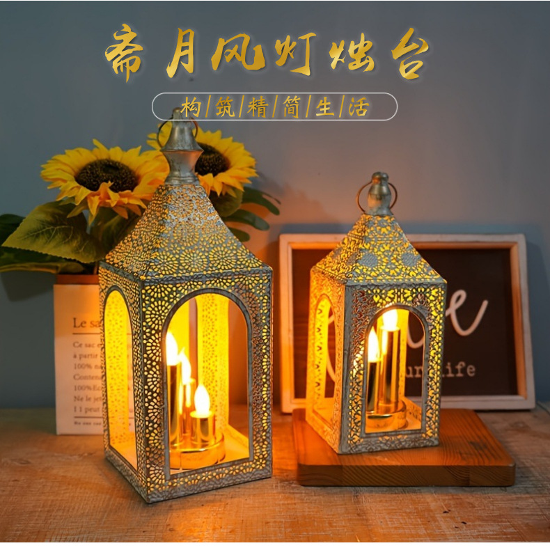 跨境热卖中东LED风灯 镂空雕花复古烛台 仿蜡烛家居氛围装饰道具