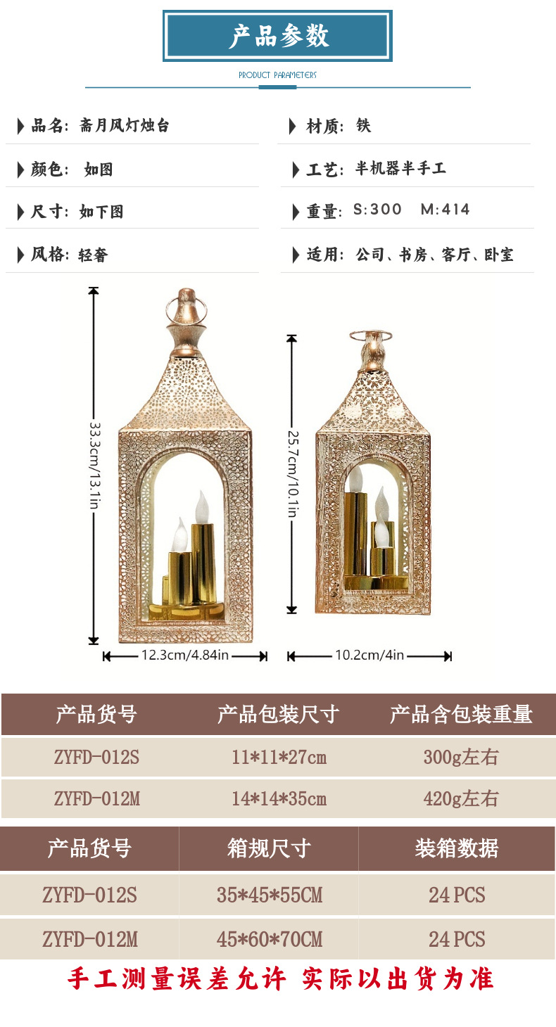 材质: 铁 器皿种类: 烛台 工艺: 半手工半机械 包装: 纸盒装 品牌: 睿诚家居装饰 产品编号: ZYFD-012 货号: 012 是否专利货源: 否 是否进口: 否 尺寸: ZYFD-012S,ZYFD-012M 是否跨境出口专供货源: 否 是否属于礼品: 否 是否IP授权: 否 重量: 0.001 kg/个