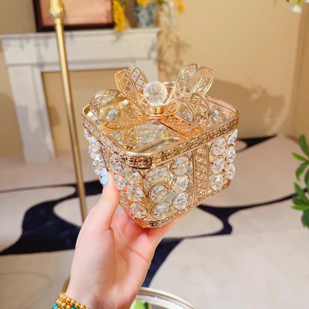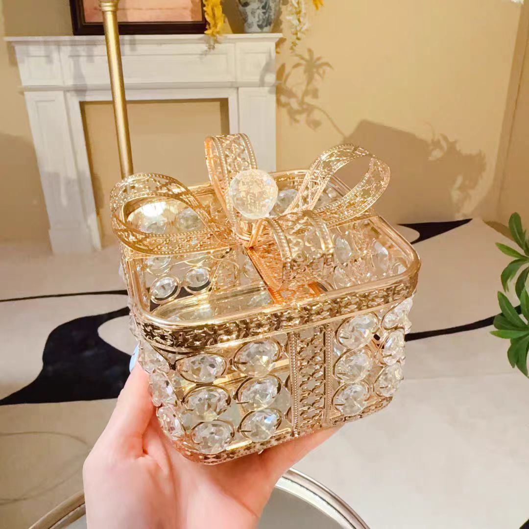 轻奢金色水晶珠居家铁艺酒店餐桌茶几礼物收纳盒首饰盒家居软装