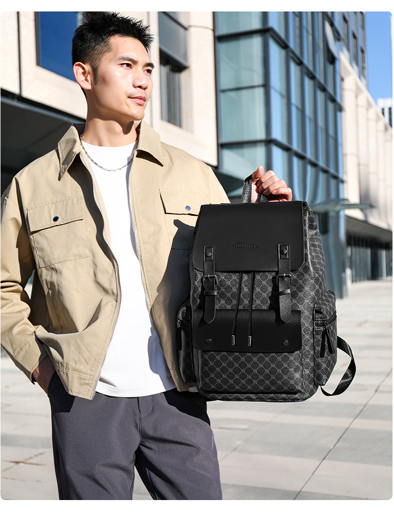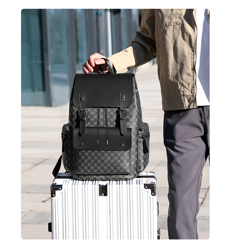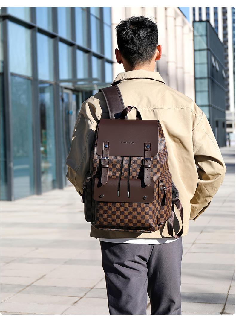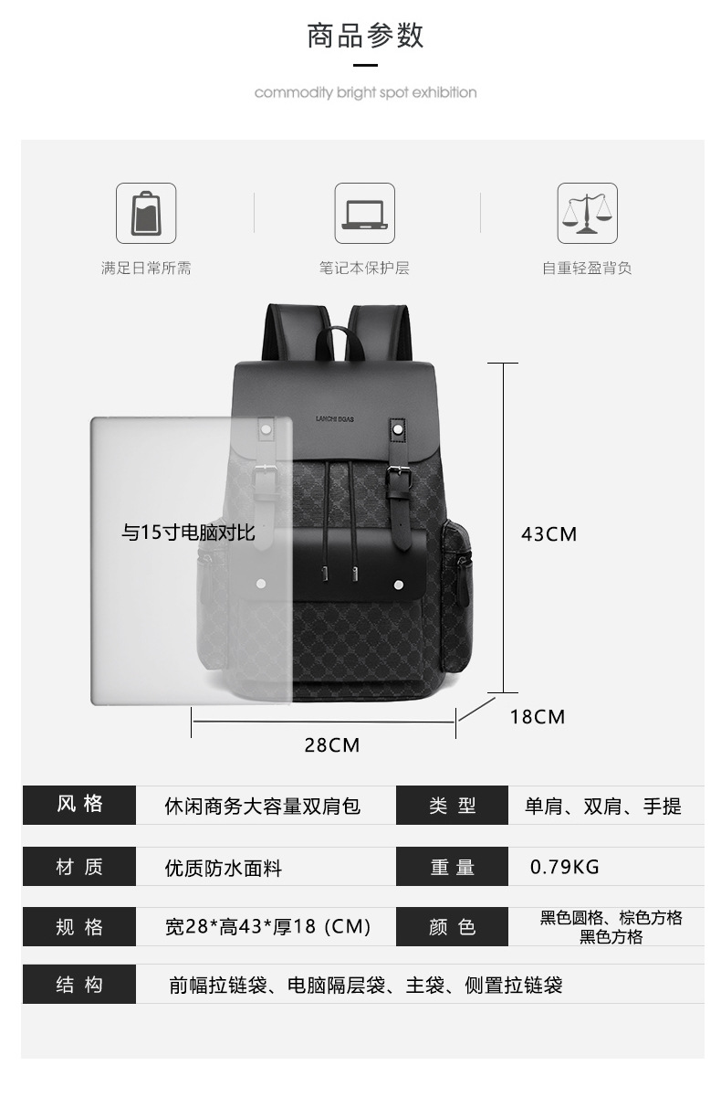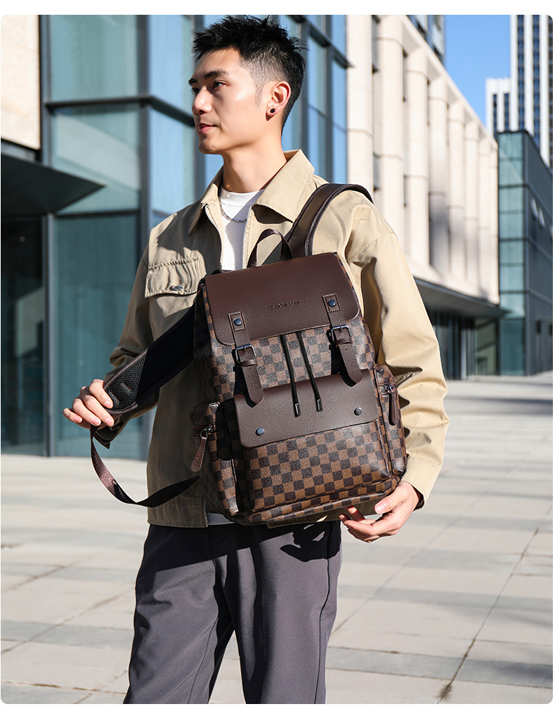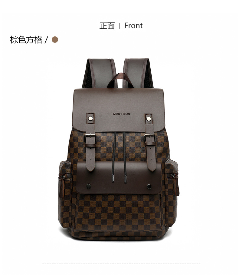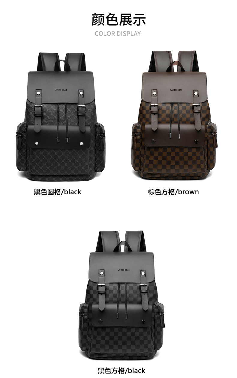 材质: PU 功能: 耐磨 里料质地: 涤纶 皮质特征: 其它 容纳电脑尺寸: 14英寸 容量: 36-55L 适用性别: 男 品牌: 其他 颜色: 9003#黑色圆格,9003#棕色方格, 适用场景: 商务出行