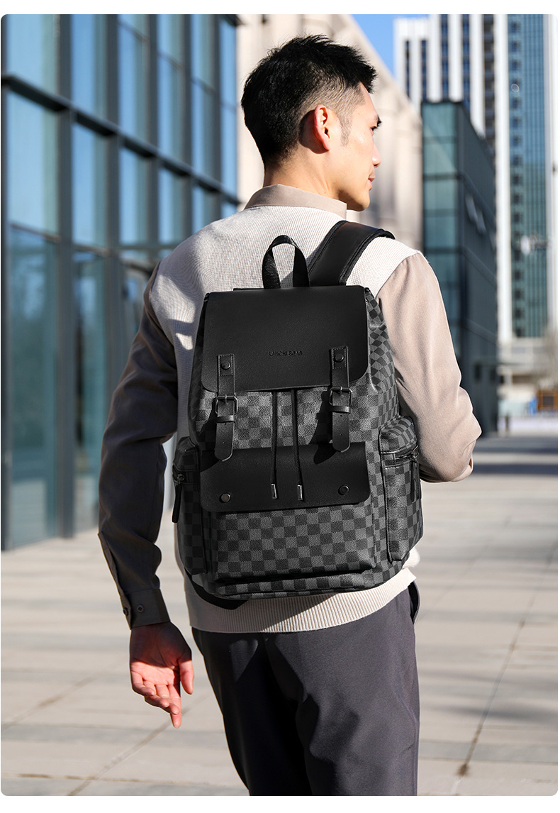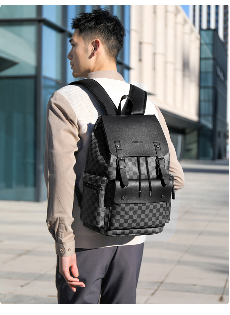 双肩包男士格子通勤休闲上班族背包大容量商务旅行出差工作电脑包