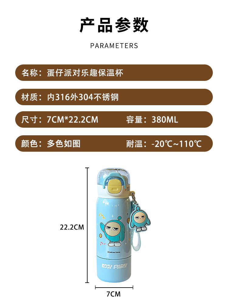 蛋仔派对儿童保温杯男孩女孩上学专用双饮吸管杯小学生幼儿园水壶 投诉