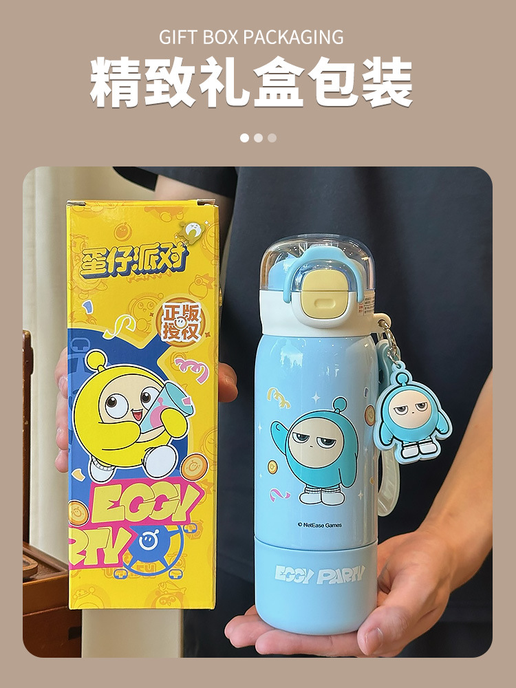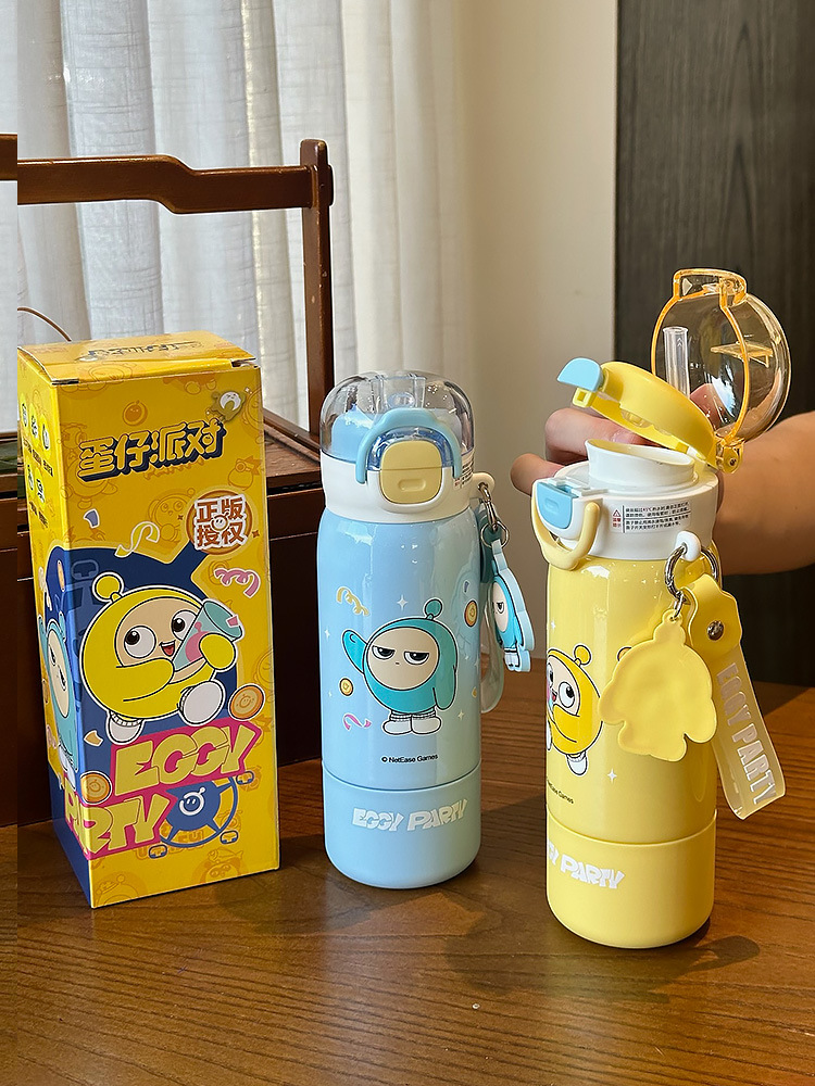 蛋仔派对儿童保温杯男孩女孩上学专用双饮吸管杯小学生幼儿园水壶