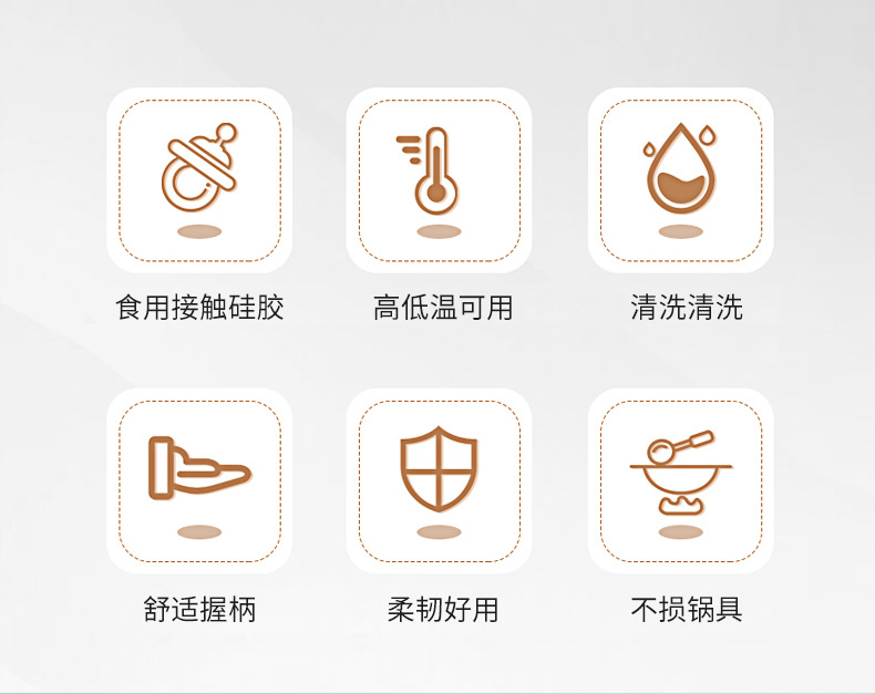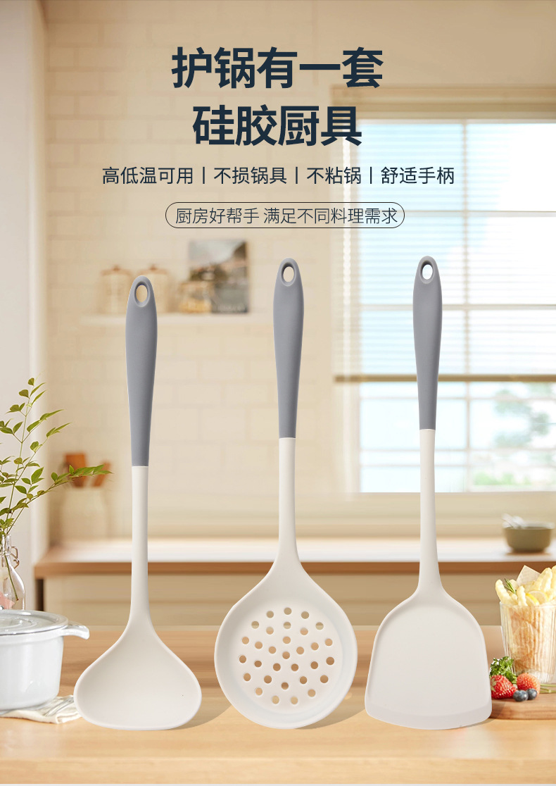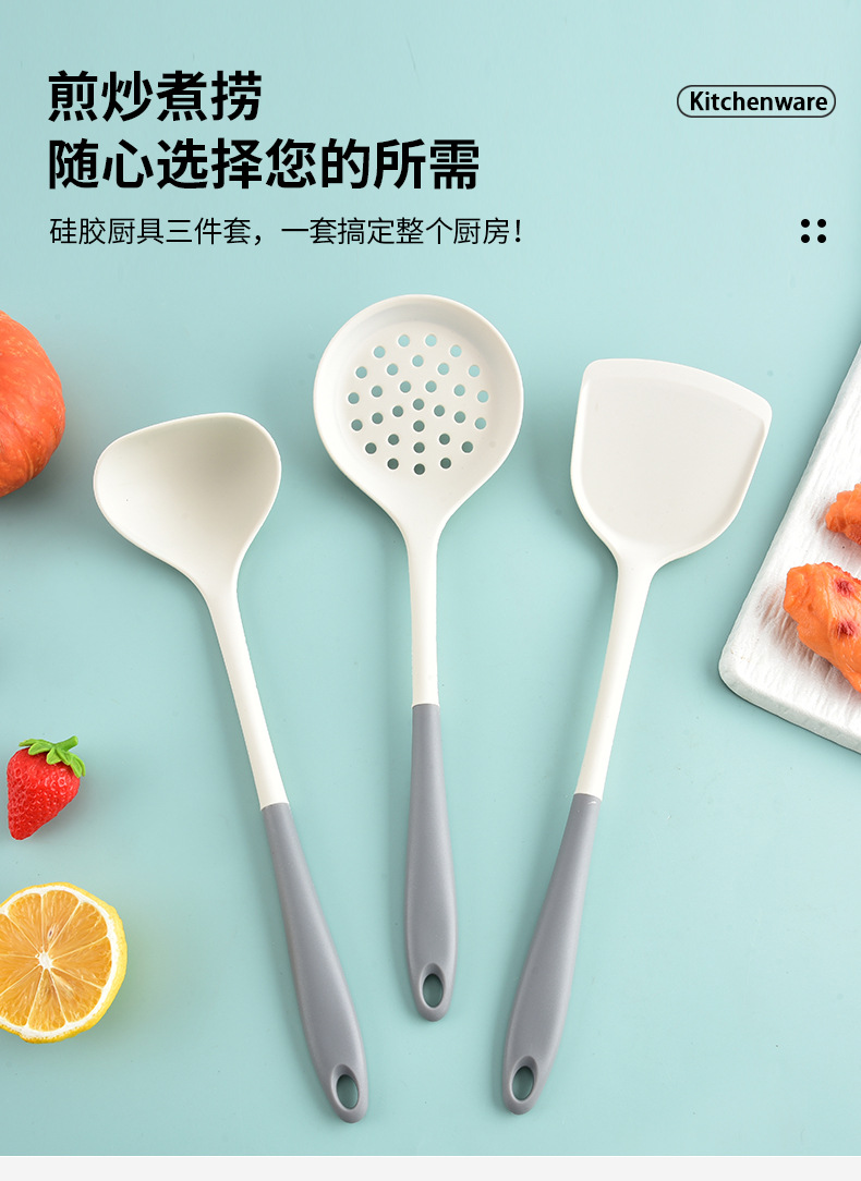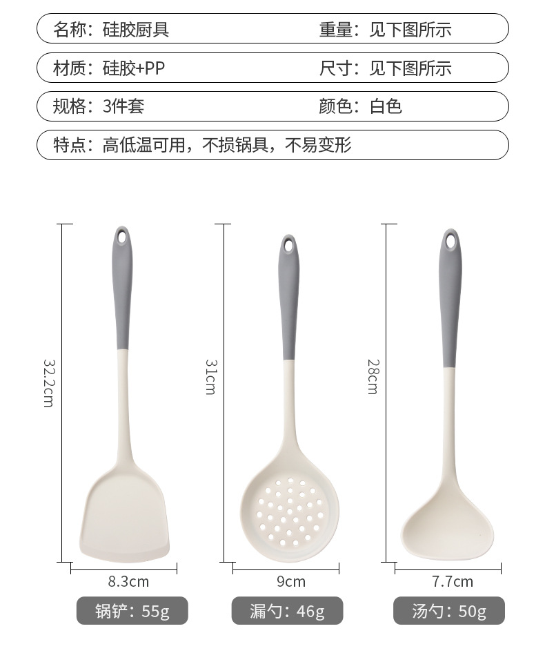 材质: 硅胶 手柄材质: 硅胶 品牌: 家之乐 功能: 耐高温,防烫,其他 加印LOGO: 可以 产品类别: 烹饪铲 是否进口: 否 货号: 硅胶厨具 产地: 阳江 加工定制: 是 产品上市时间: 2025 价格段: 5元以内 是否有专利: 无 尺寸: 灰白 - 锅铲,灰白 - 捞离,灰白 - 主要下游平台: ebay,亚马逊,wish,速卖通,独立 主要销售地区: 欧洲,南美,东南亚,北美,东北亚,中东 有可授权的自有品牌: 否 是否跨境出口专供货源: 是 风格: 现代简约 版权: 无 重量: 0.001 kg/件