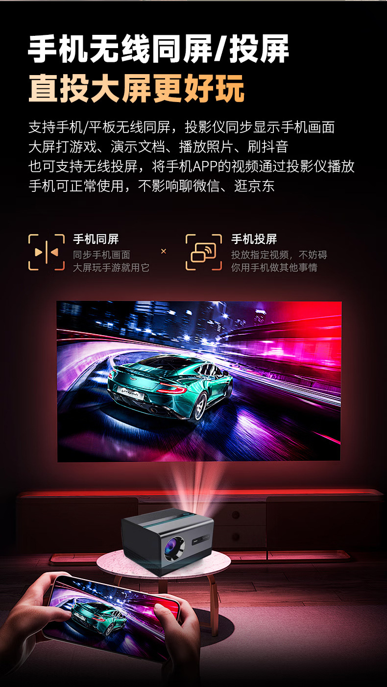 投影仪家用超高清1080P源头工厂H50独立私模投影仪连接手机高清