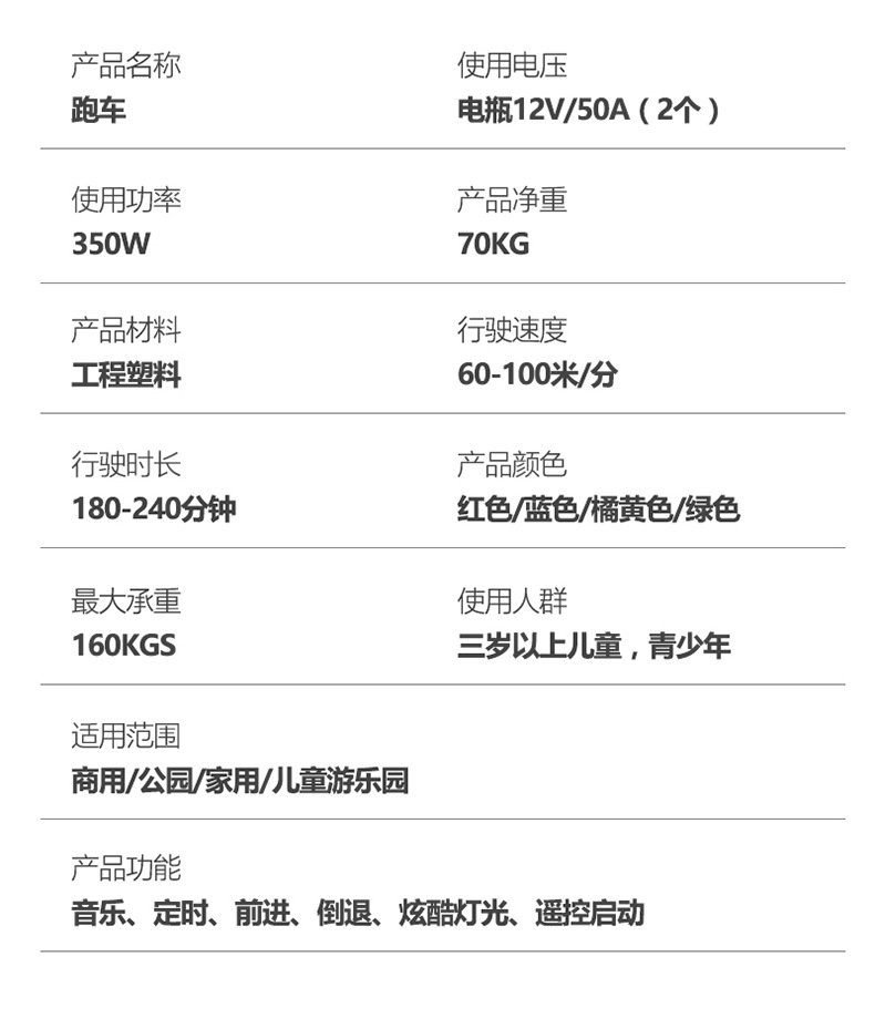 适用场景: 场地游艺设备 材质: 滚塑 货号: 0108 功能: 音乐、定时、前进、倒退、酷炫灯光、遥控启 产地: 浙江省台州市黄岩区 品牌: WH 规格: 175*102*64cm 型号: TM7 加工定制: 否 是否支持一件代发: 支持 是否跨境出口专供货源: 否 专利类型: 无