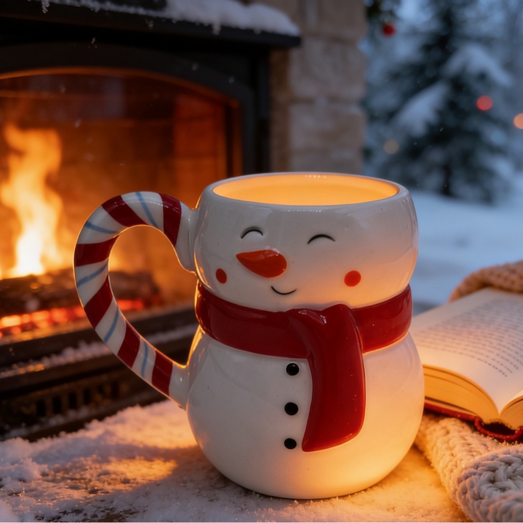 德化跨境定制厂家圣诞雪人大容量咖啡水杯陶瓷马克杯礼品来图来样