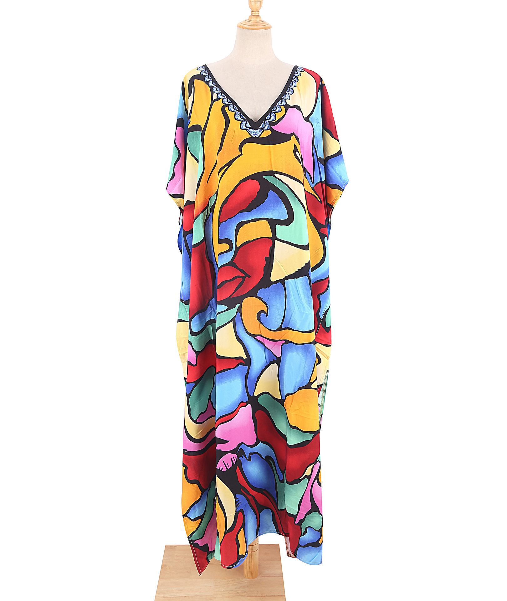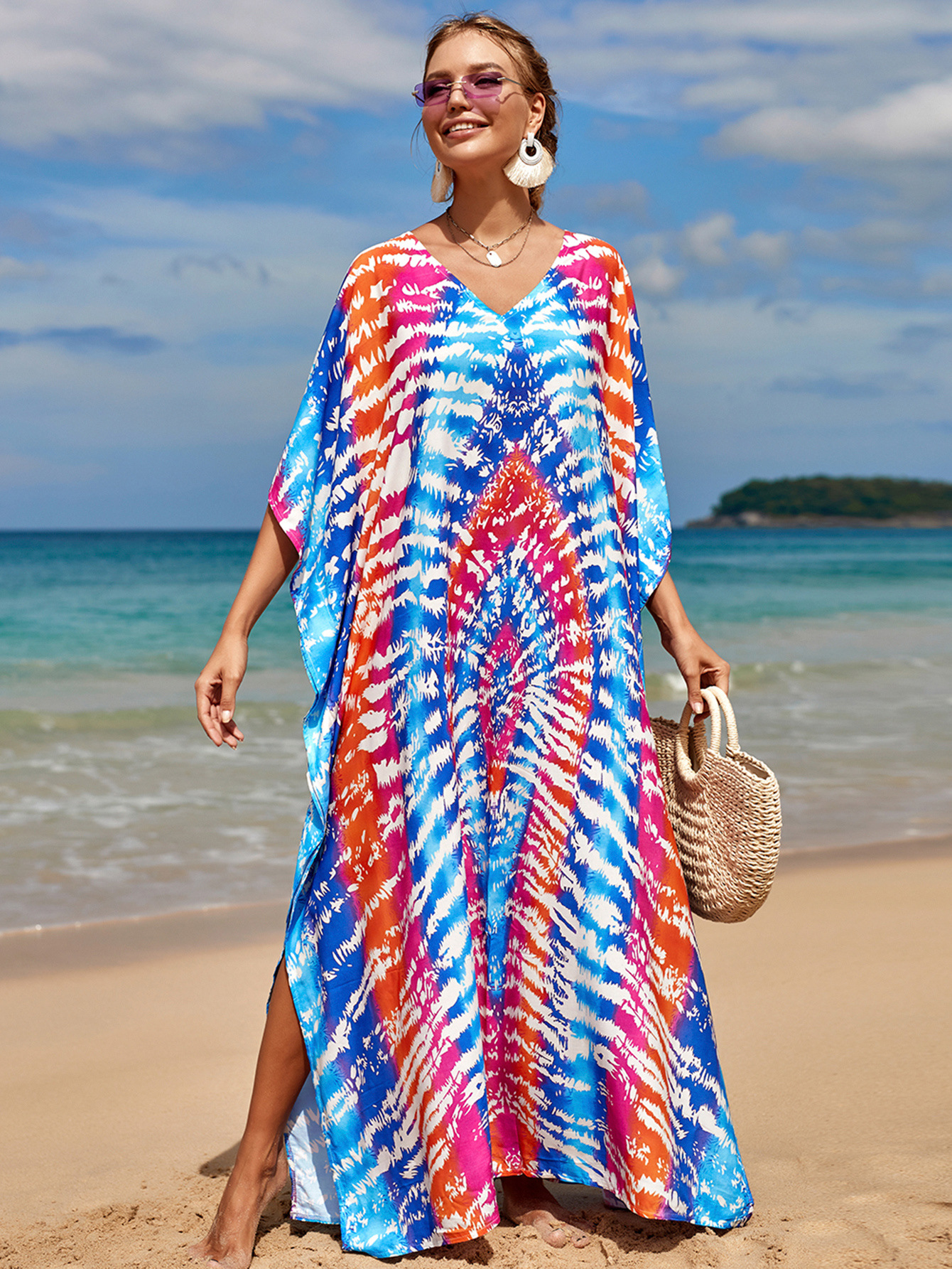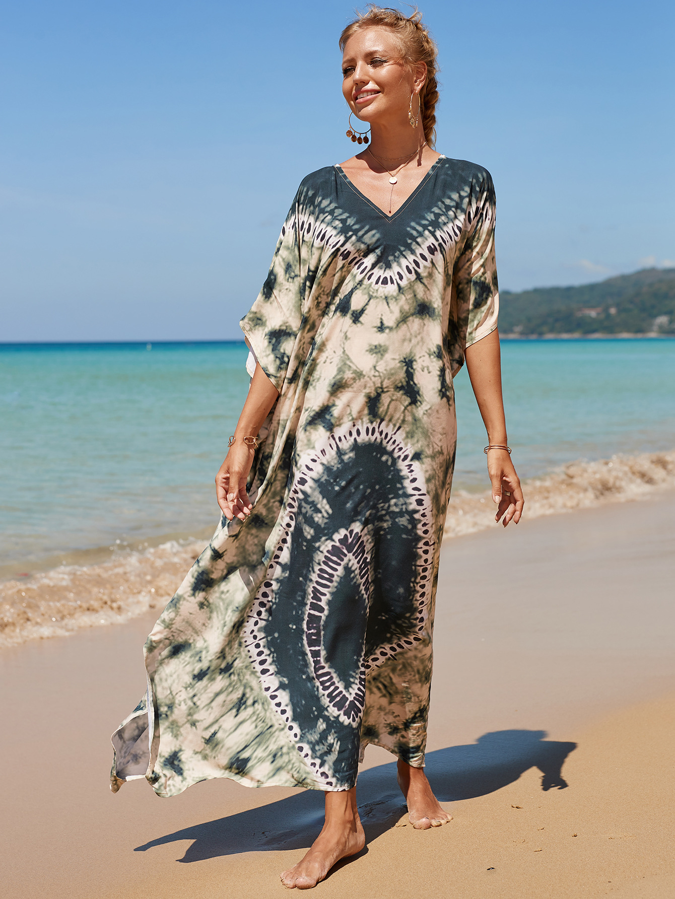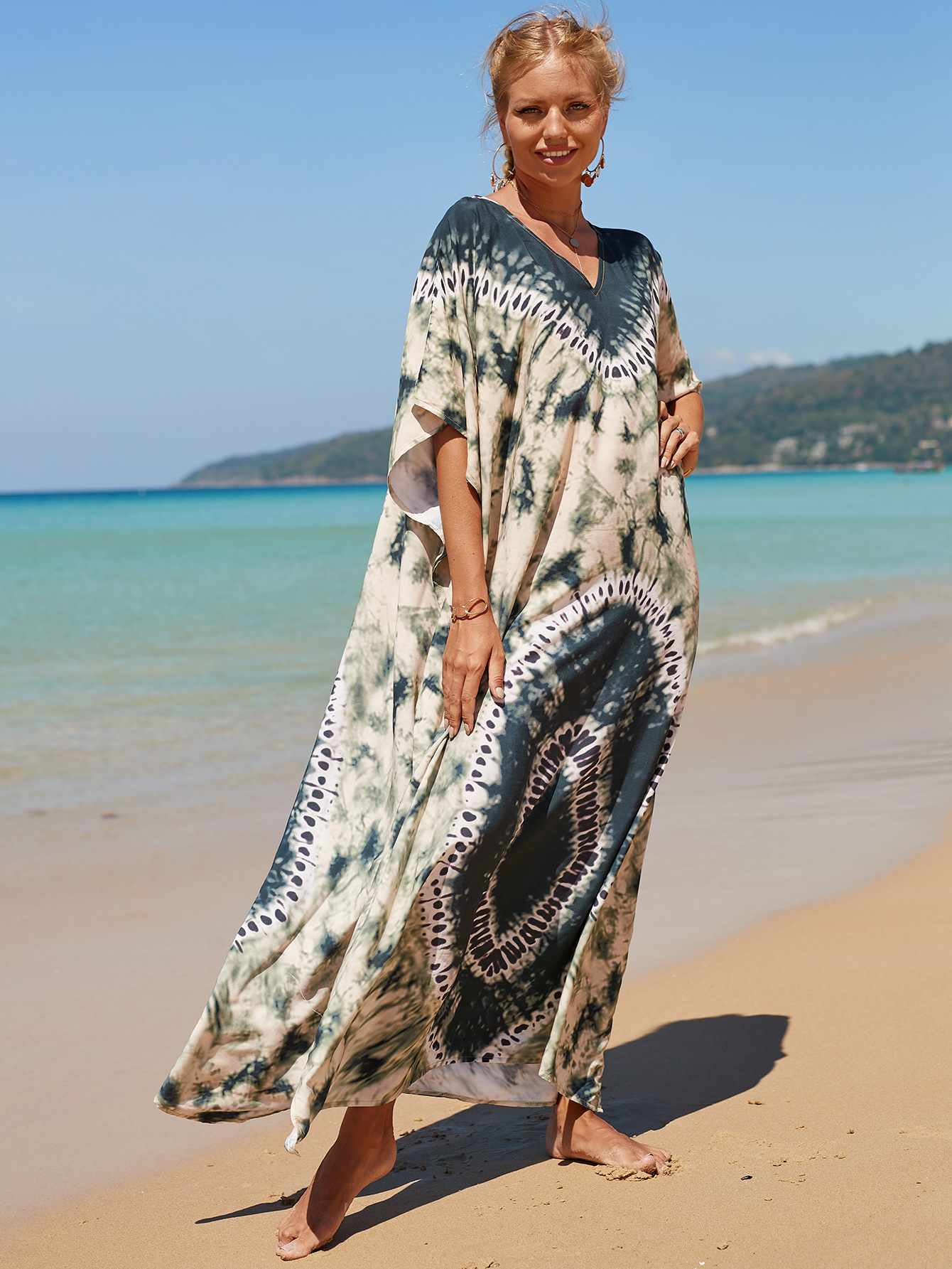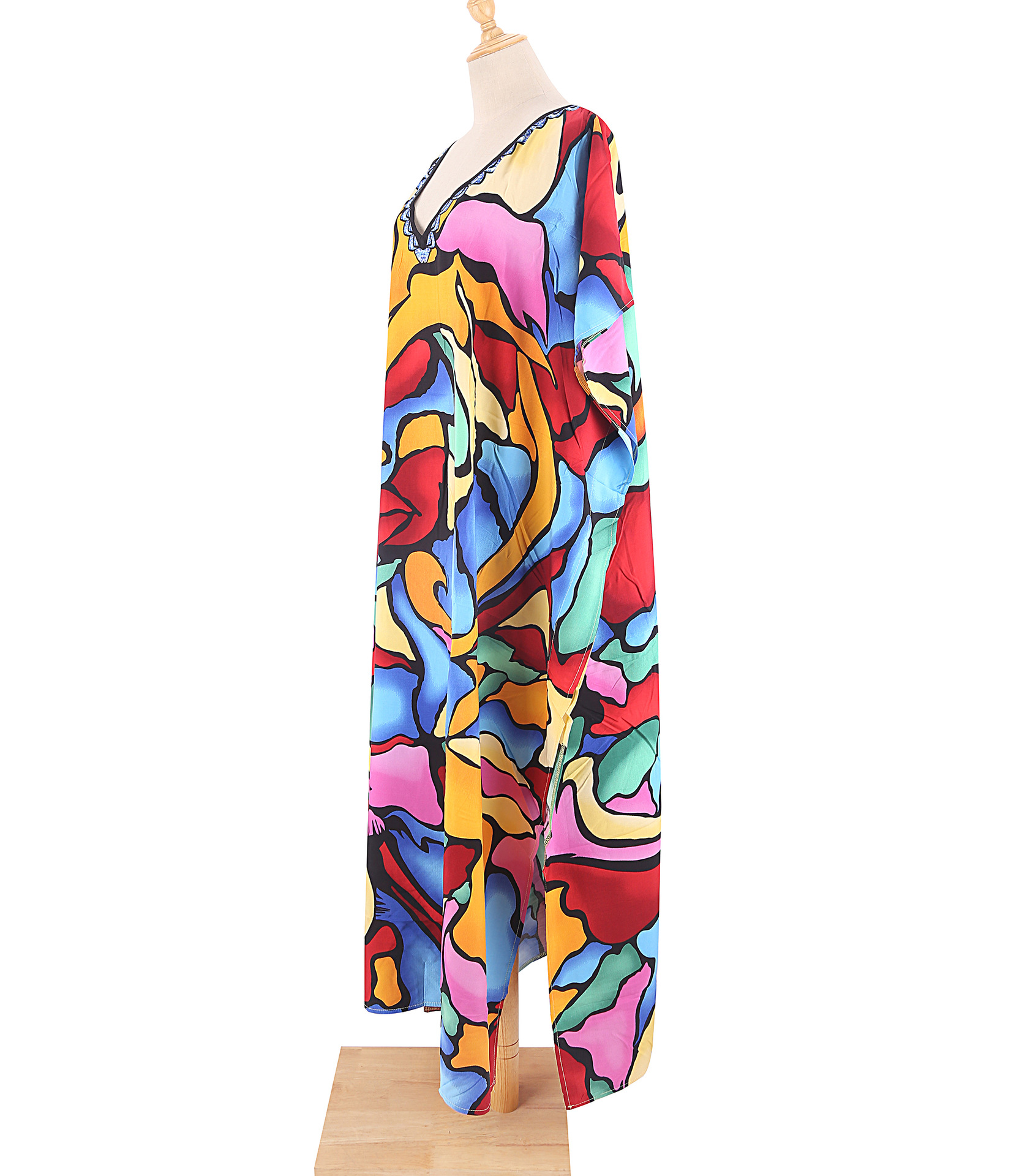 欧美新款人棉印花沙滩裙宽松长袍海边度假比基尼泳衣罩衫防晒衫女 English | 投诉