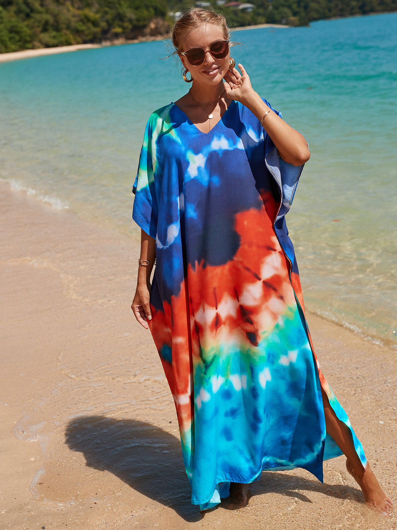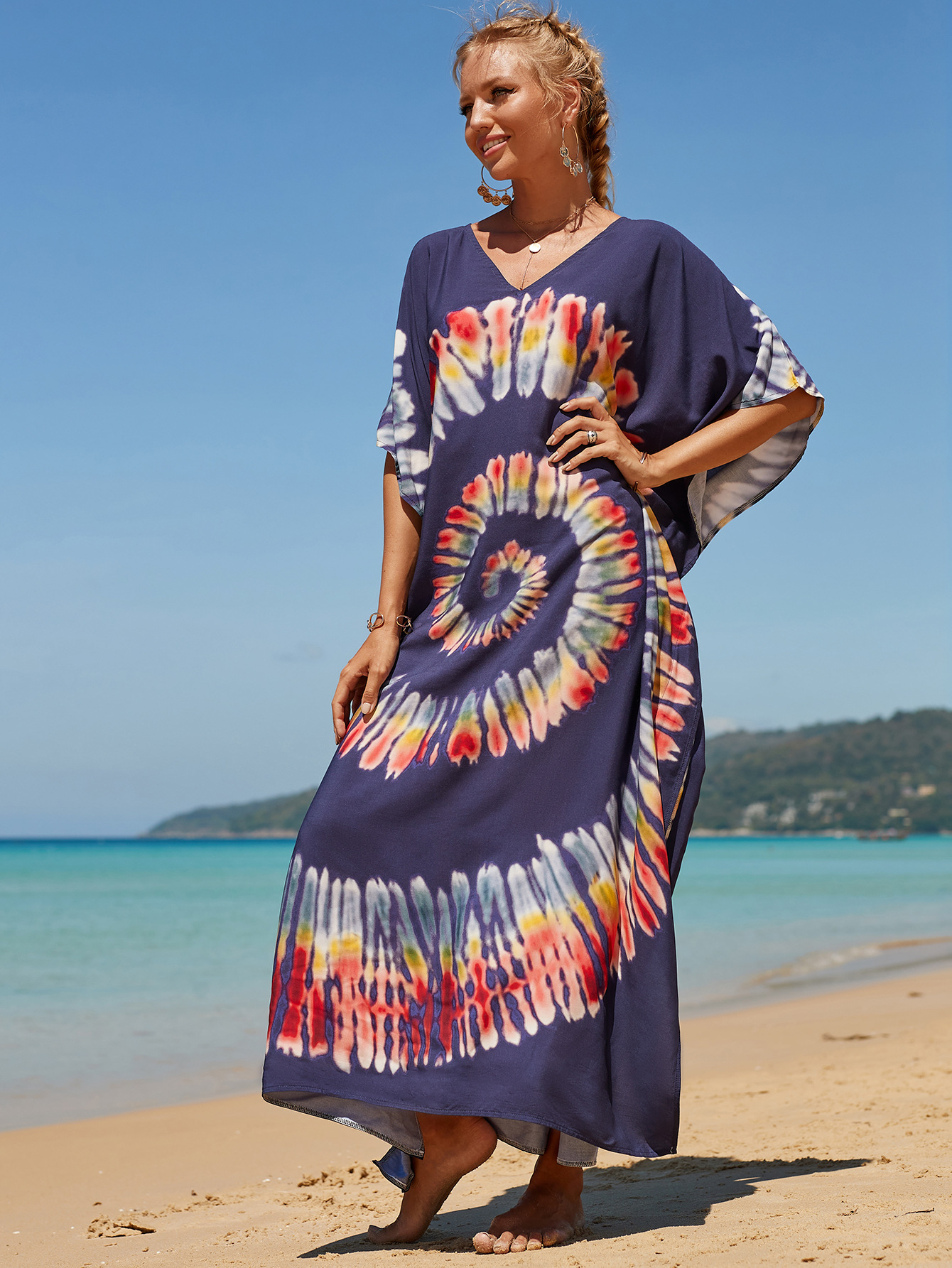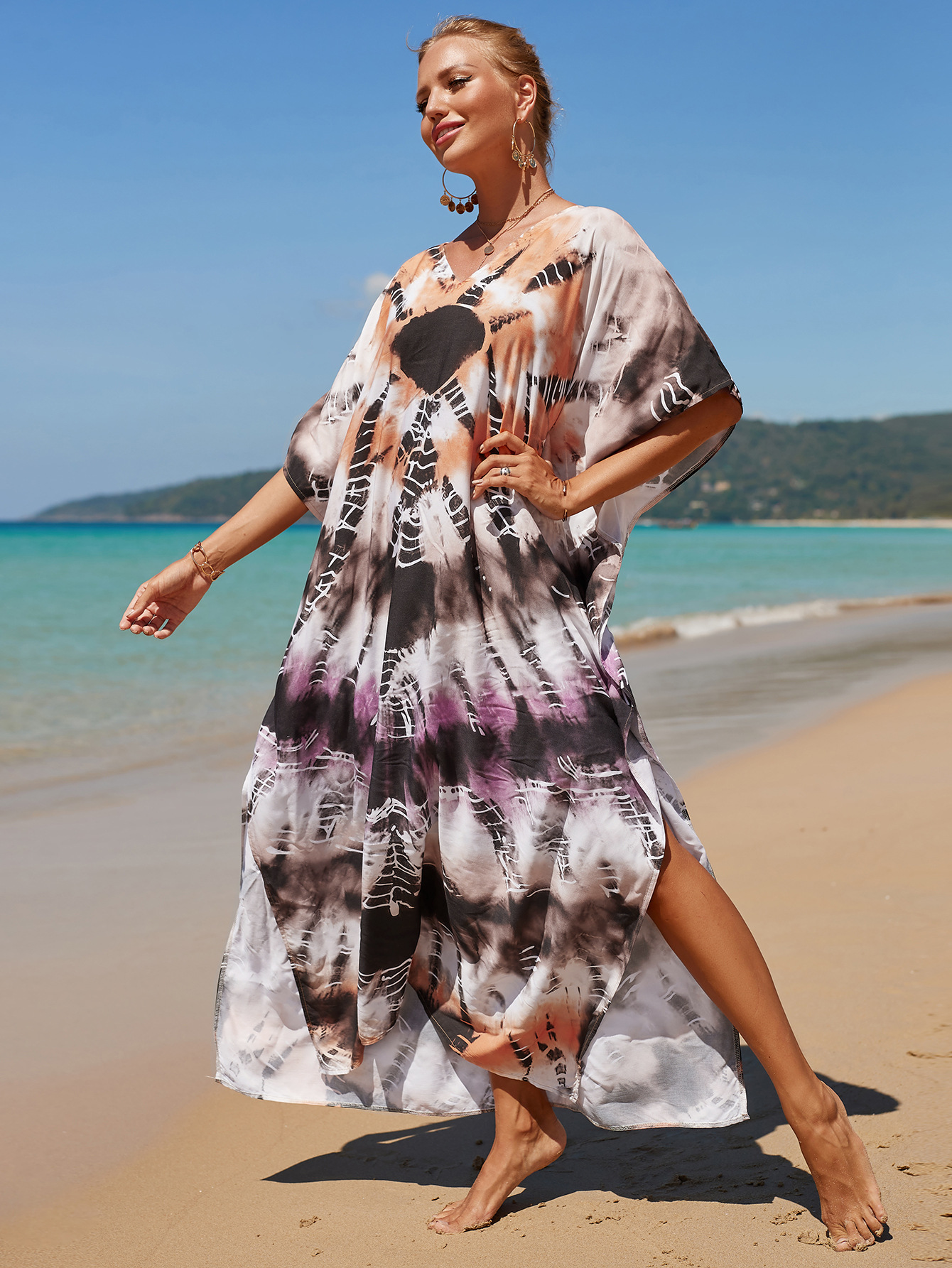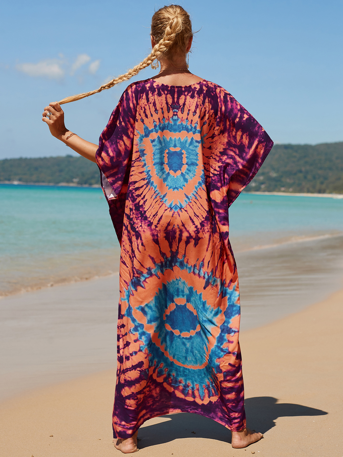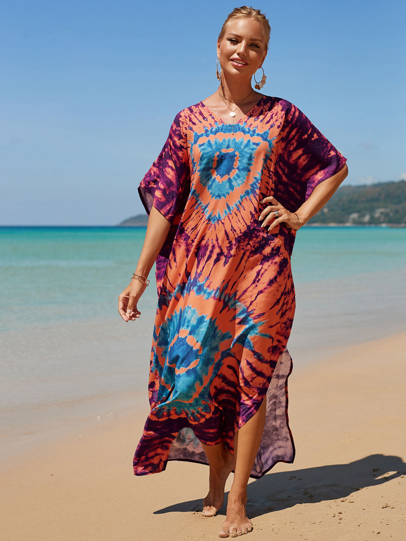 欧美新款人棉印花沙滩裙宽松长袍海边度假比基尼泳衣罩衫防晒衫女 English | 投诉