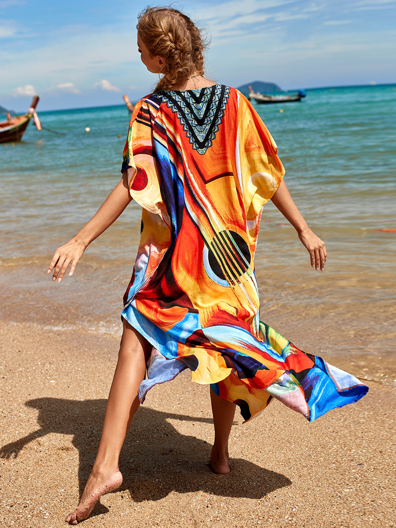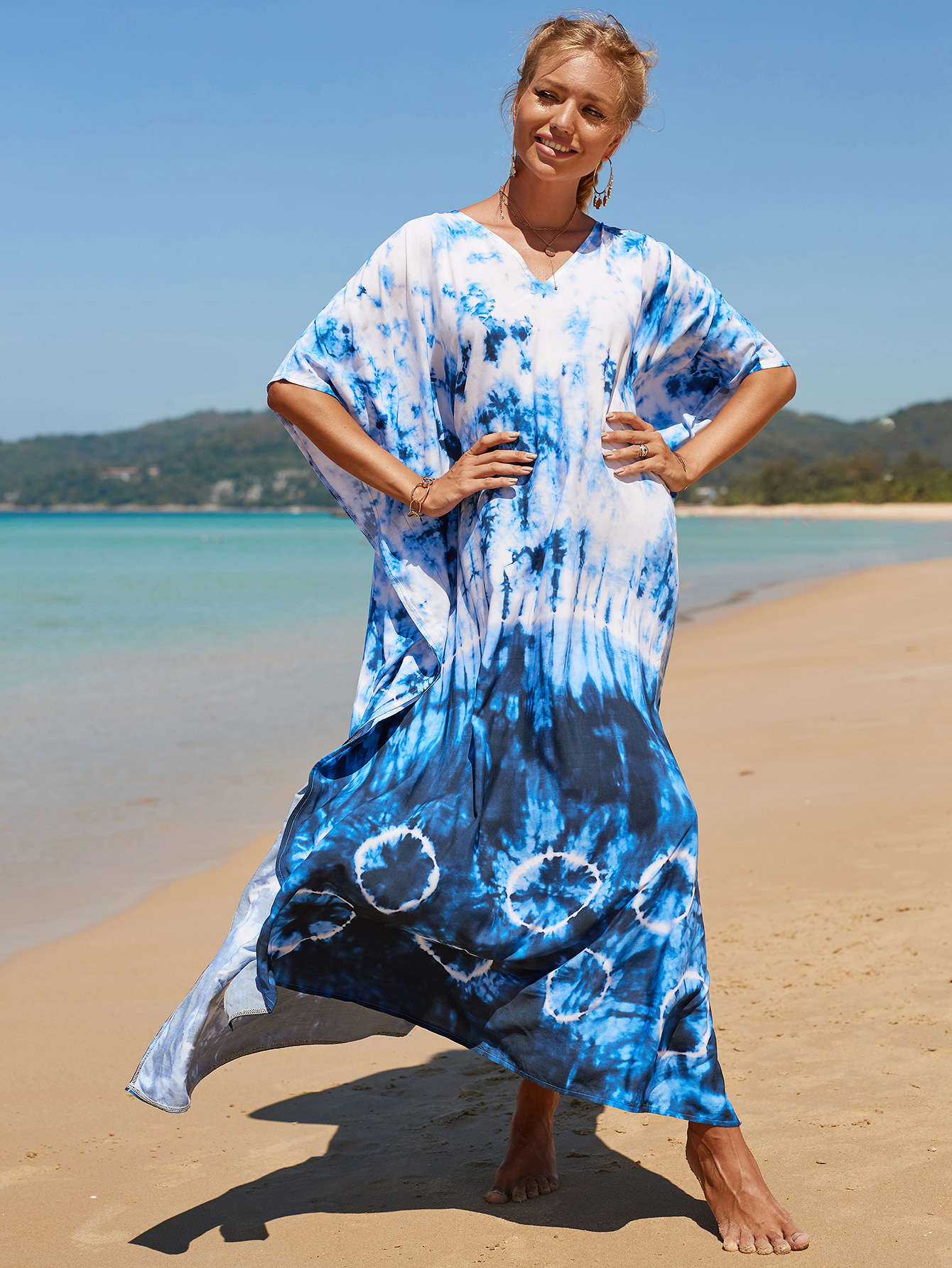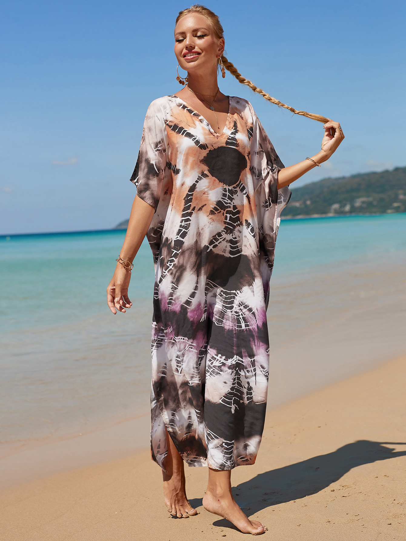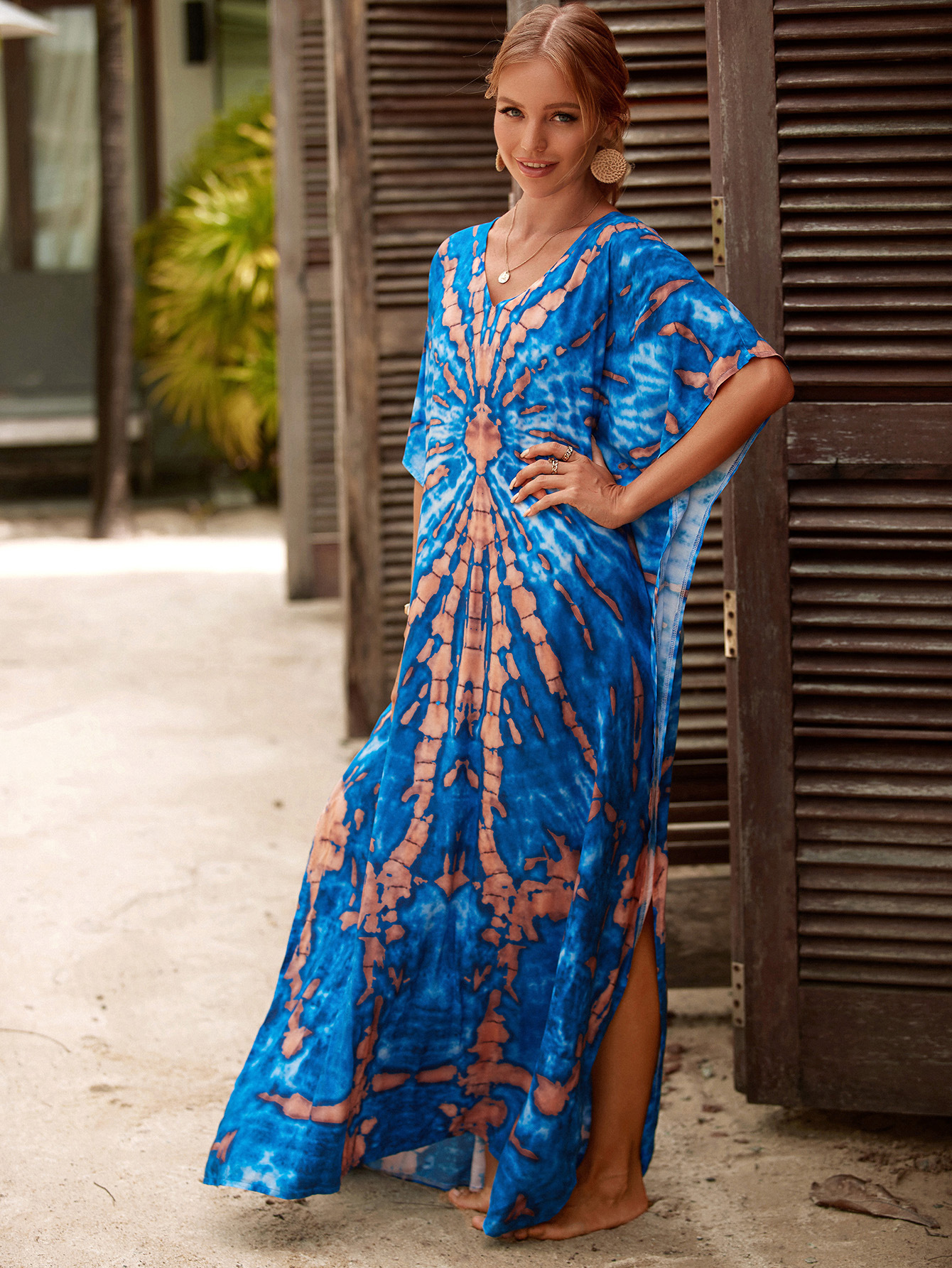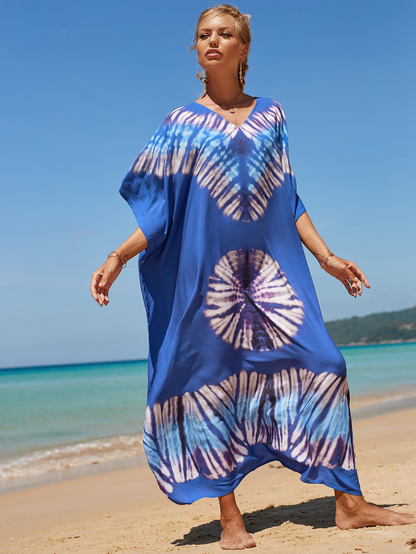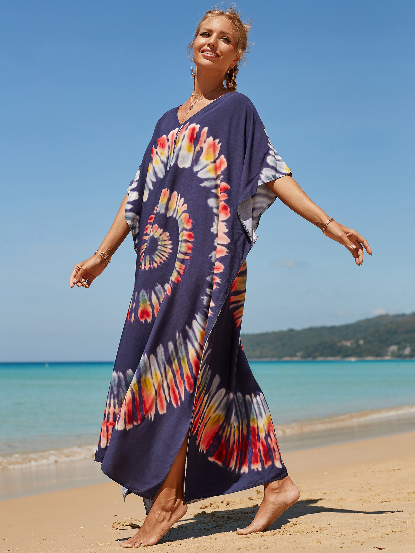 欧美新款人棉印花沙滩裙宽松长袍海边度假比基尼泳衣罩衫防晒衫女 English | 投诉