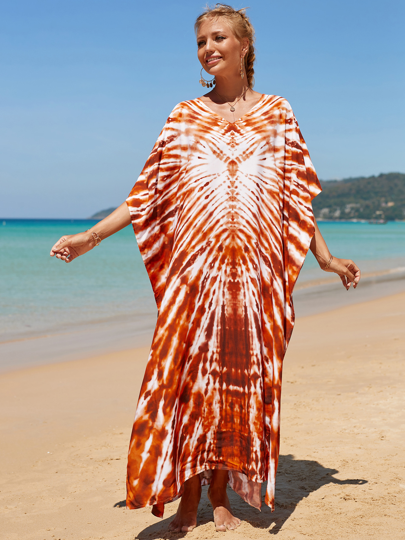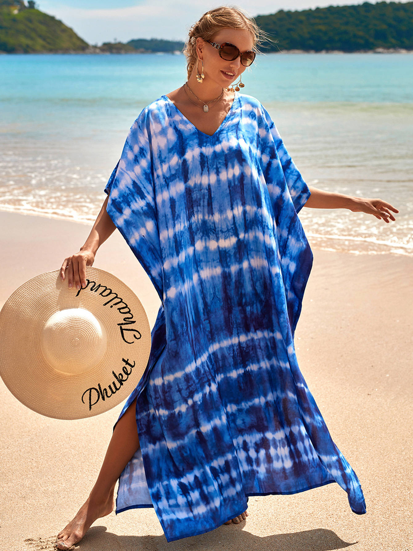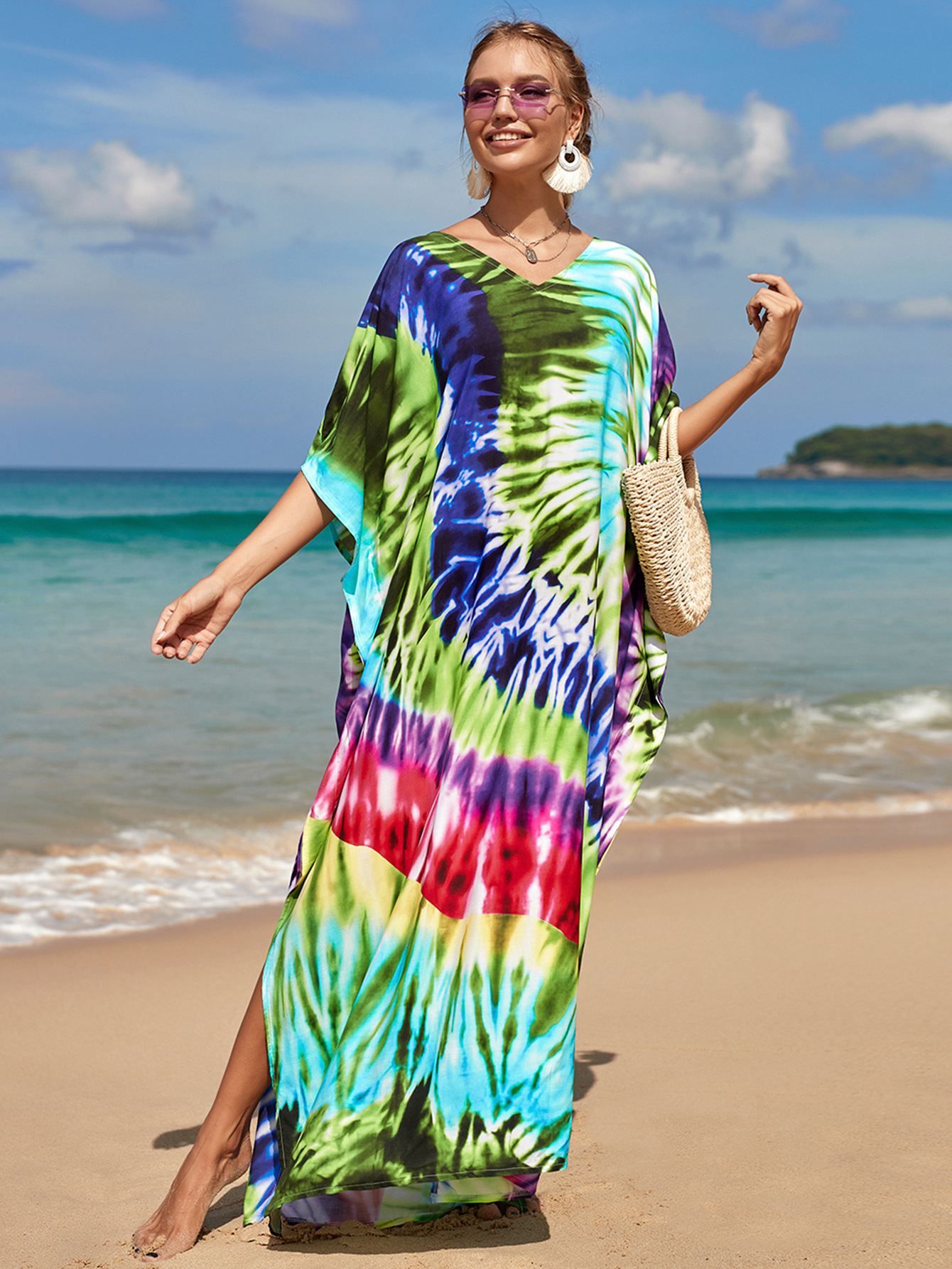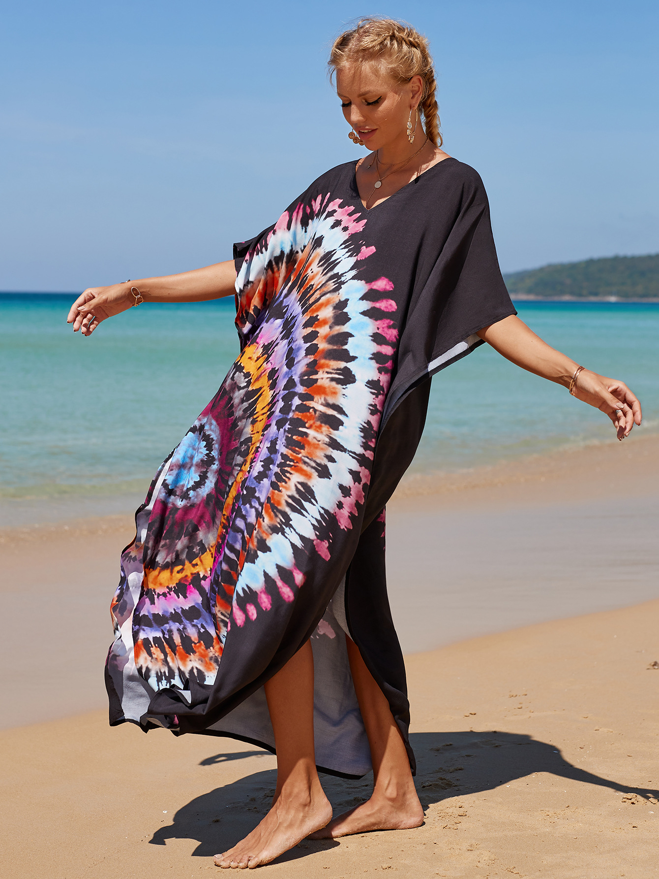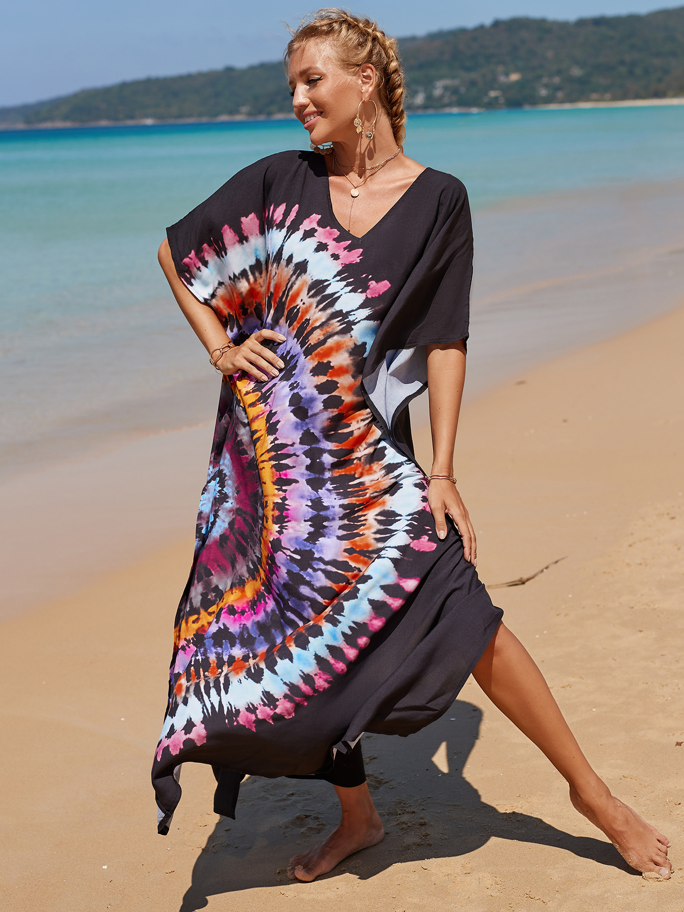 欧美新款人棉印花沙滩裙宽松长袍海边度假比基尼泳衣罩衫防晒衫女 English | 投诉
