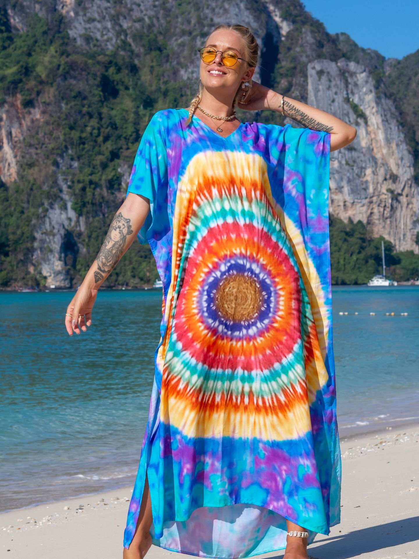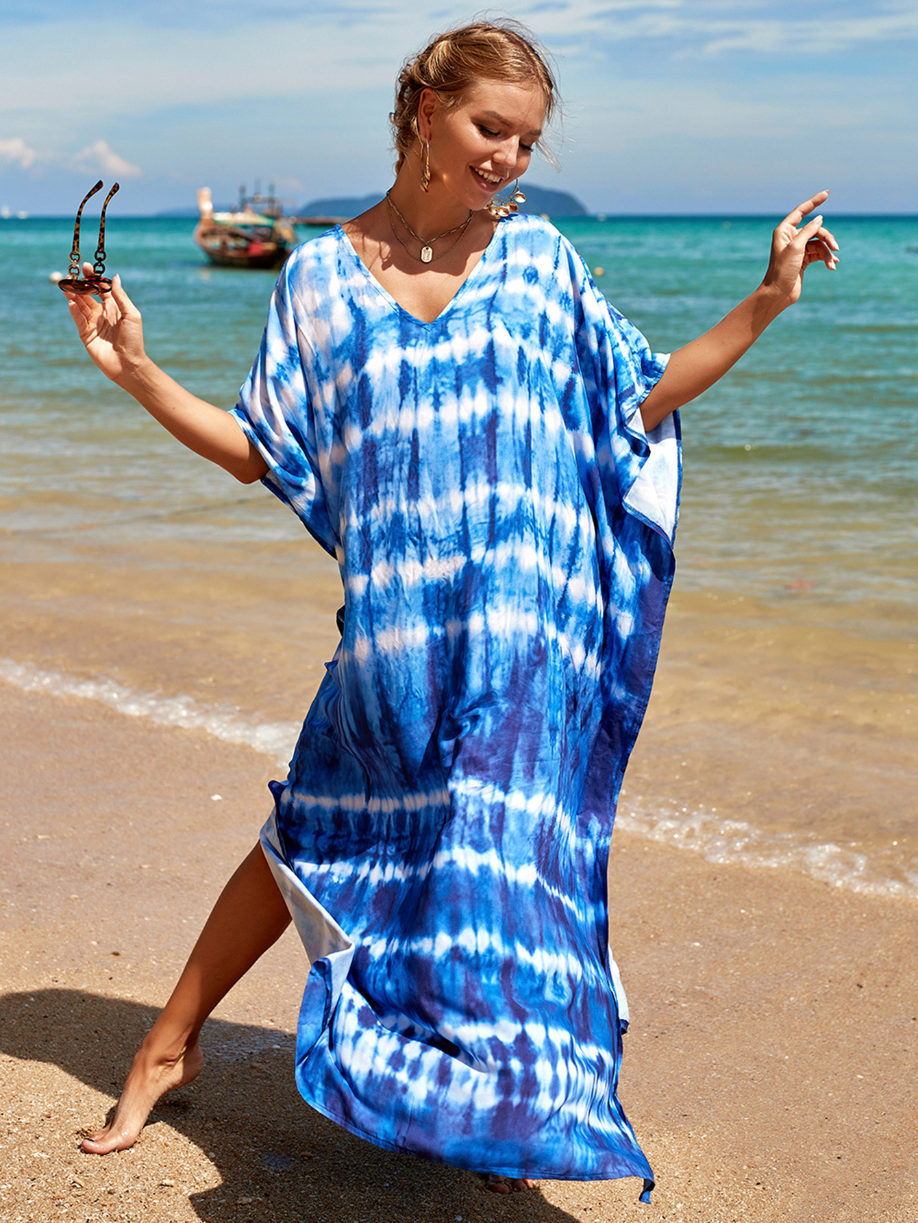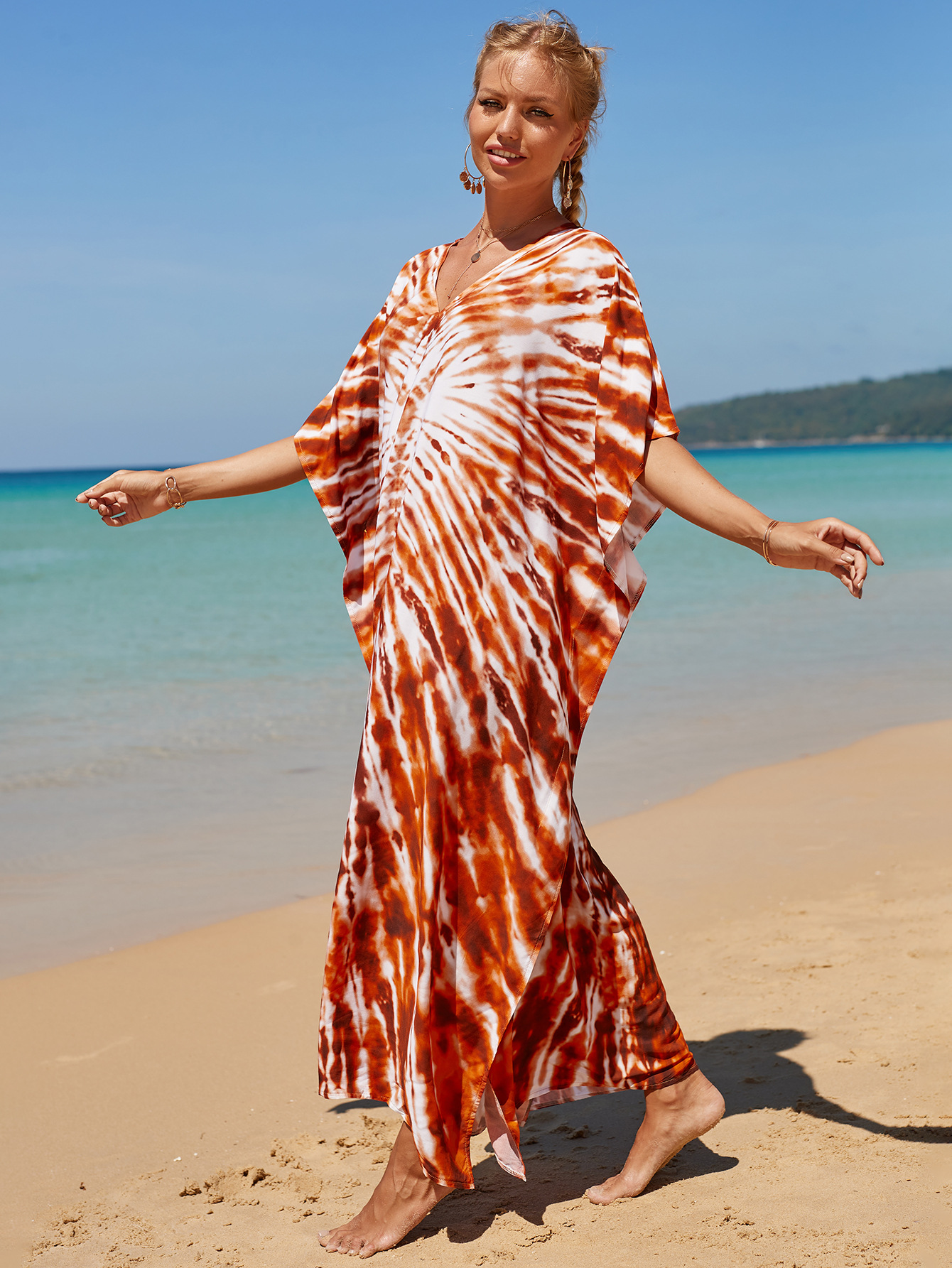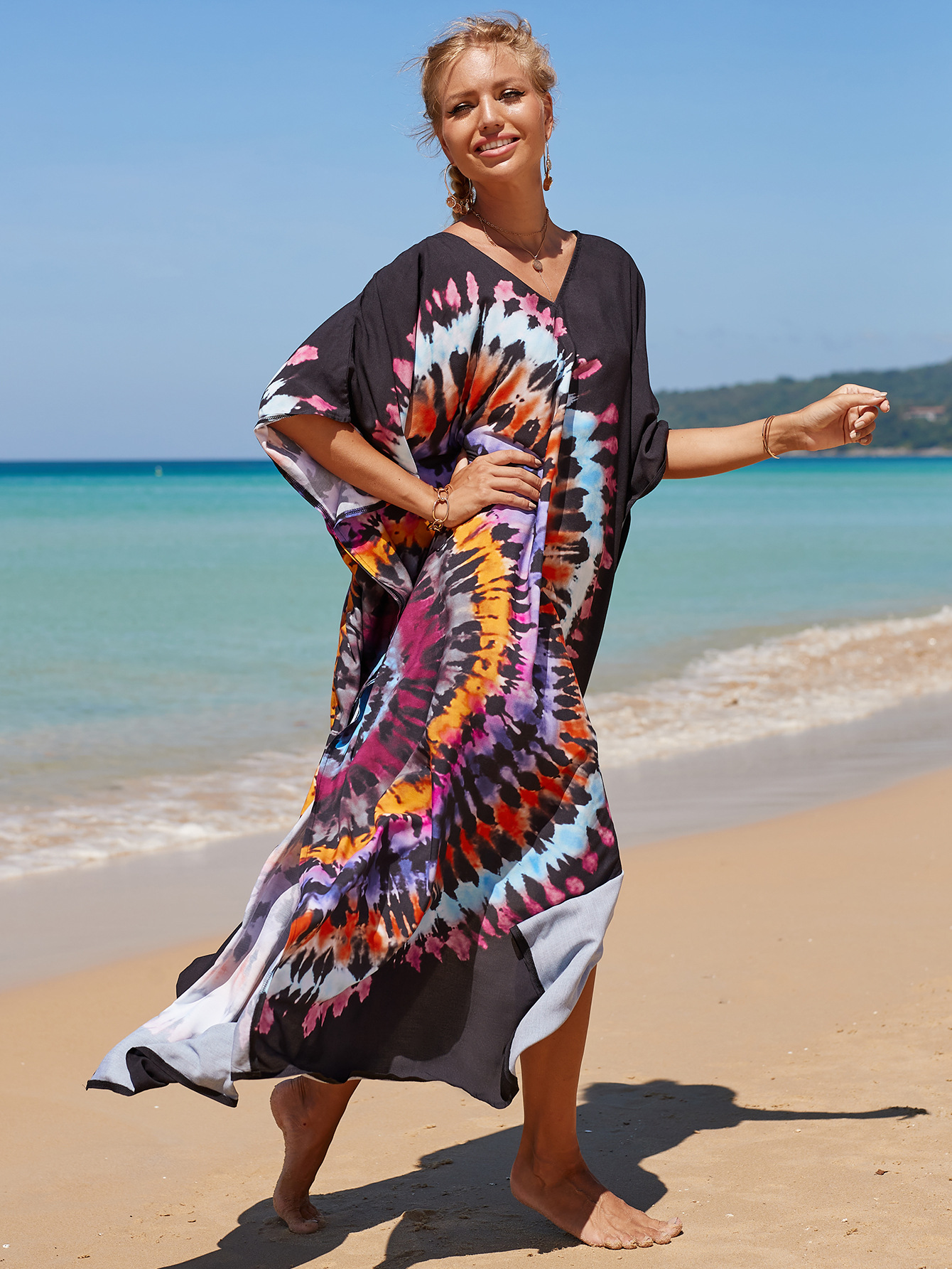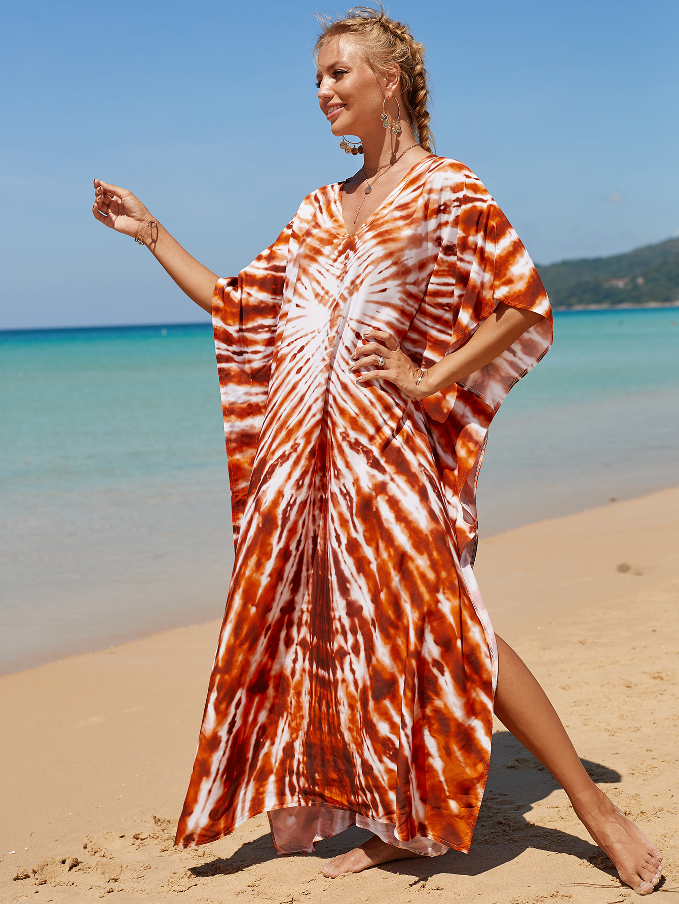 欧美新款人棉印花沙滩裙宽松长袍海边度假比基尼泳衣罩衫防晒衫女 English | 投诉