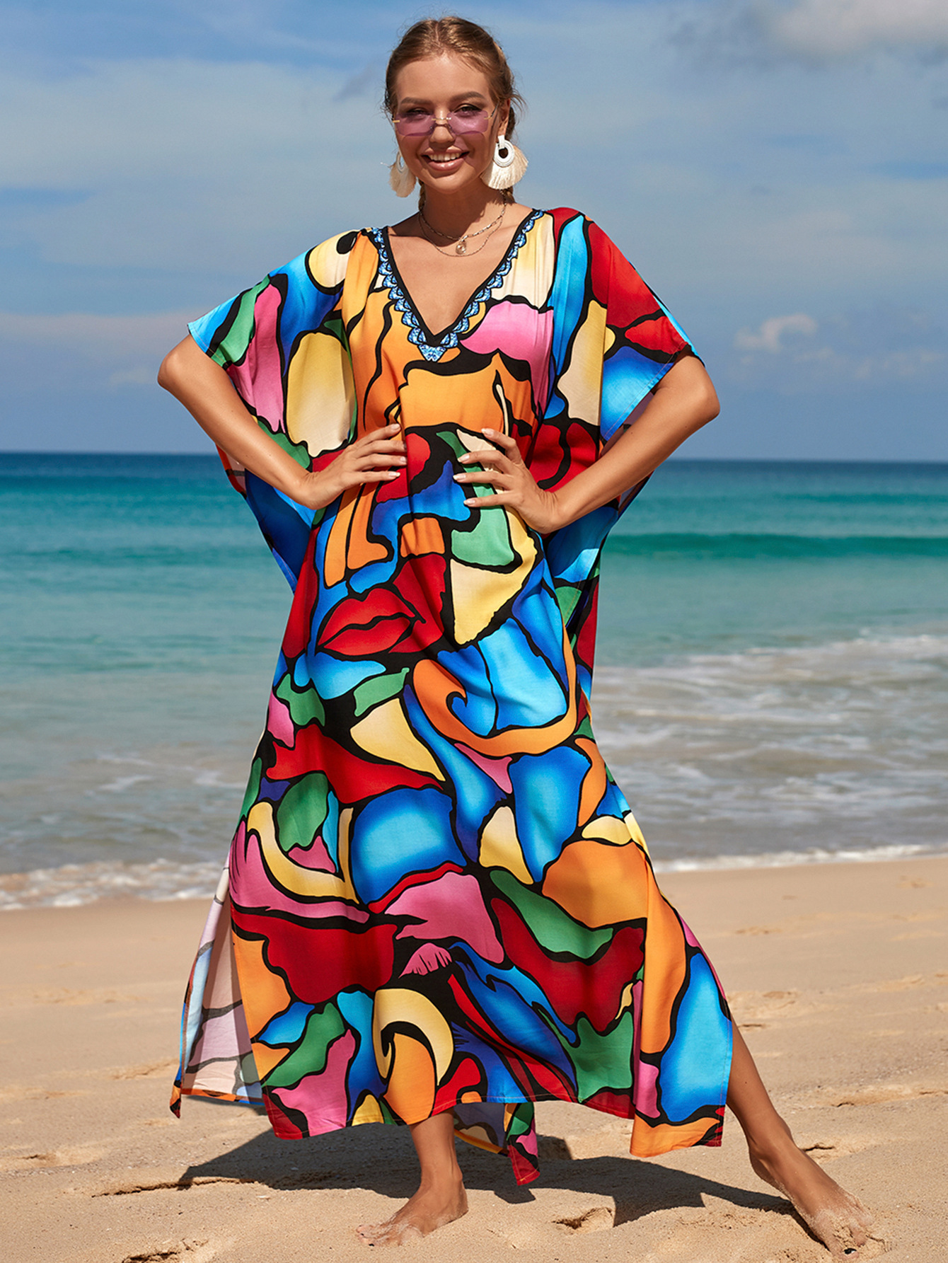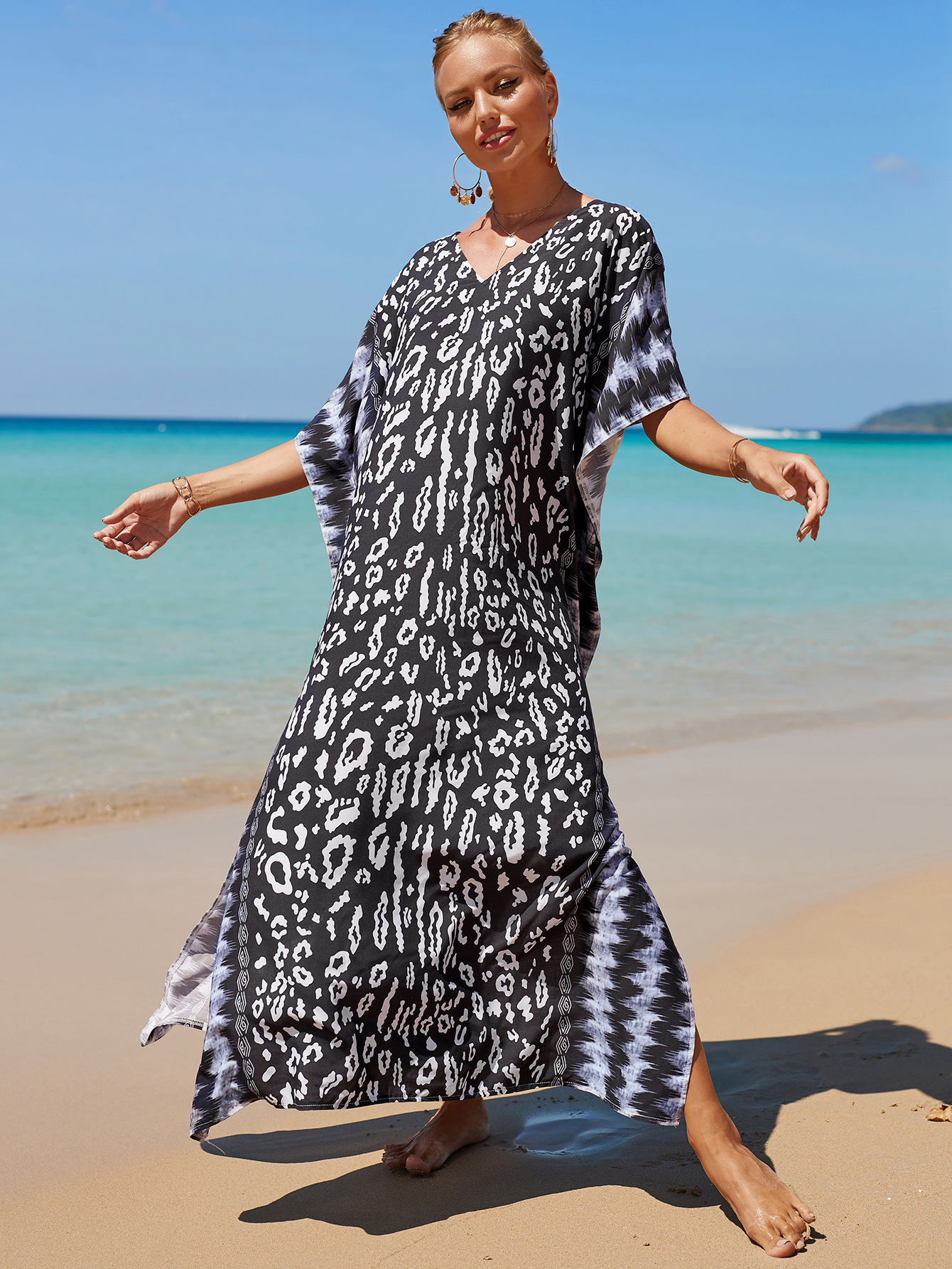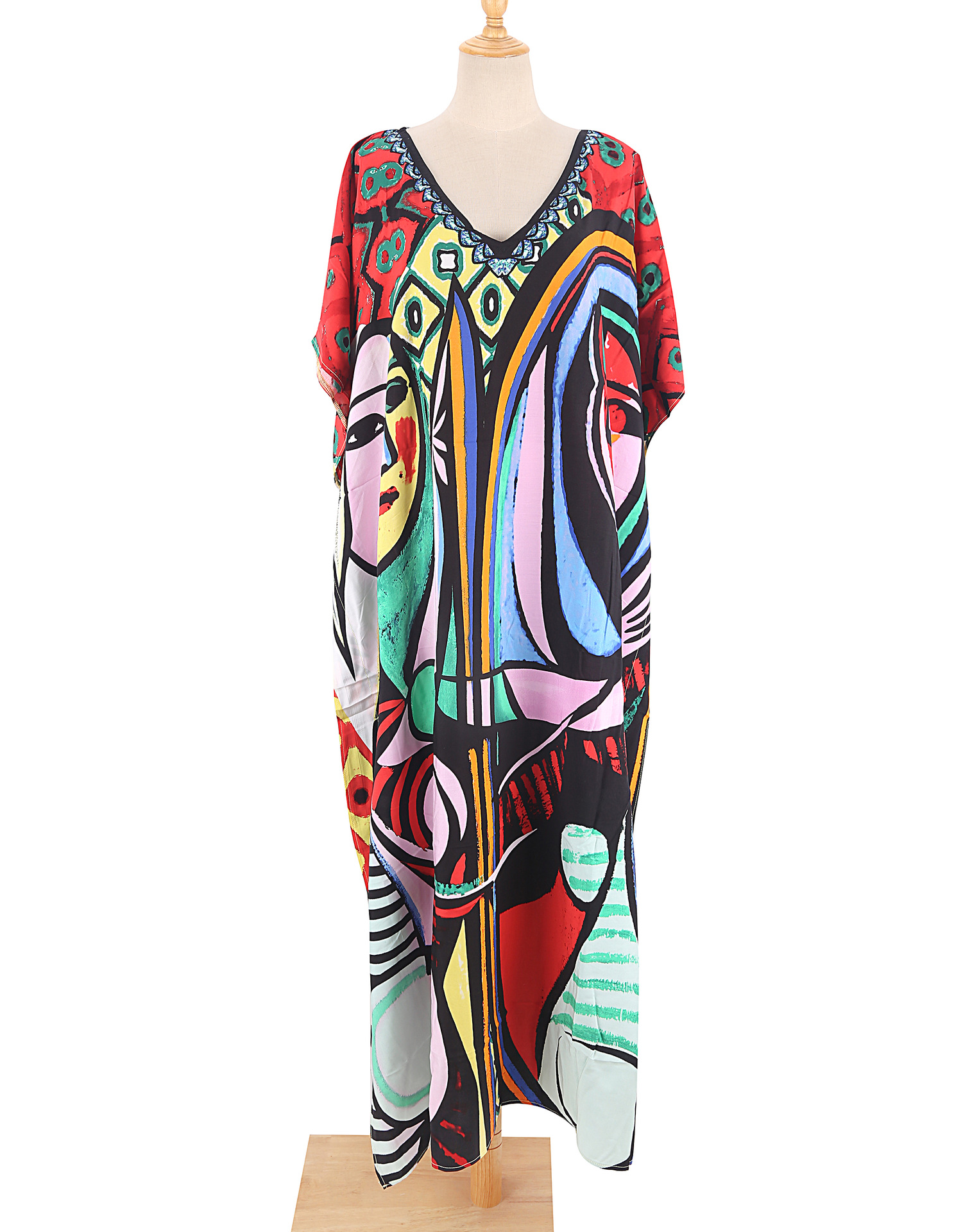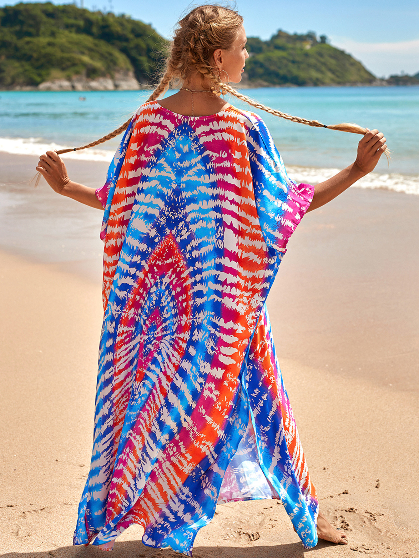 欧美新款人棉印花沙滩裙宽松长袍海边度假比基尼泳衣罩衫防晒衫女