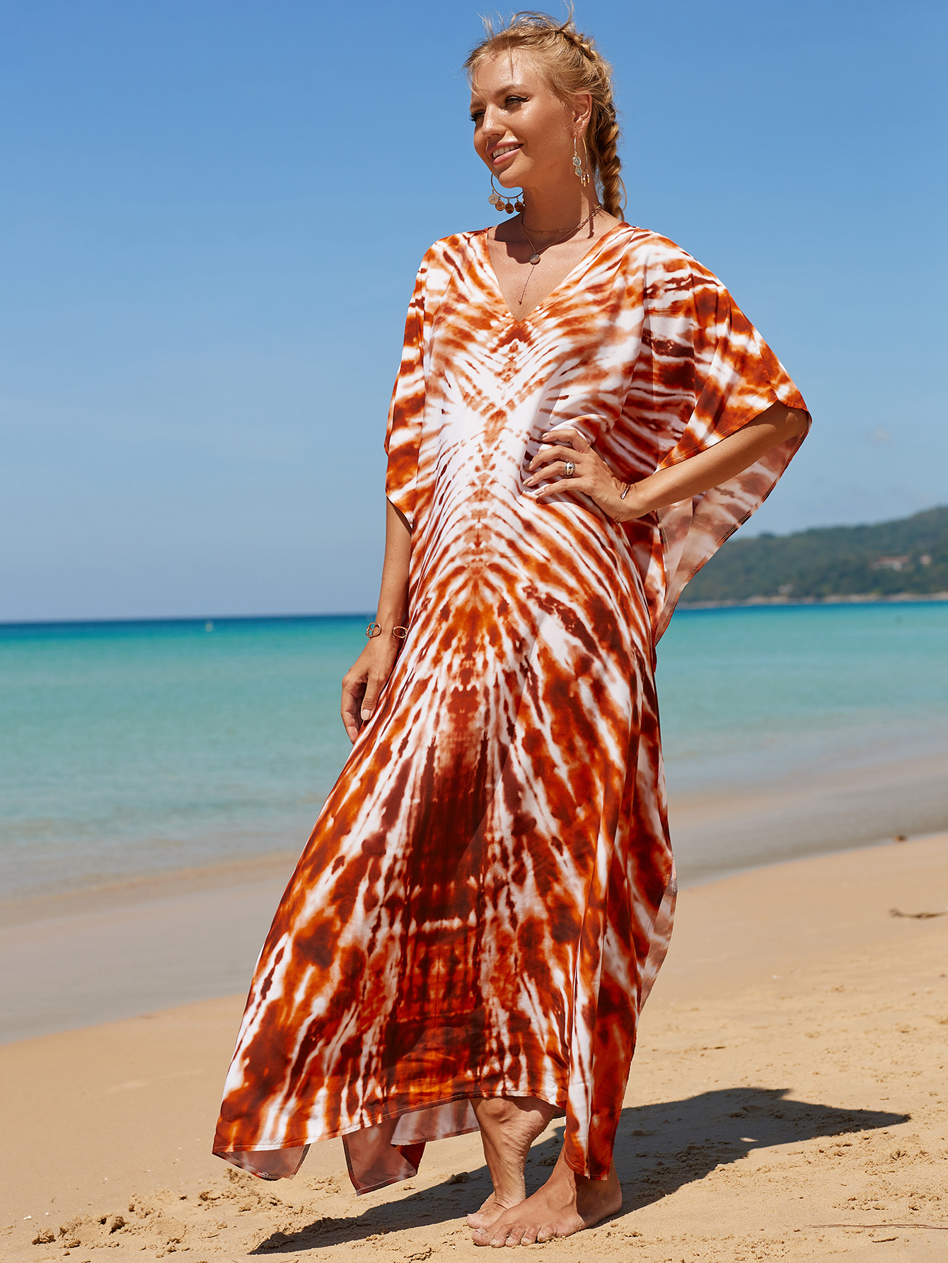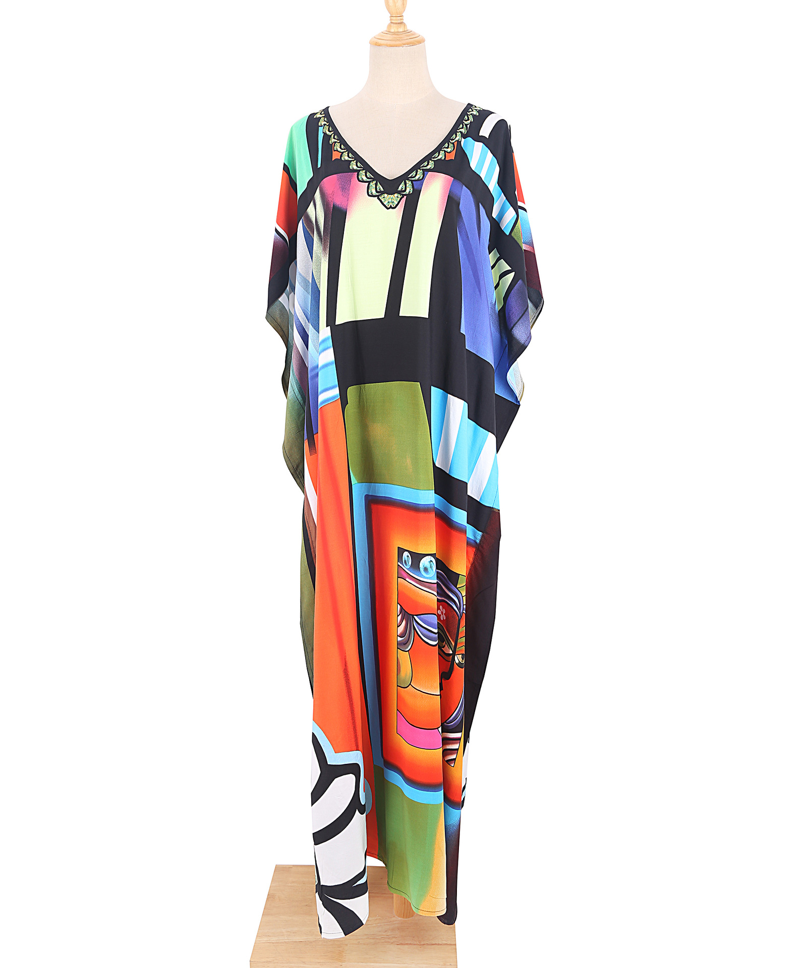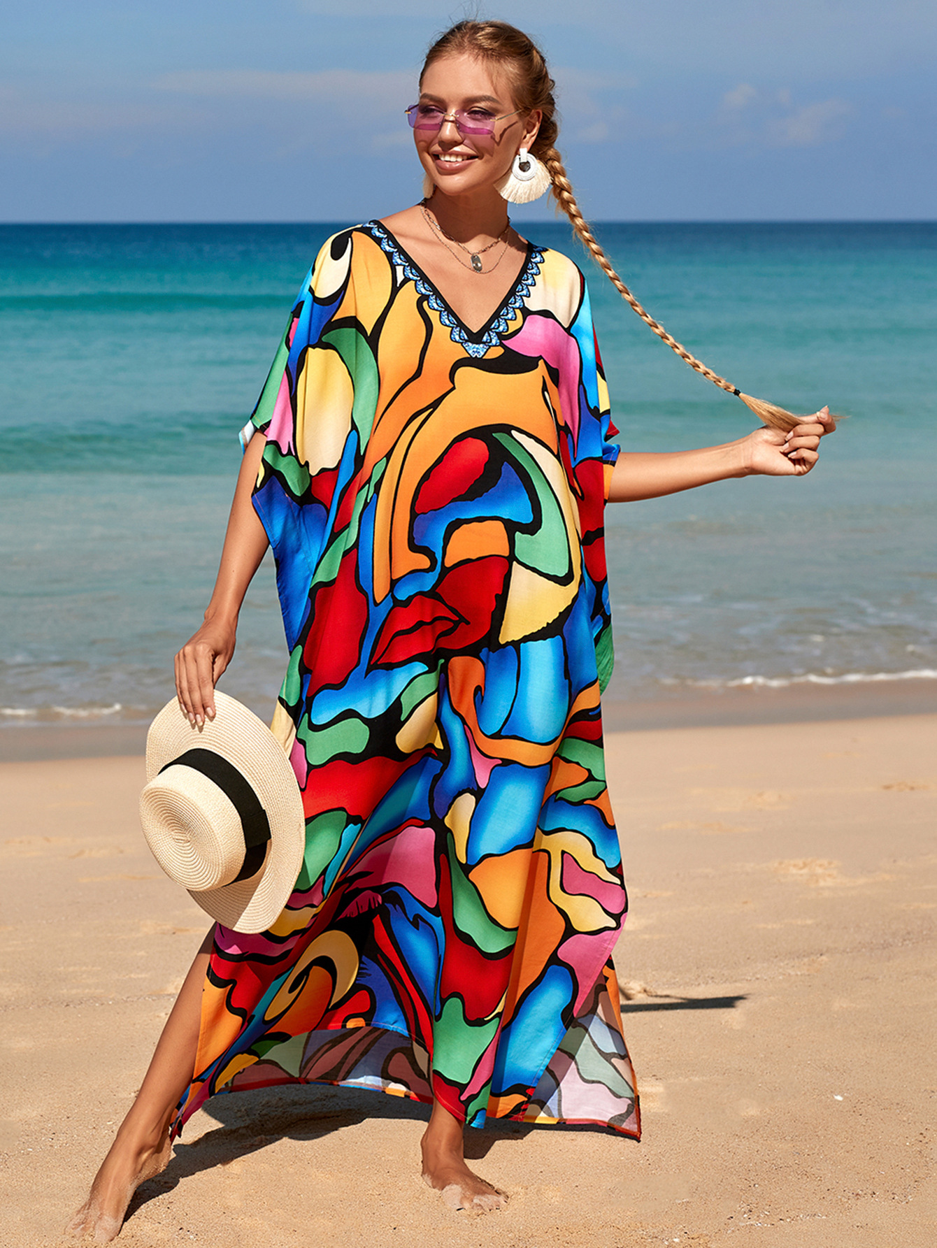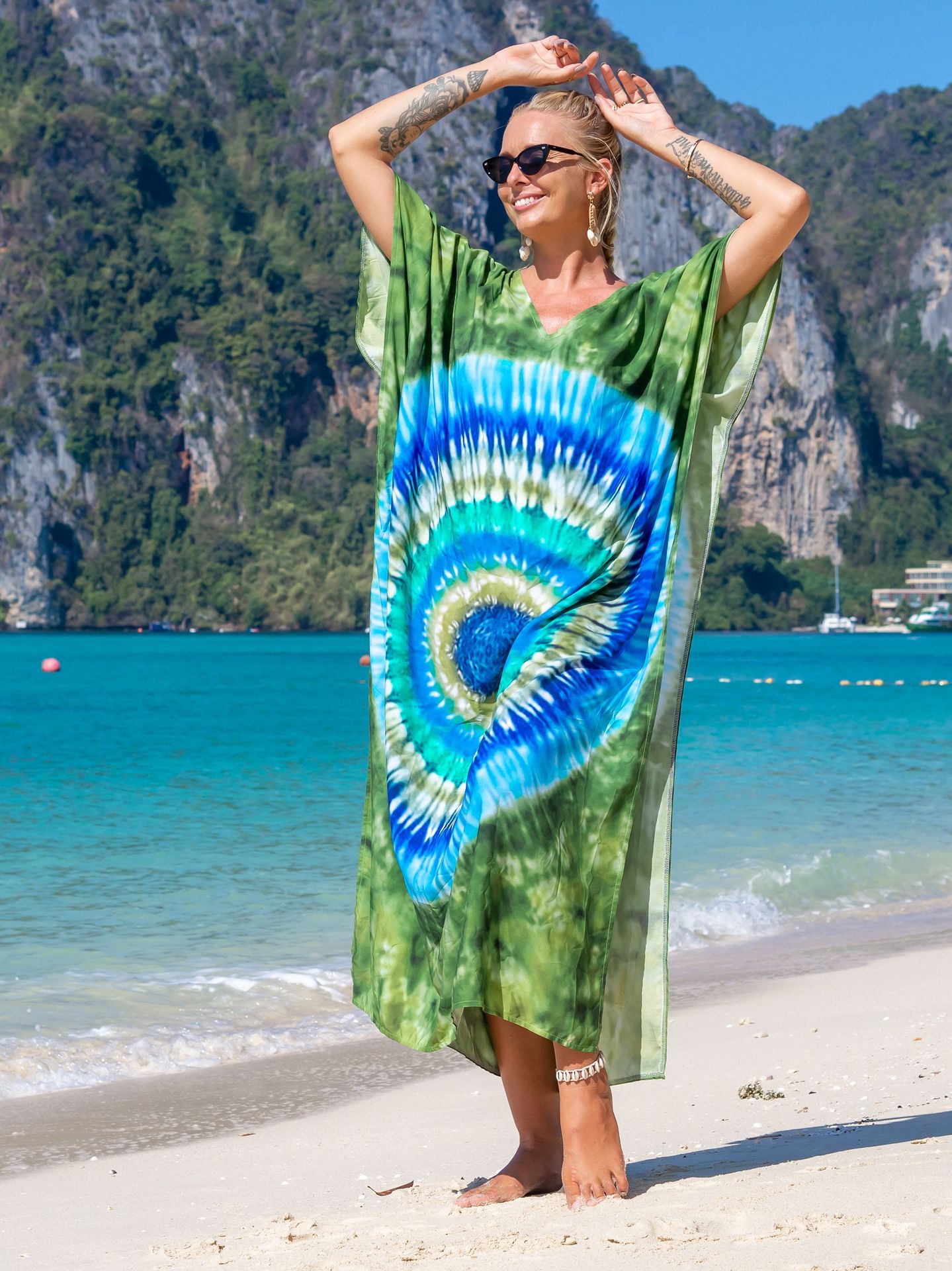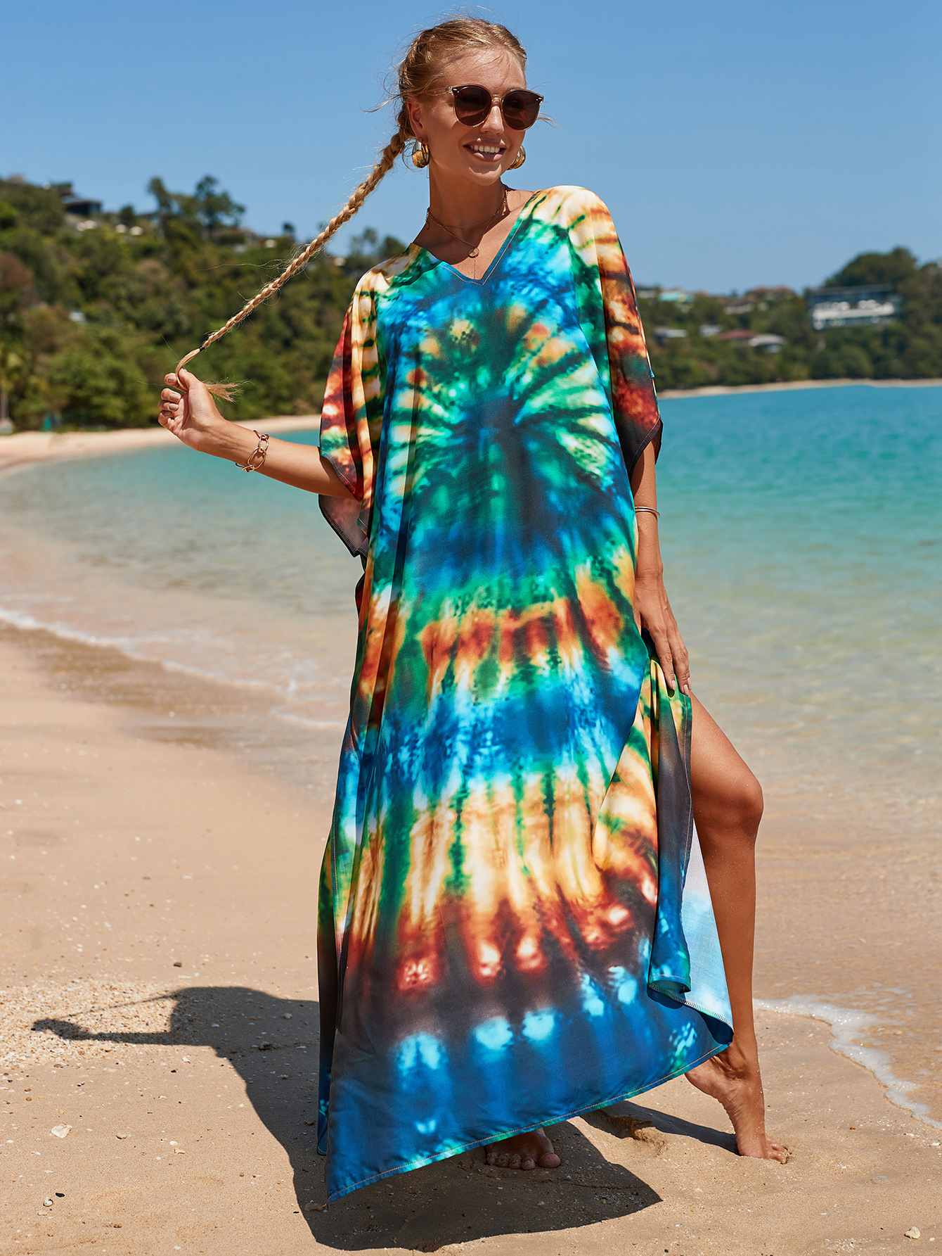 欧美新款人棉印花沙滩裙宽松长袍海边度假比基尼泳衣罩衫防晒衫女