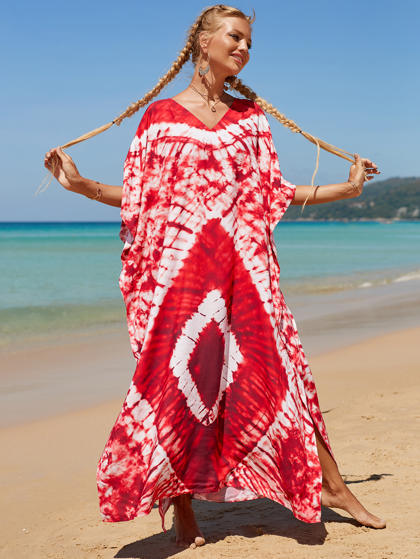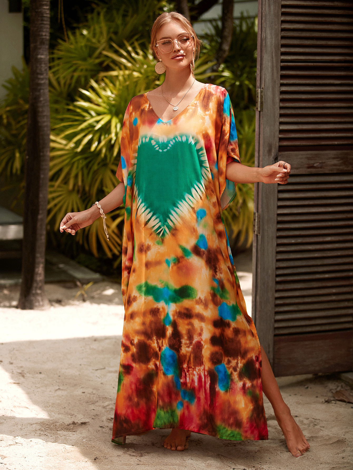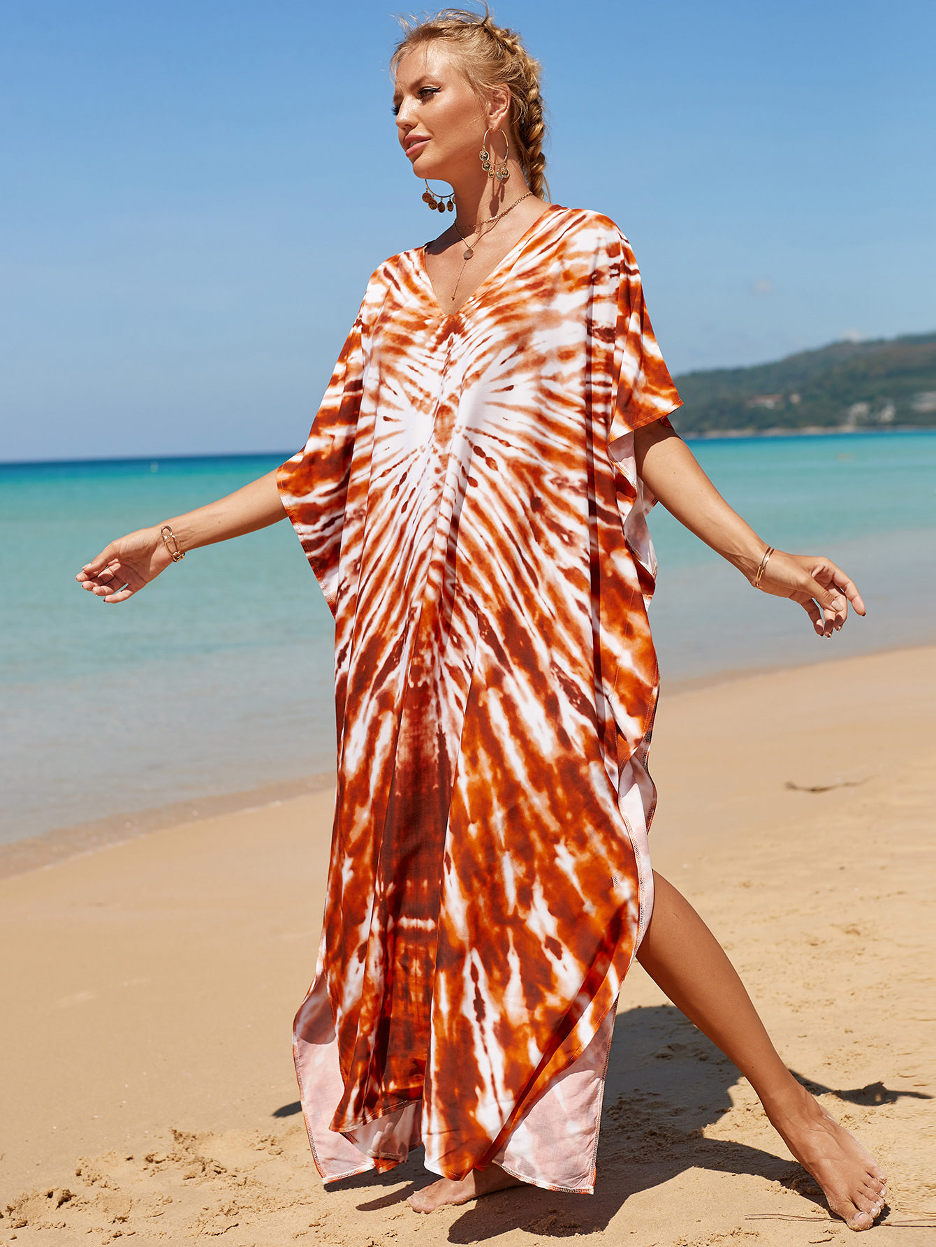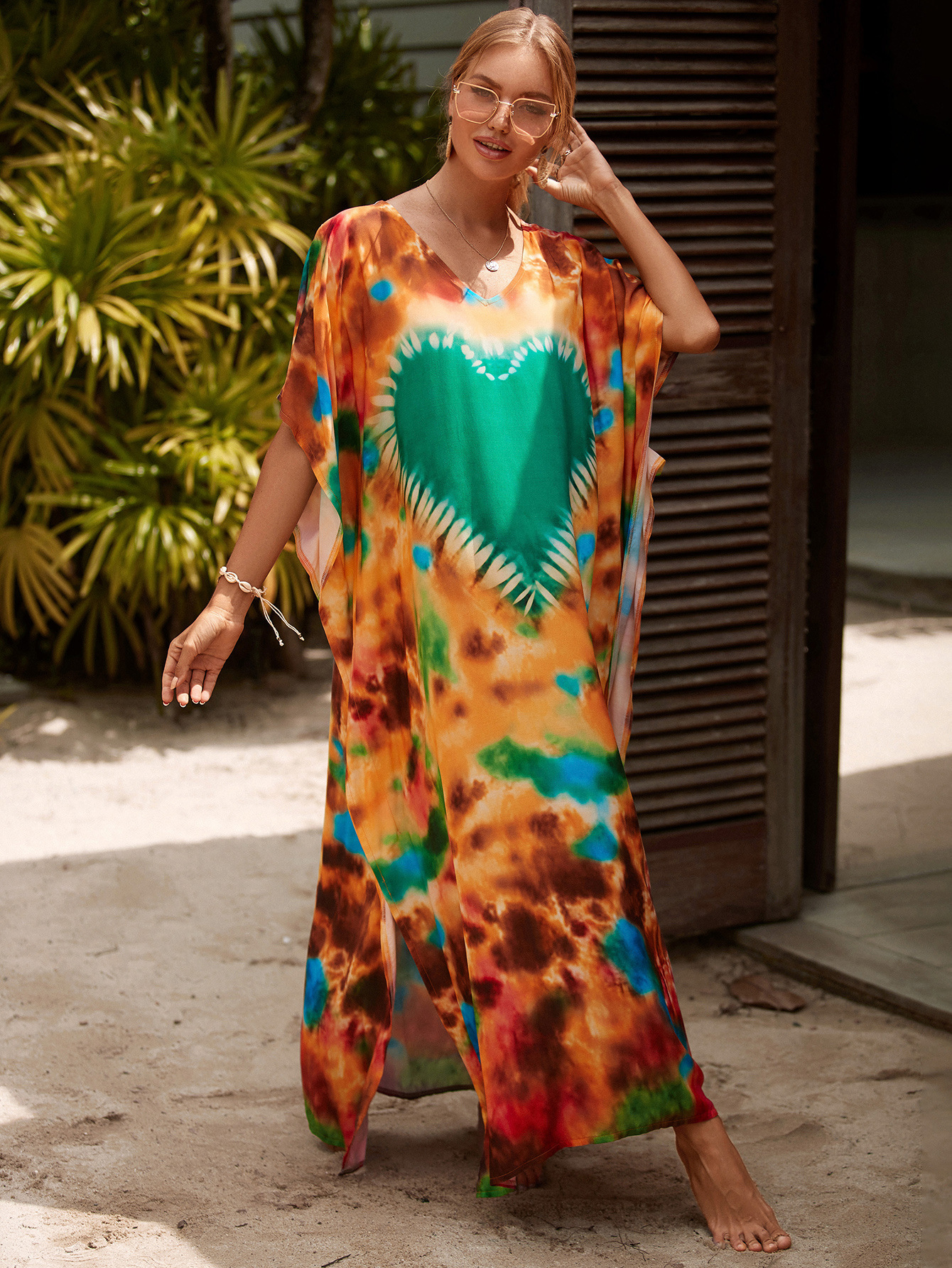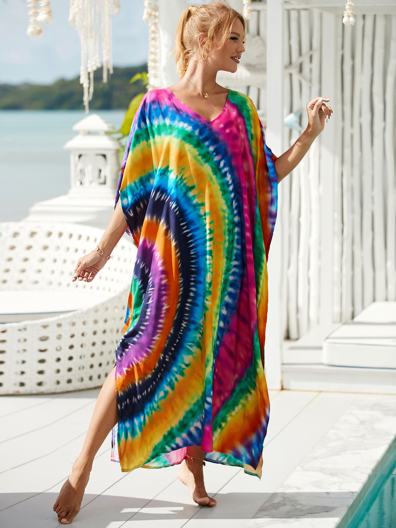 欧美新款人棉印花沙滩裙宽松长袍海边度假比基尼泳衣罩衫防晒衫女