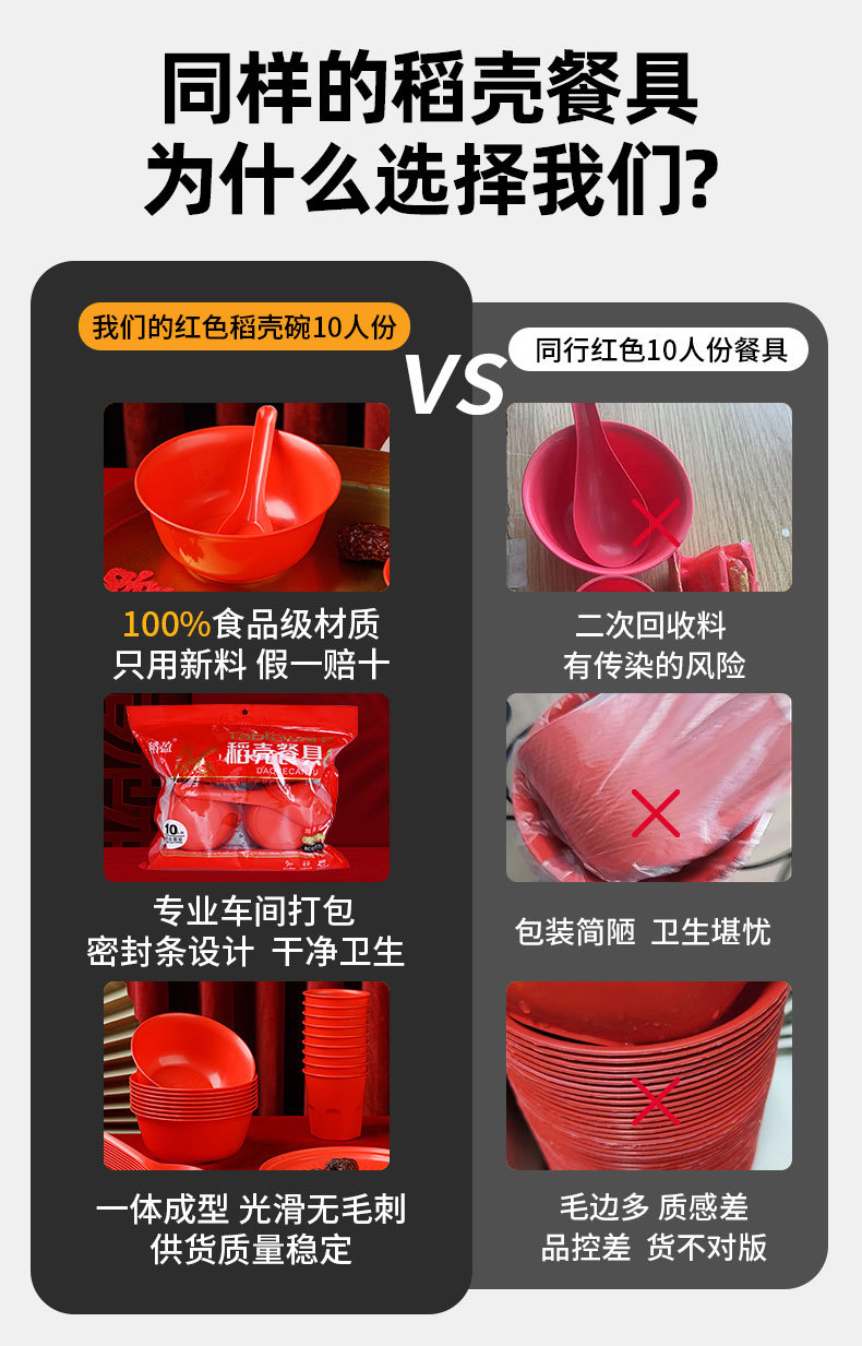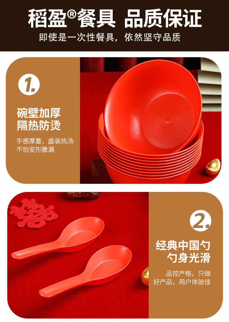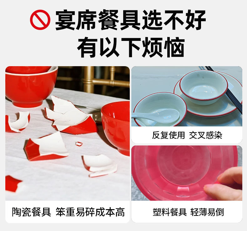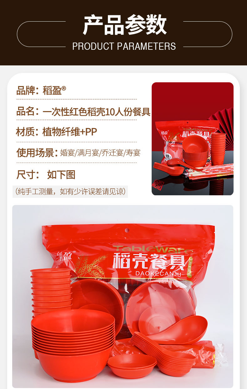 稻壳一次性餐具10人份结婚酒席碗筷套装食品级喜宴碗盘红色饭碗 投诉