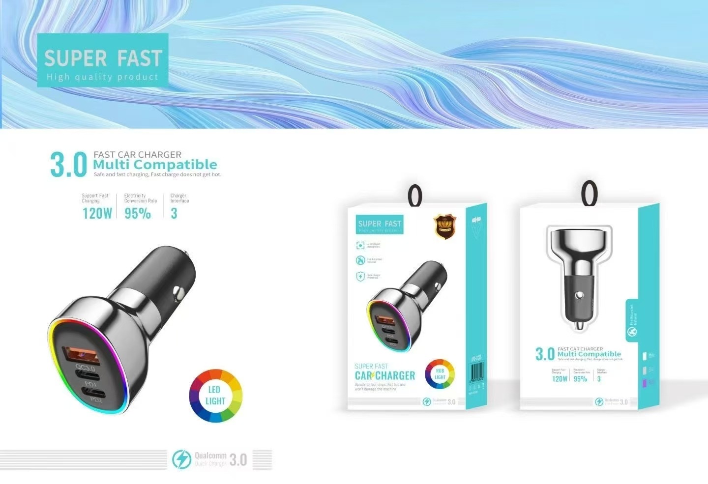 60W快充电镀蓝光车充车载充电器ACC多口汽车充电器点烟器转换插头 English | 投诉