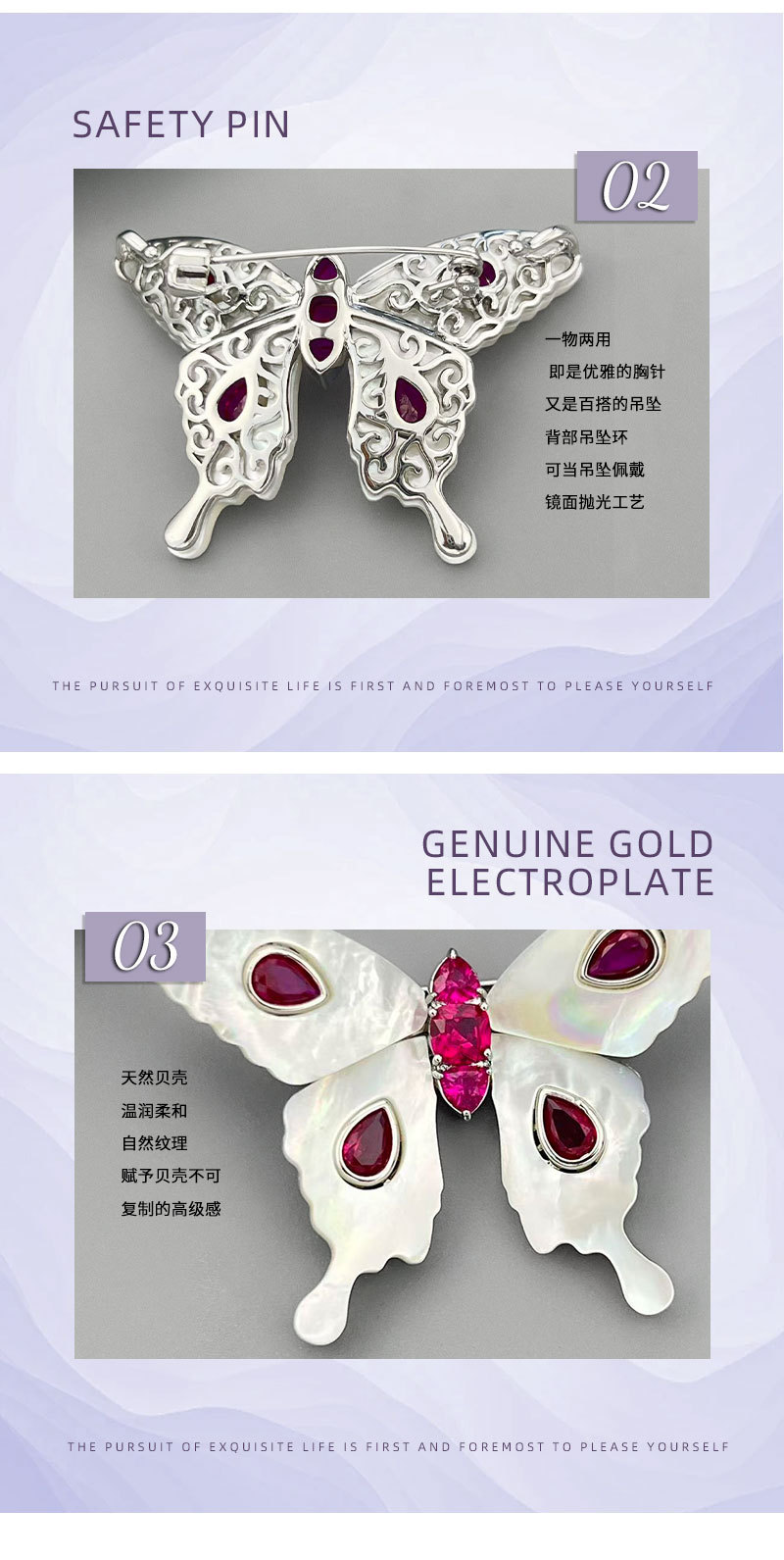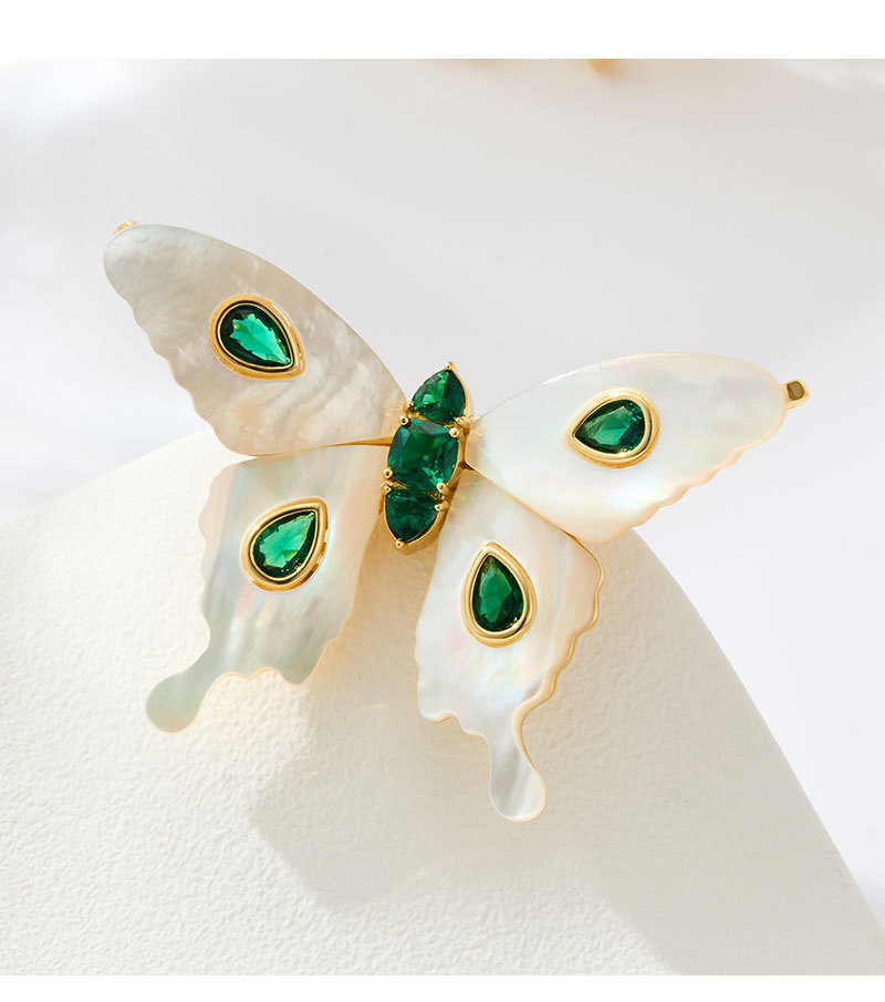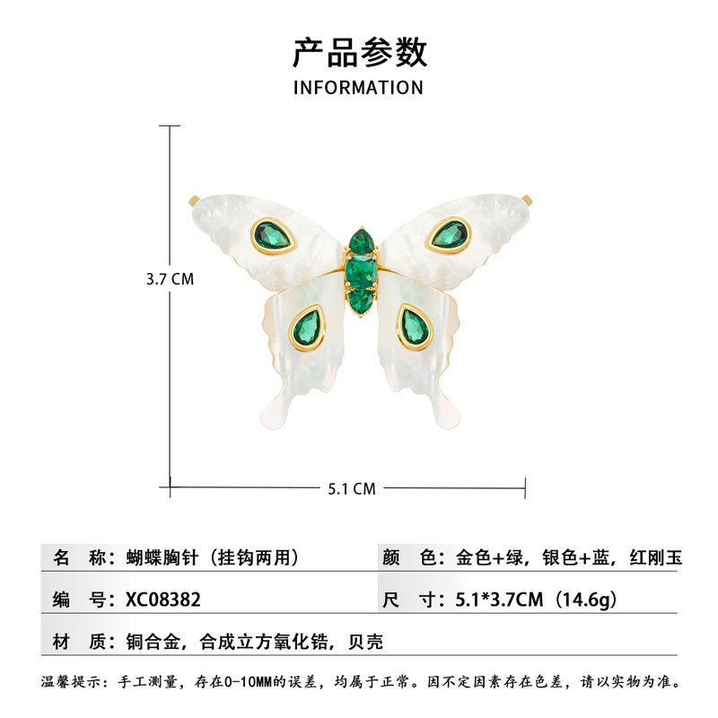 原创设计高级感天然贝母蝴蝶胸针铜合金镶锆红刚玉灵动衣饰女别针 投诉