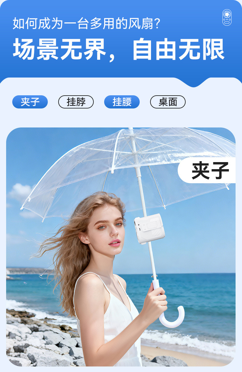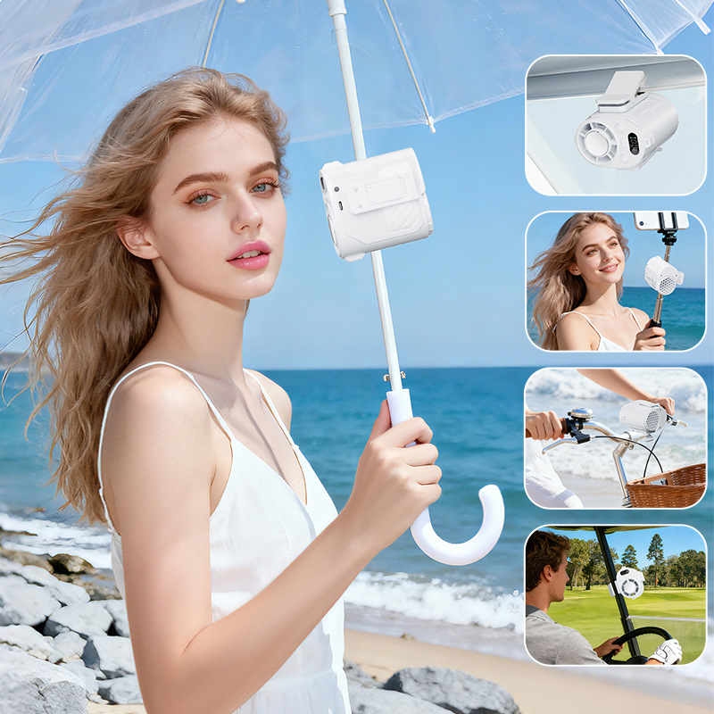 2026跨境夹子万能冰敷风扇usb高速雨伞挂腰挂脖制冷小风扇