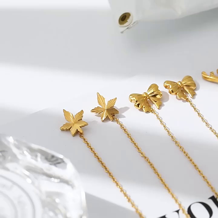 韩式小众设计感蝴蝶结鹿角长款耳线钛钢镀金时尚个性手工批花耳饰 English | 投诉
