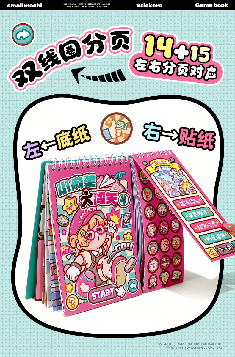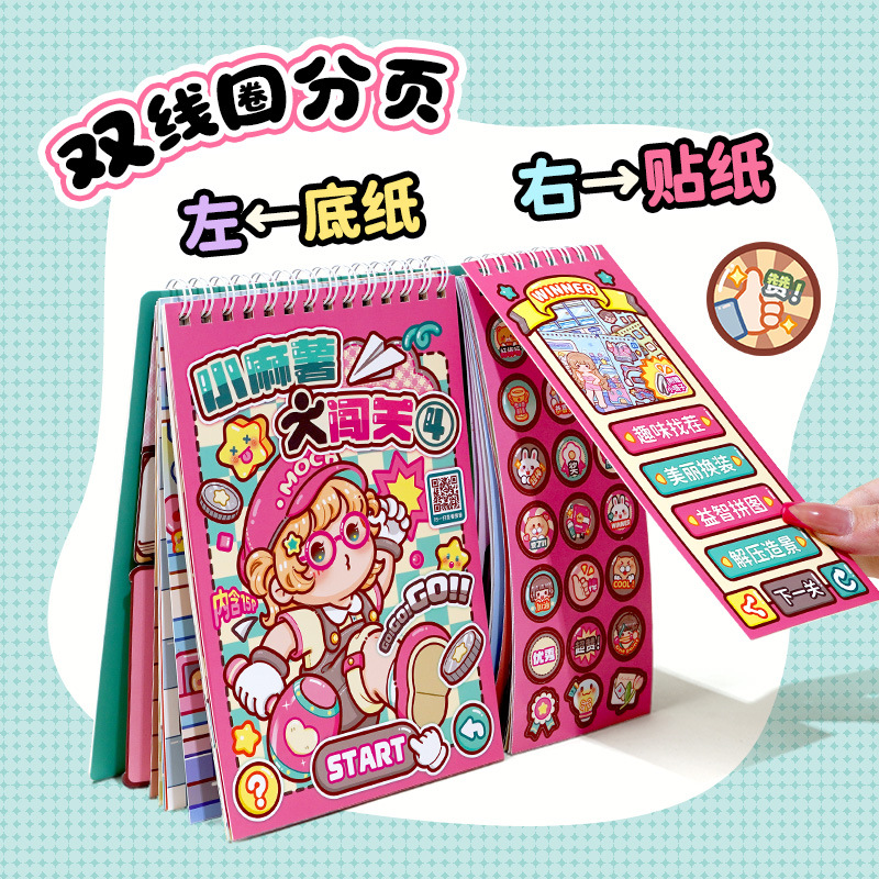 小麻薯闯关游戏贴纸本创意造景贴纸书儿童立体贴画解压手工安静书