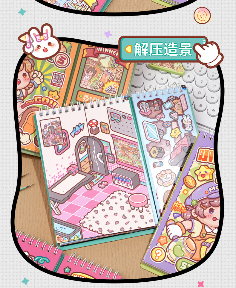 小麻薯闯关游戏贴纸本创意造景贴纸书儿童立体贴画解压手工安静书 投诉