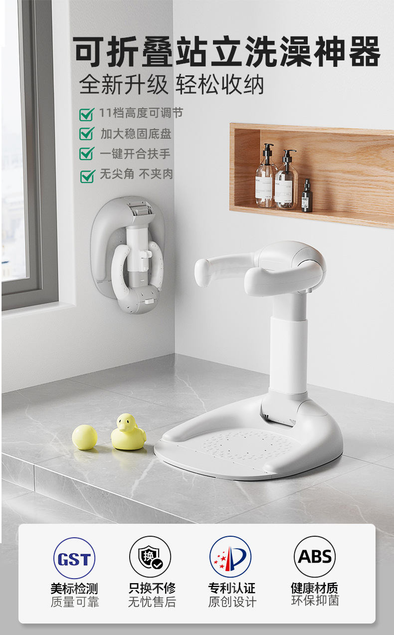婴幼儿童洗澡宝宝站立洗浴神器沐浴澡盆淋浴台可折叠洗头屁屁神器
